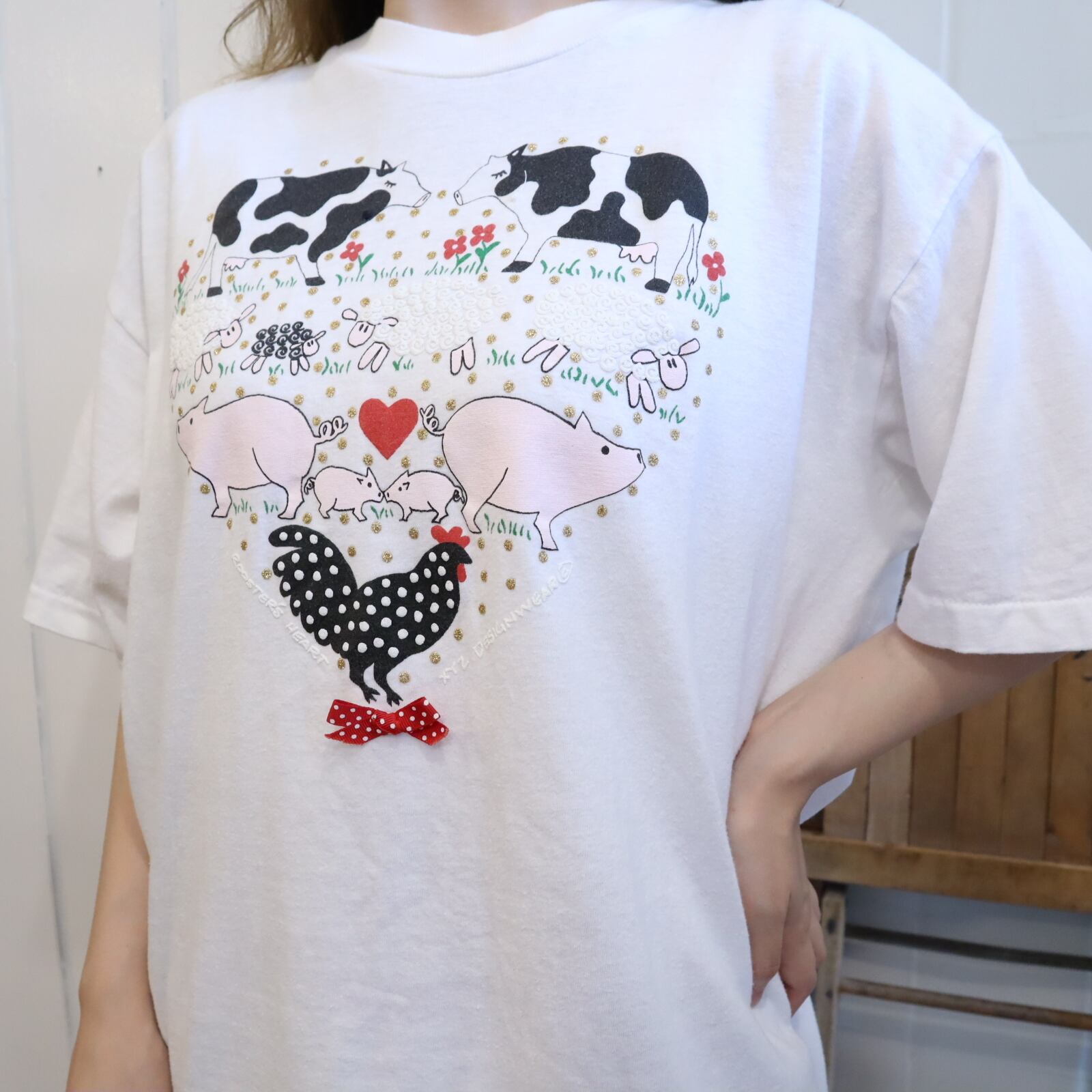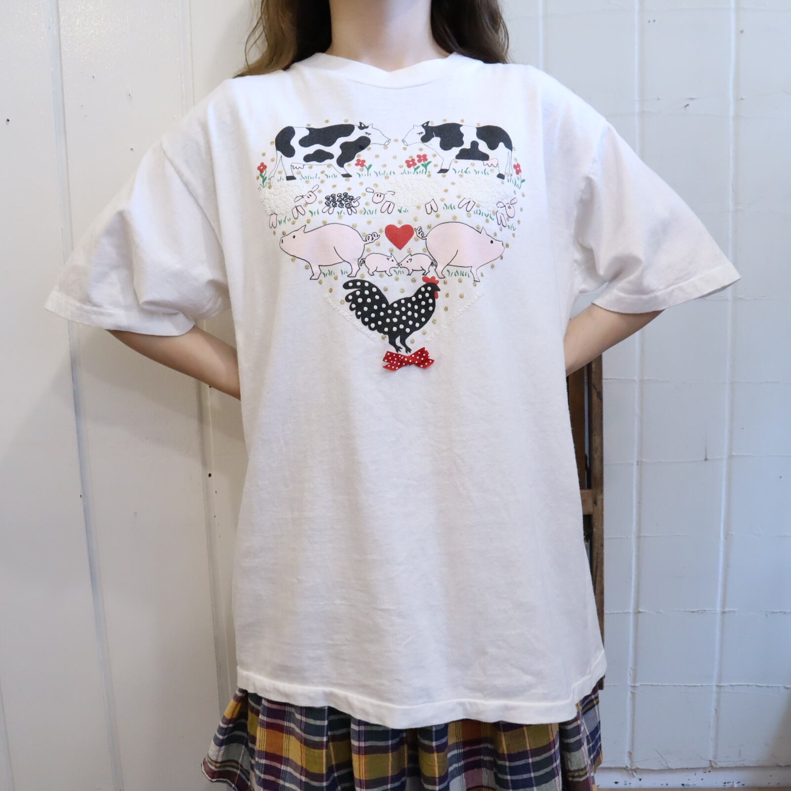 ハート型に並んだ動物たちが可愛い90sTシャツ。