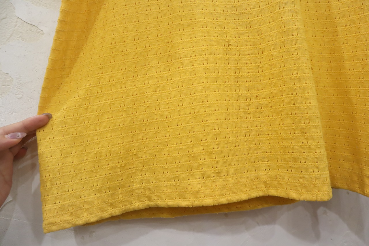 特殊なメッシュの生地感やイエローカラーが可愛いメッシュトップス。
