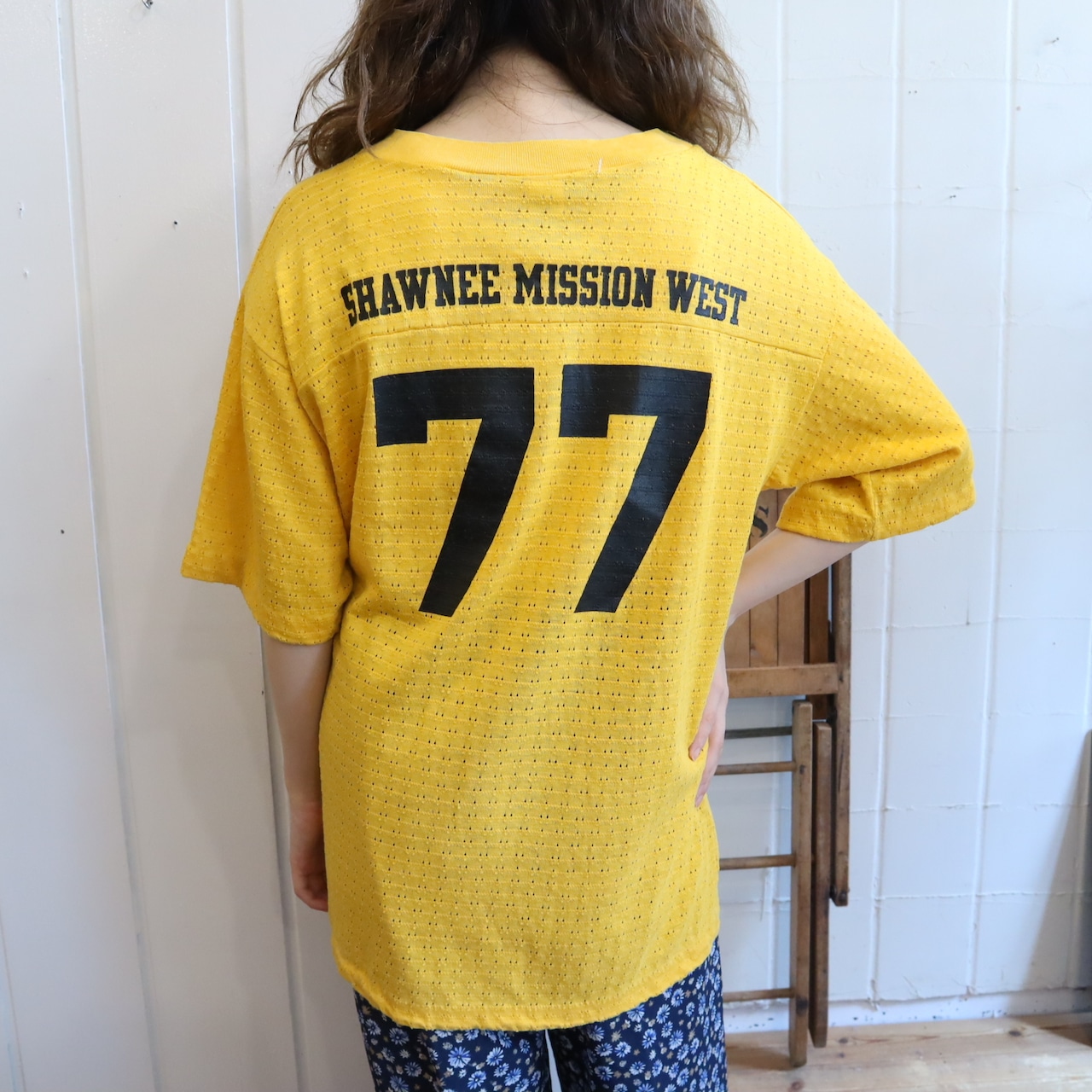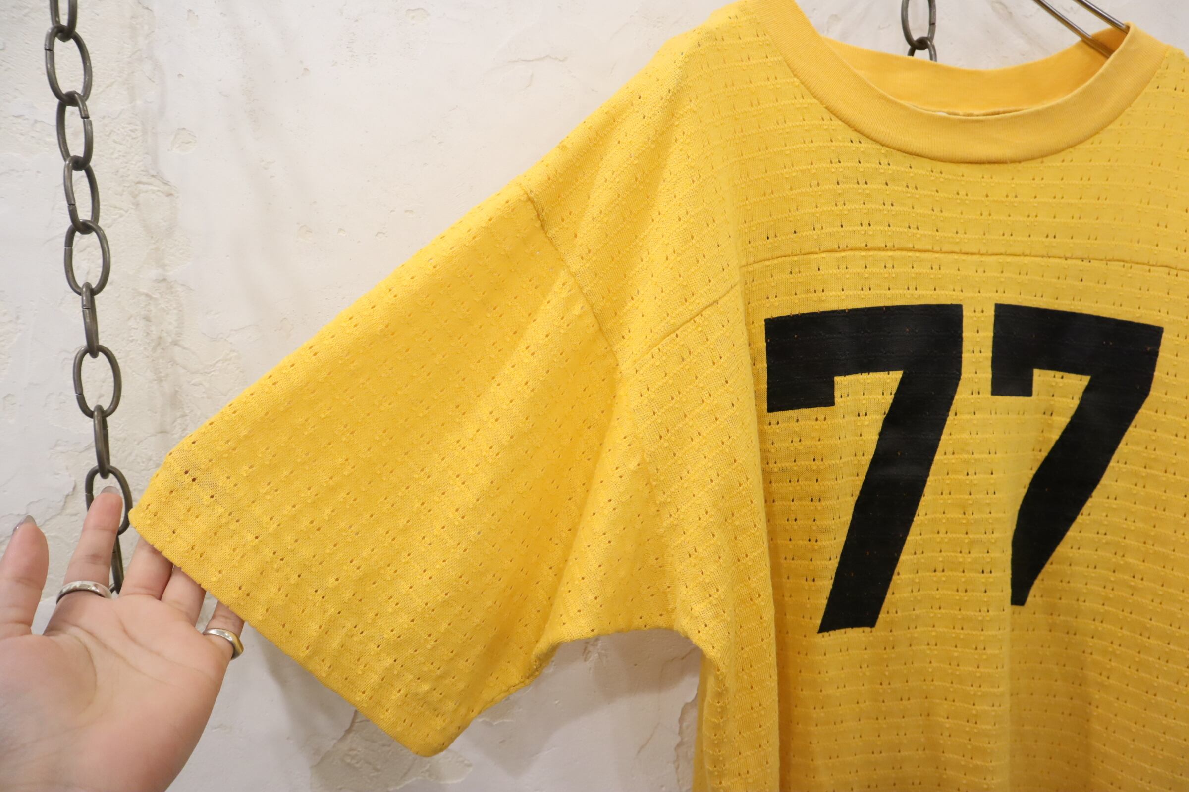 70s ARTEX yellow×black numbering mesh tops [l-3755]