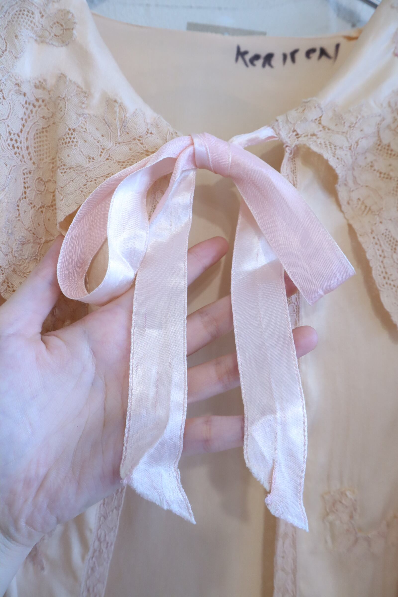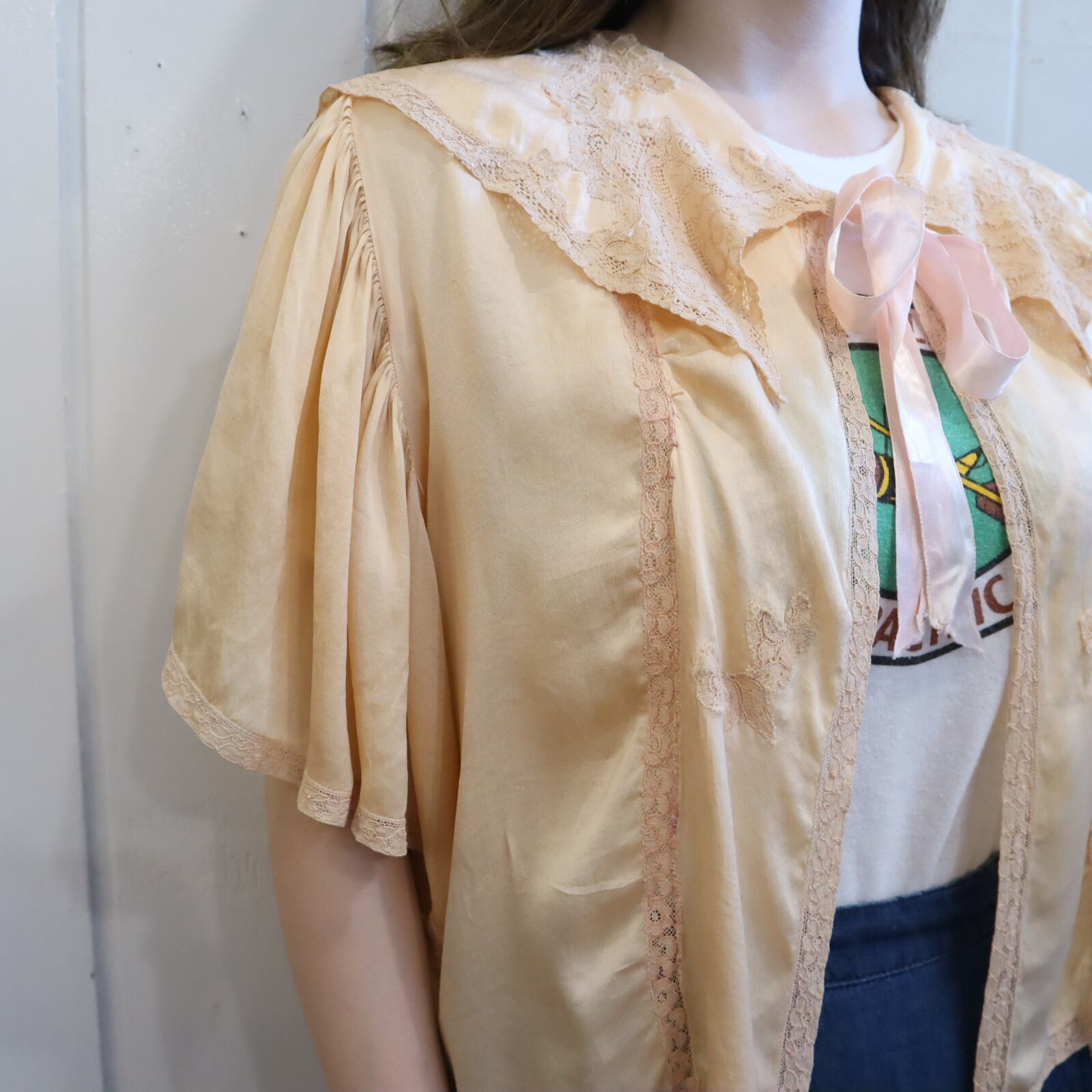 ふわっと広がるお袖やレースの装飾が可愛いですし、大きめな襟が珍しい一枚かと思います♡