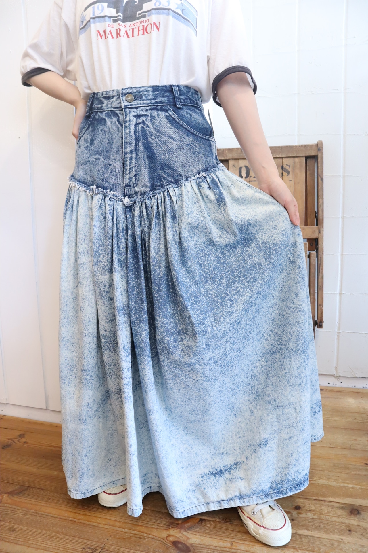 人気のケミカルウォッシュスカートです。