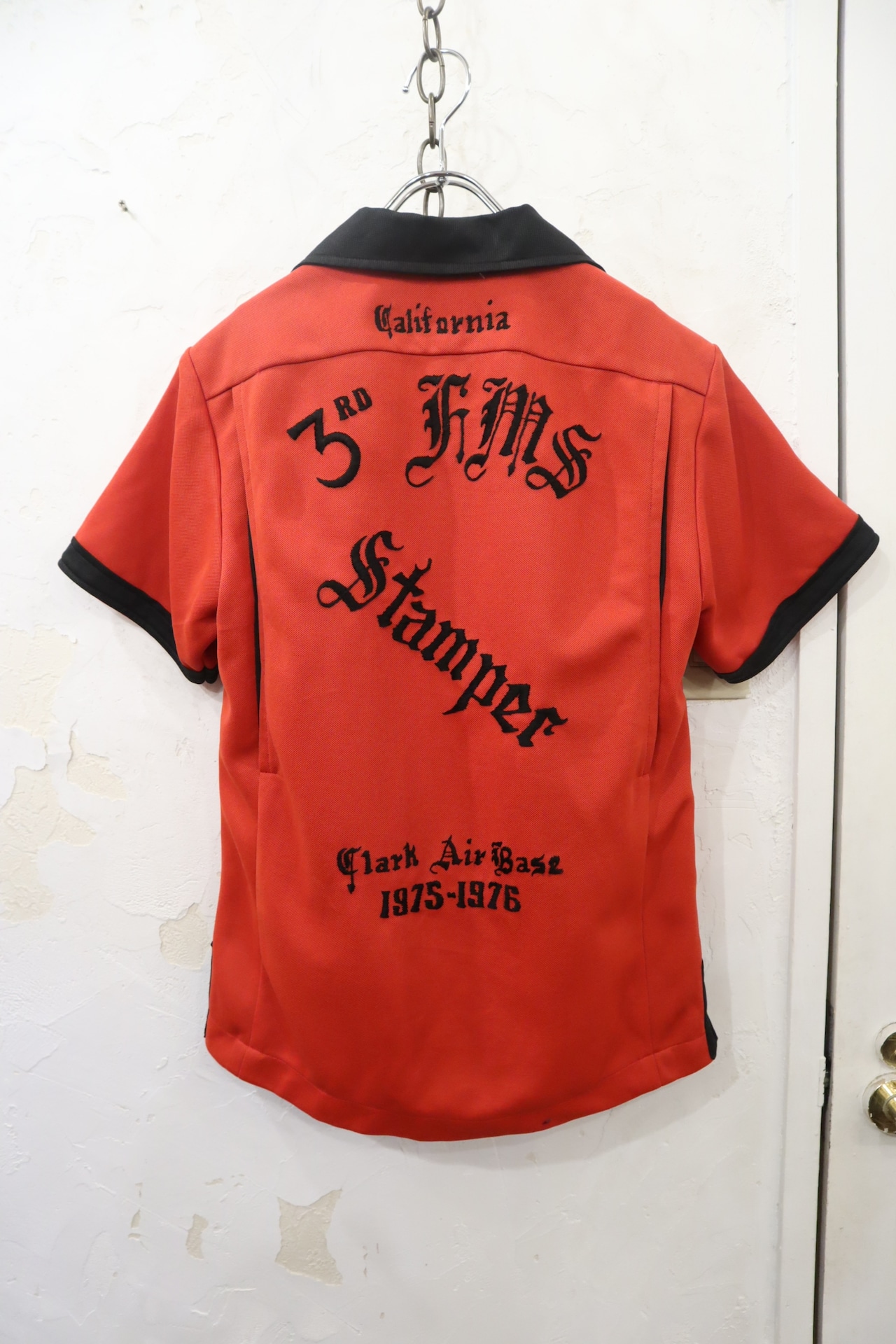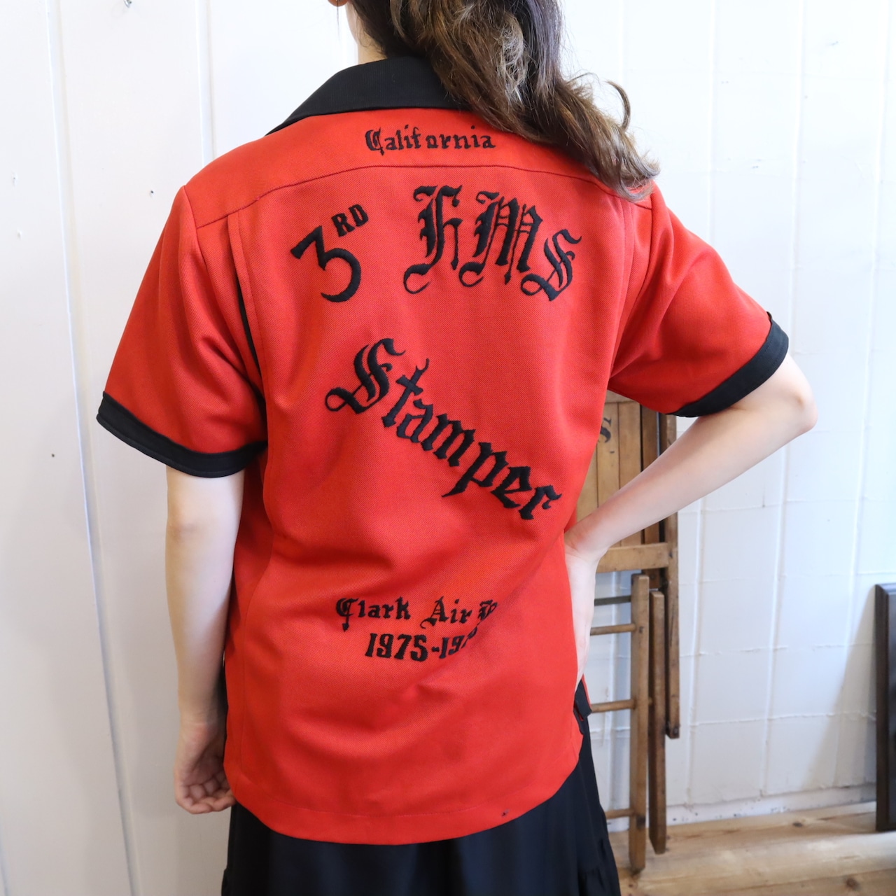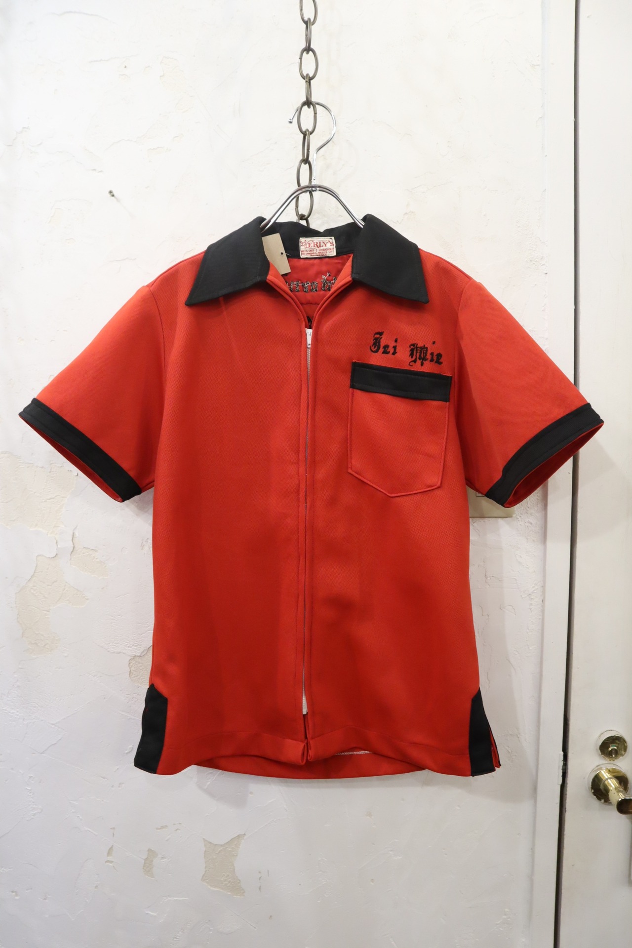 70s red×black embroidery fullzip bowling shirt [l-3773]