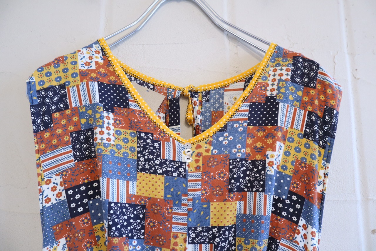 細かいパッチワーク柄がとっても可愛い70sドレス。