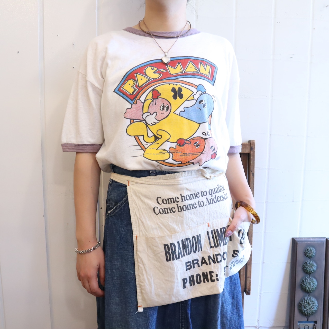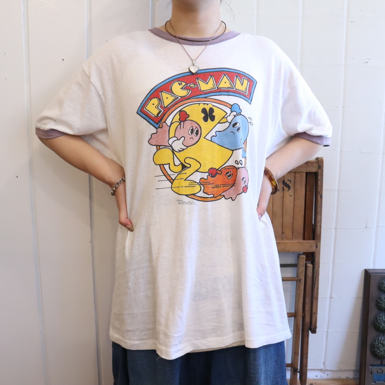 70s-80s Hanes white×colorful PAC-MAN print ringer T-shirt [k-3790]