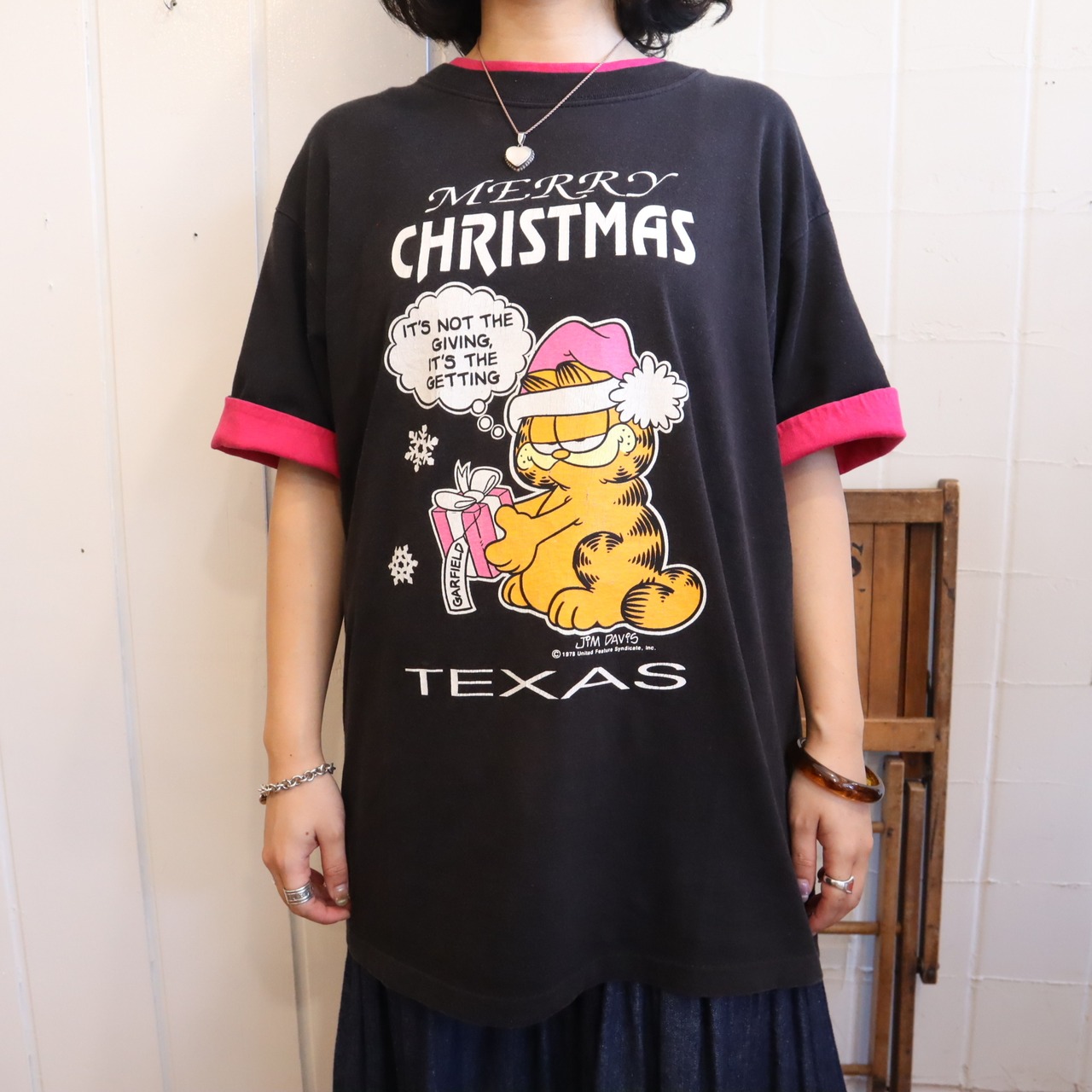 クリスマスガーフィールドのプリントが可愛いTシャツです。