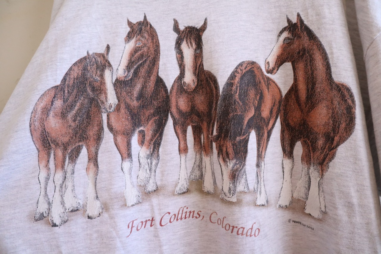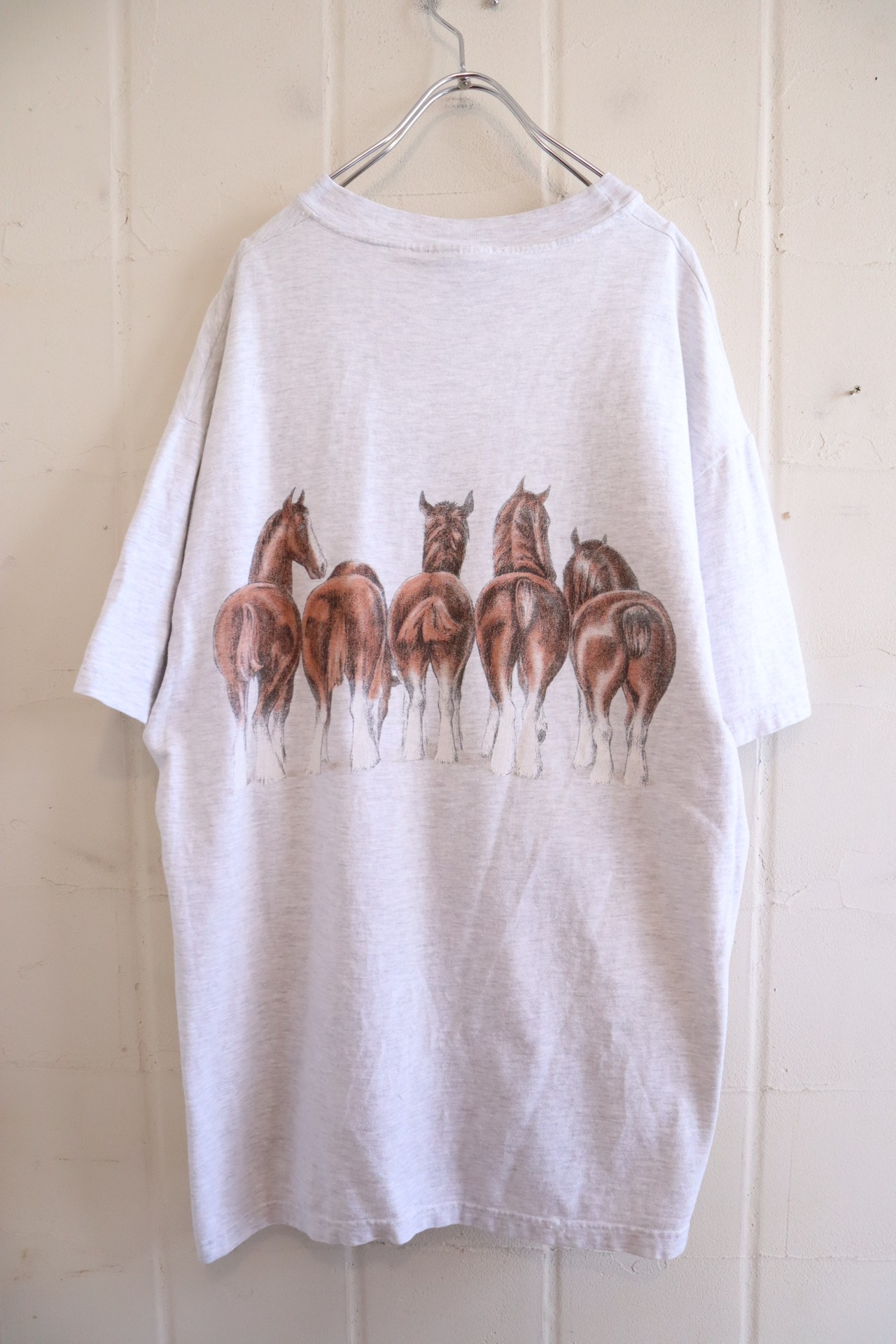 90s- gray×brown horse double sided print T-shirt [l-3793]