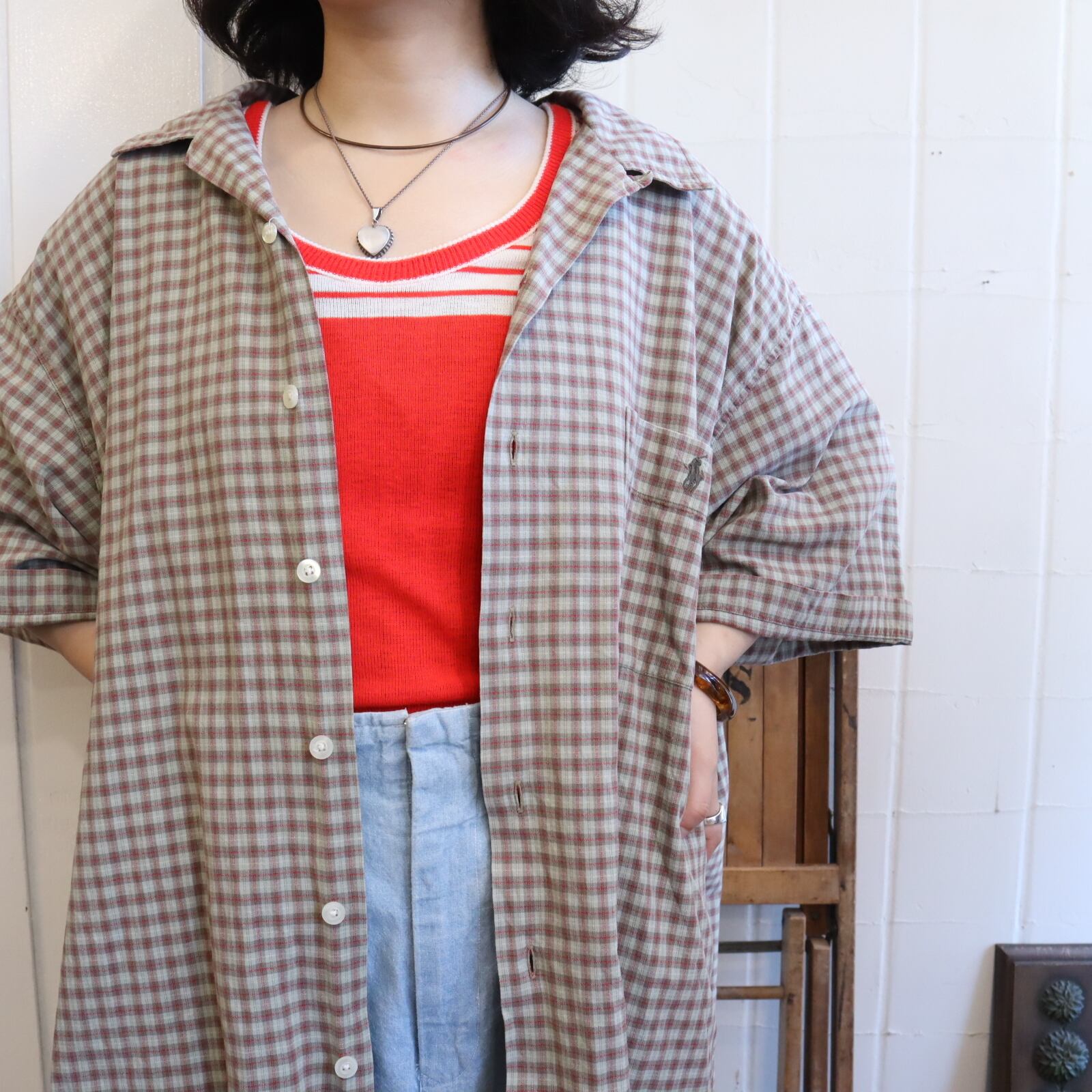 開襟デザインが珍しいラルフローレンのチェックシャツです*