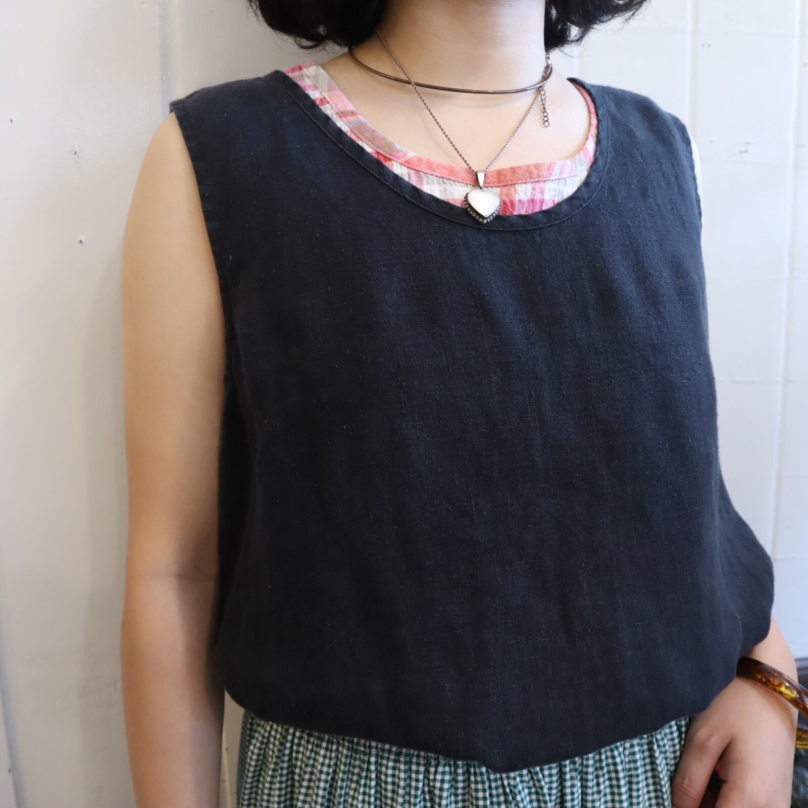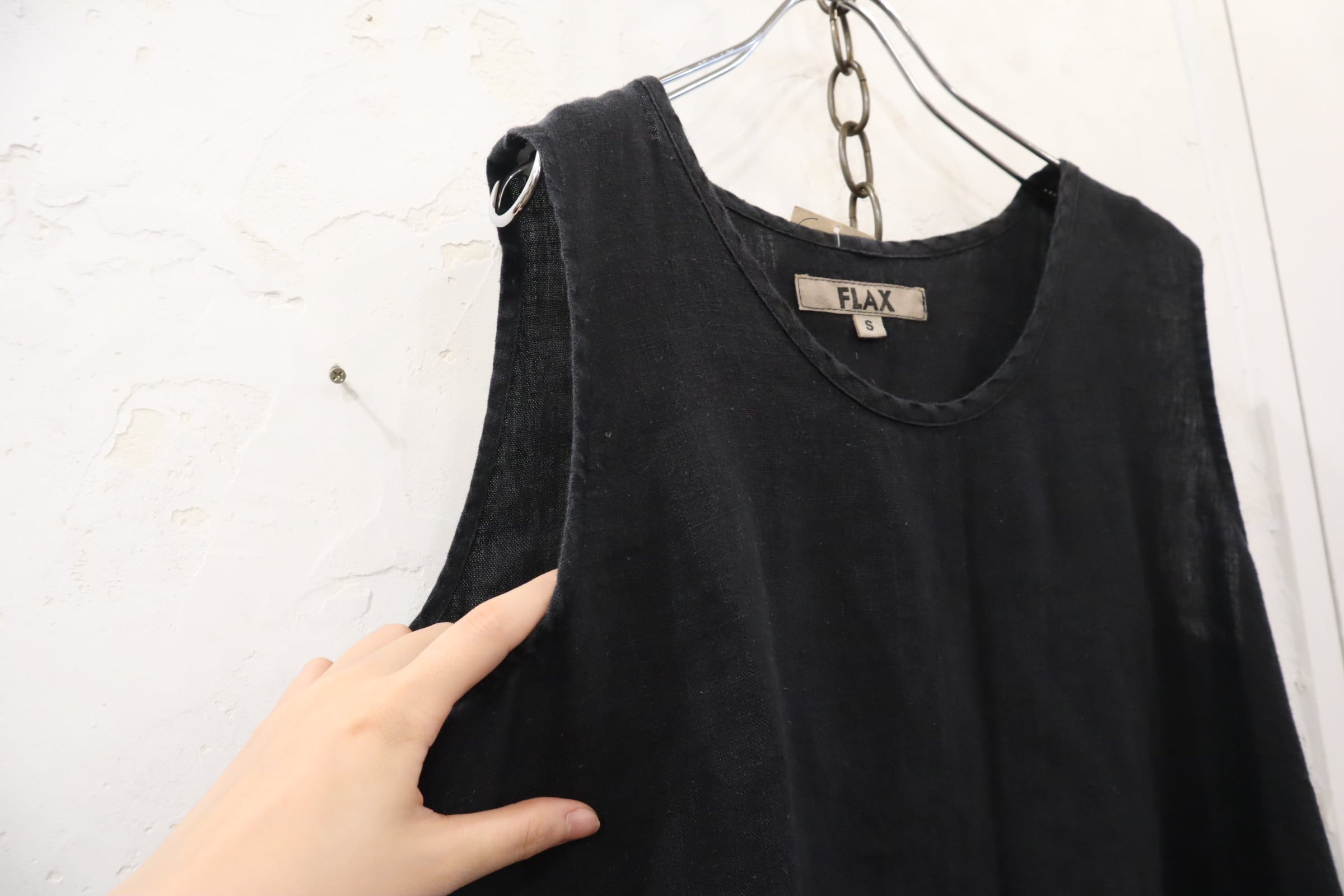 FLAX black plain sleeveless linen tops [k-3836]