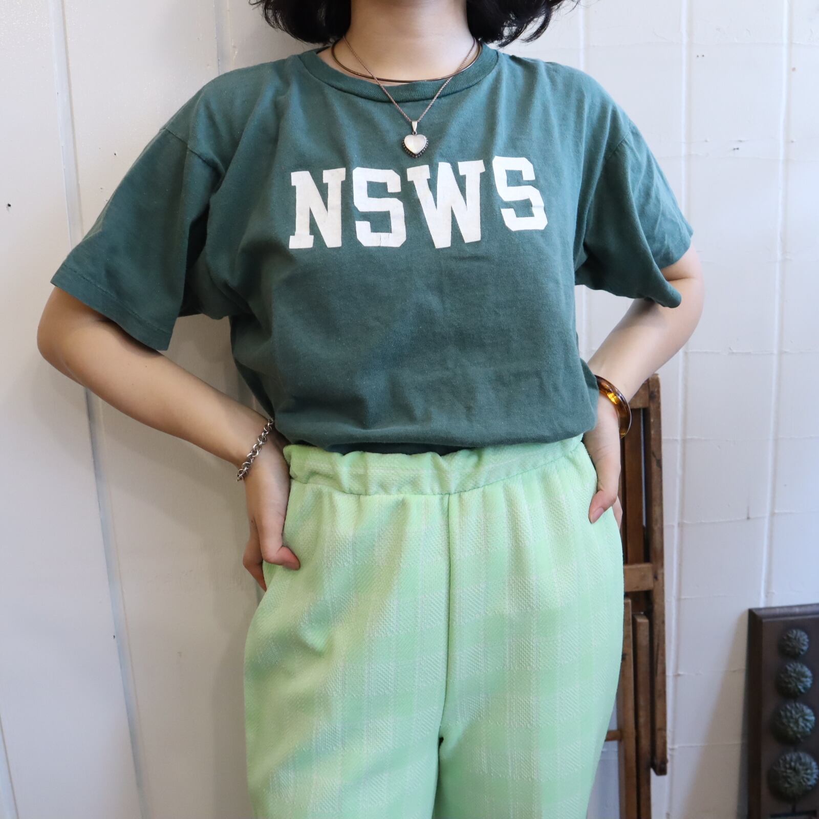 70s-80s Champion green×white rubber print T-shirt [l-3844]