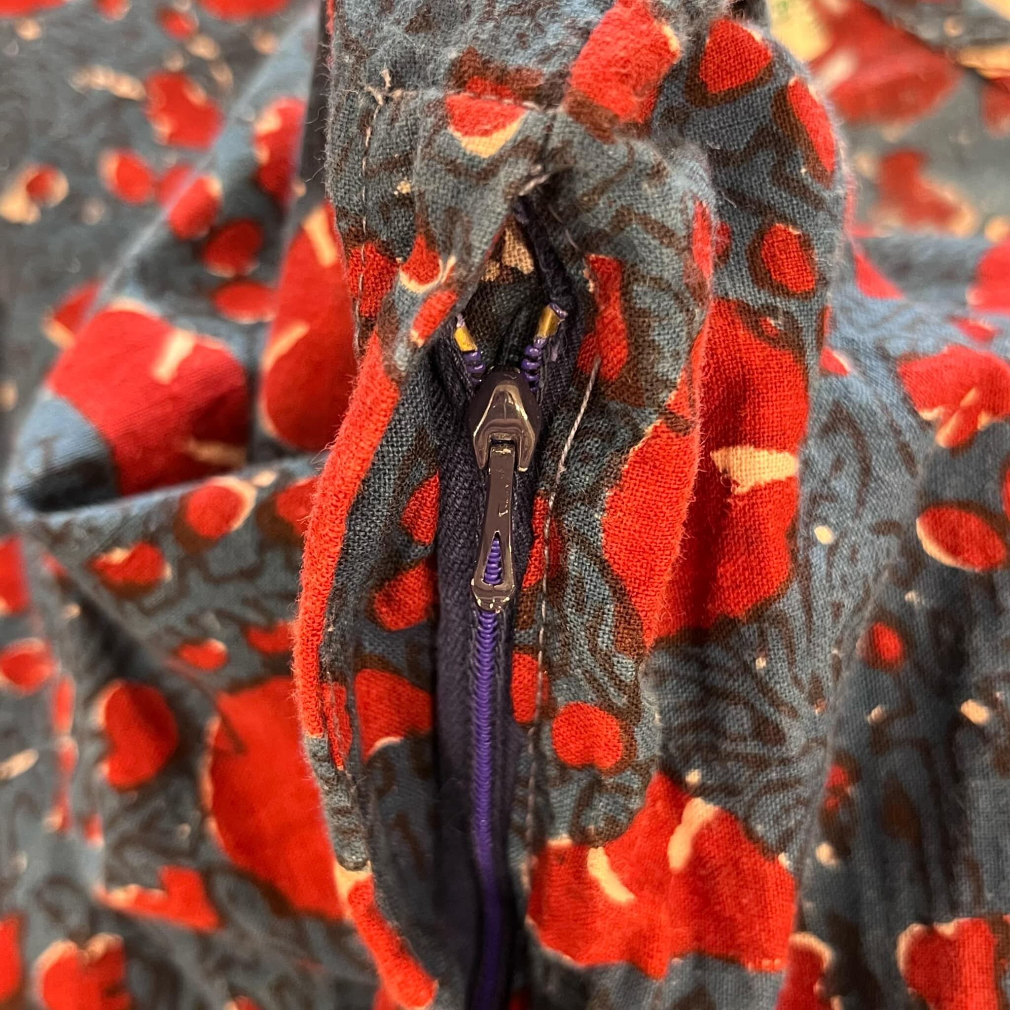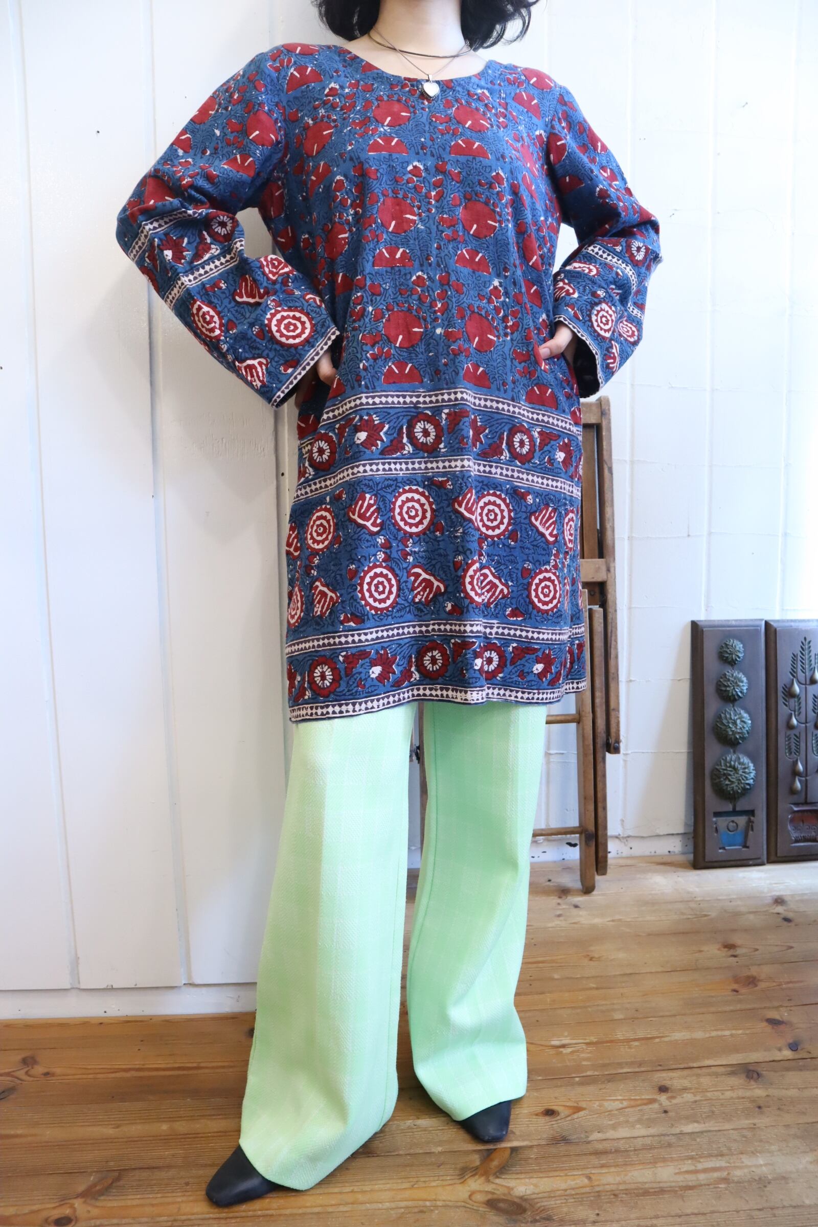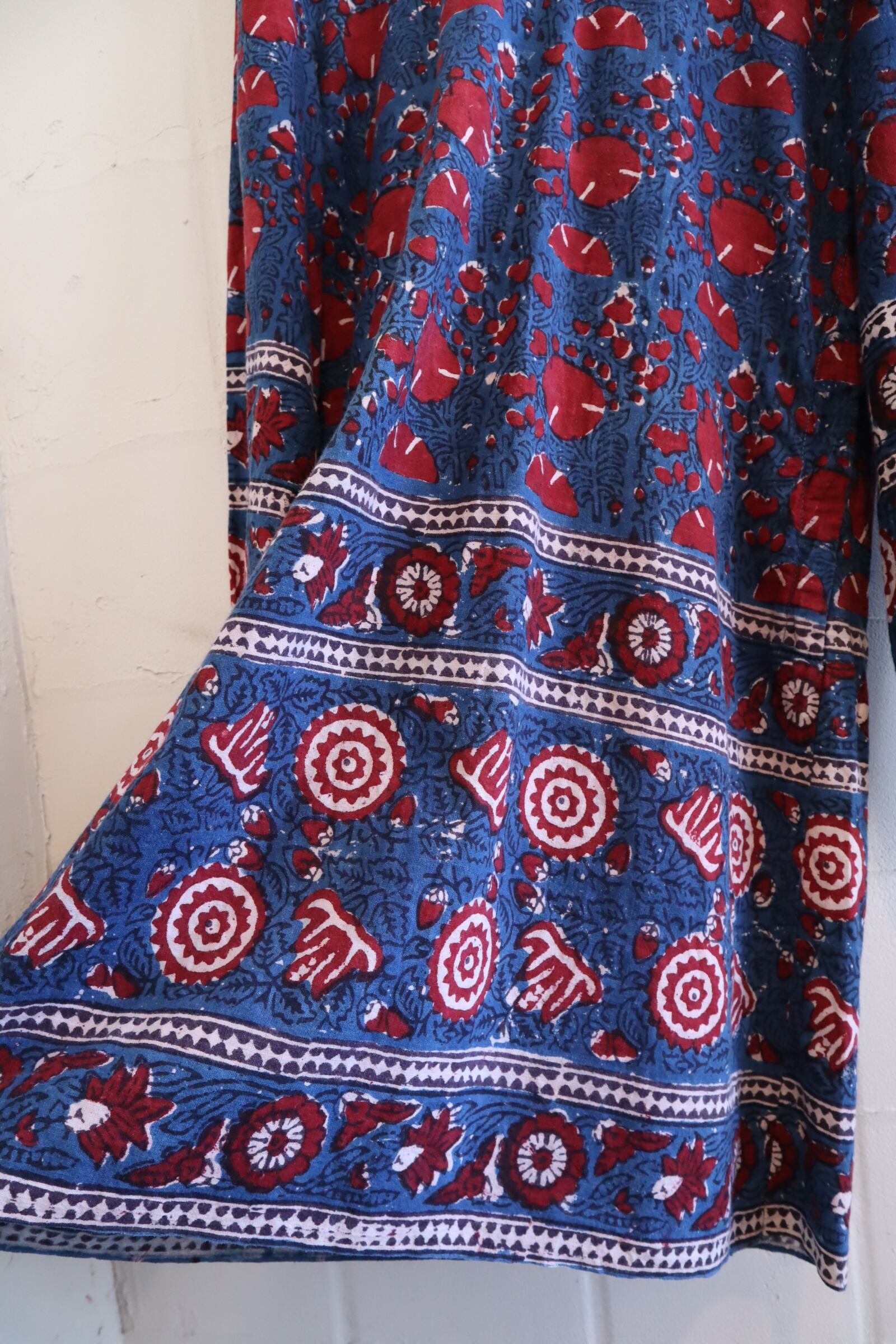 少し広がったお袖や渋めカラーが可愛いインドコットンドレス。