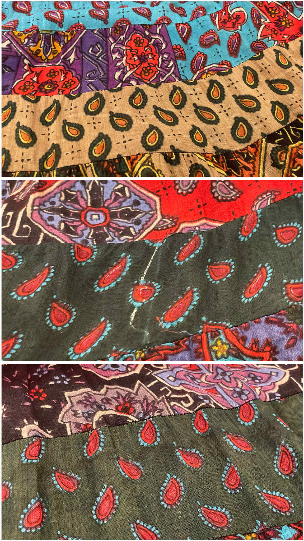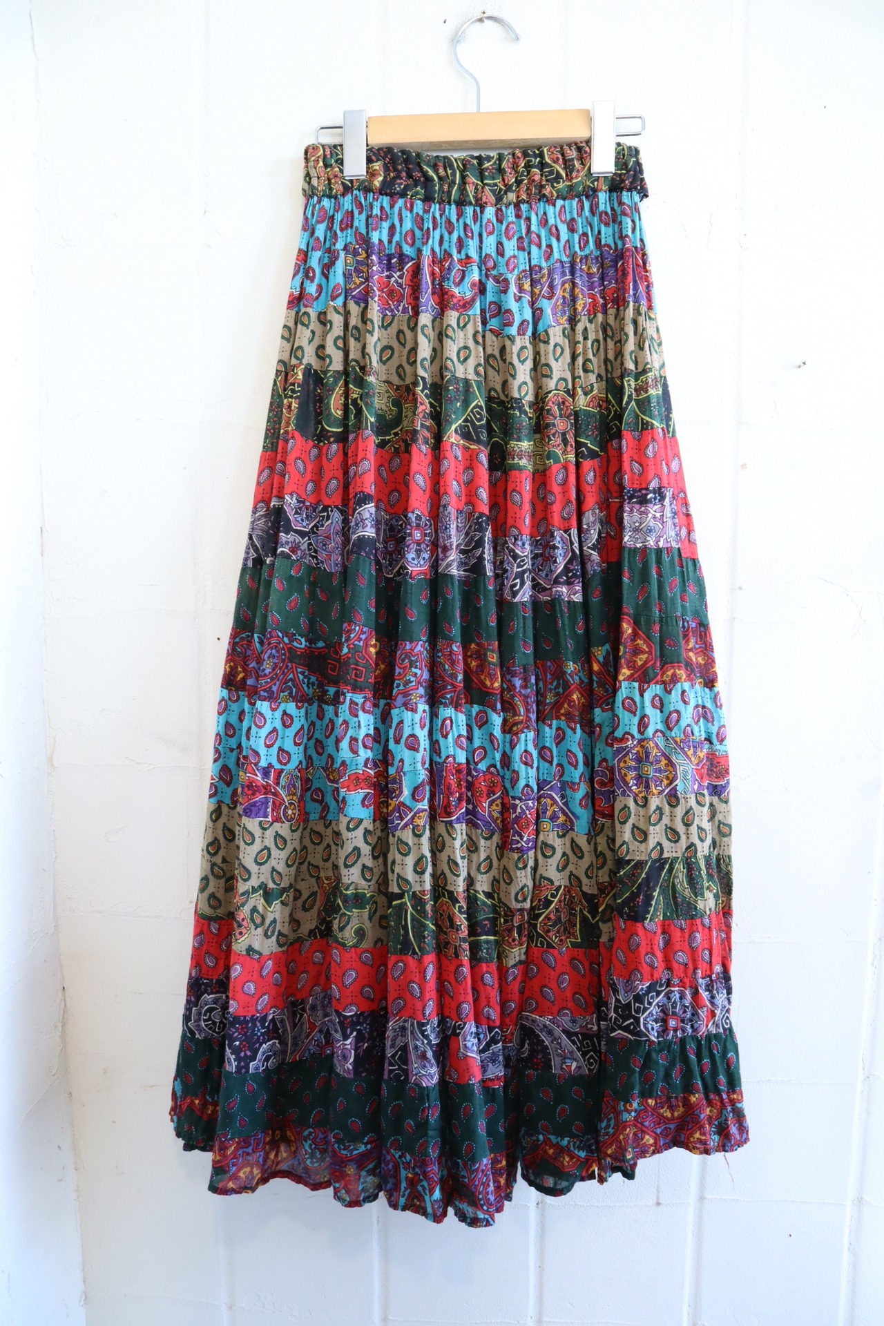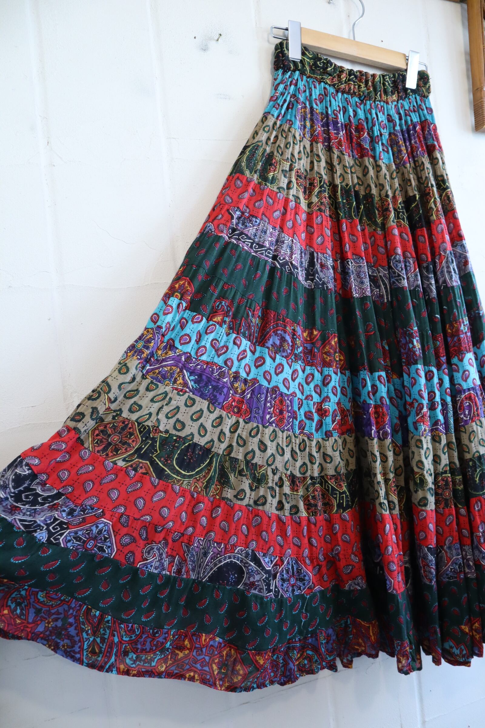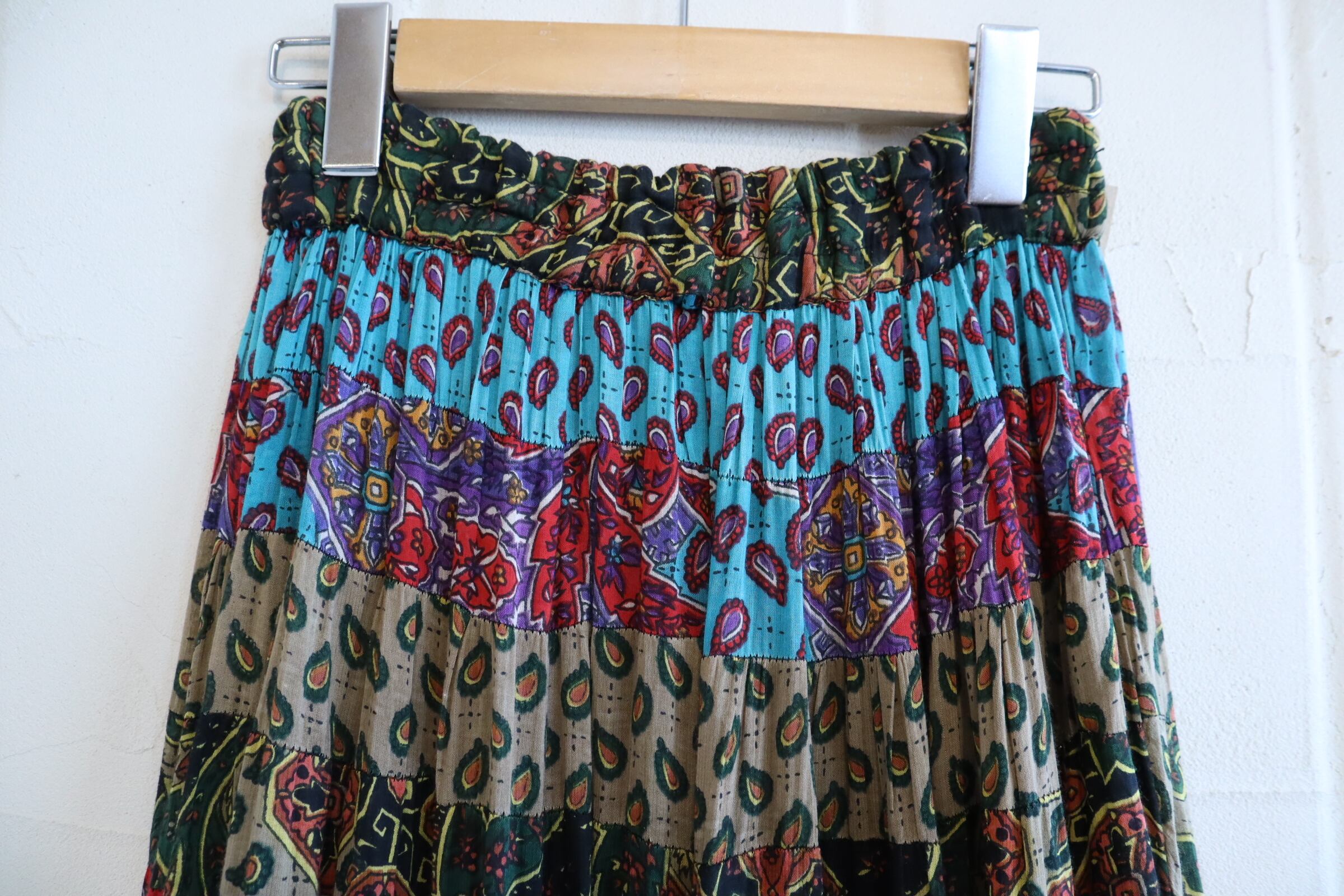 red×saxblue paisley&flower tiered rayon skirt [l-3863]