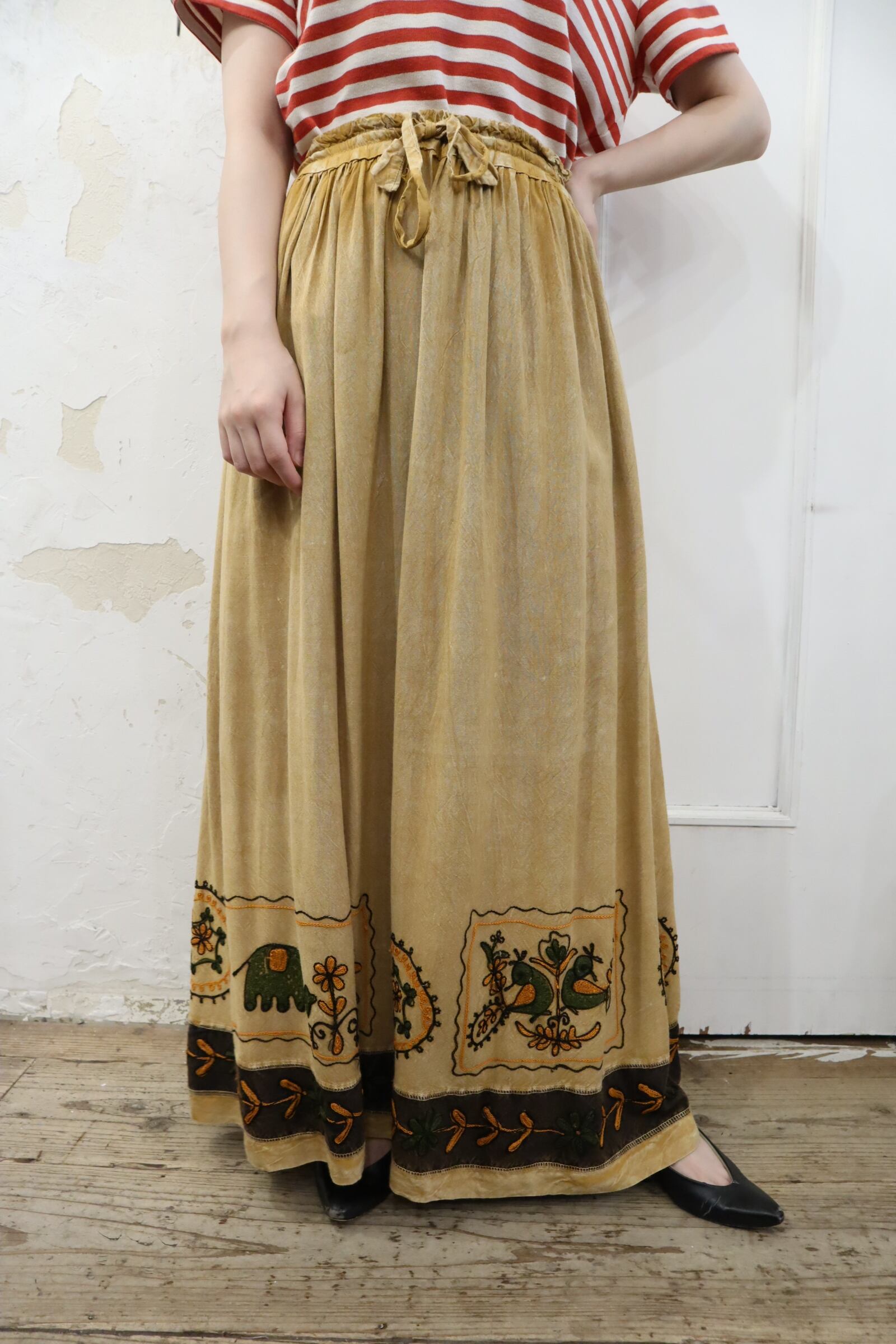 ゾウや鳥の刺繍がとても可愛いレーヨンスカート♡