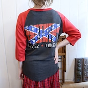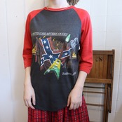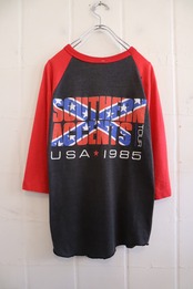 80s black×red double sided print raglan sleeve band T-shirt [l-3870]
