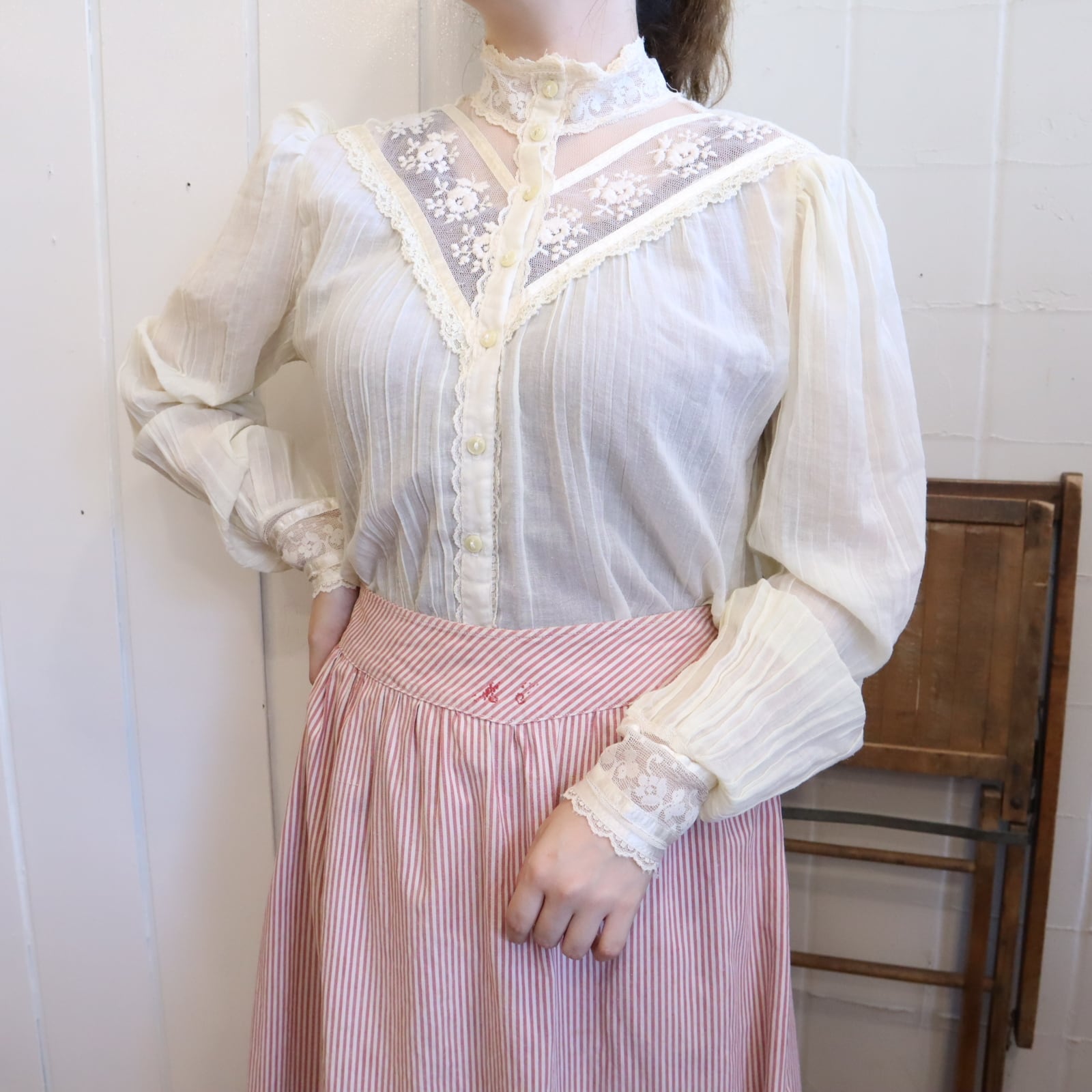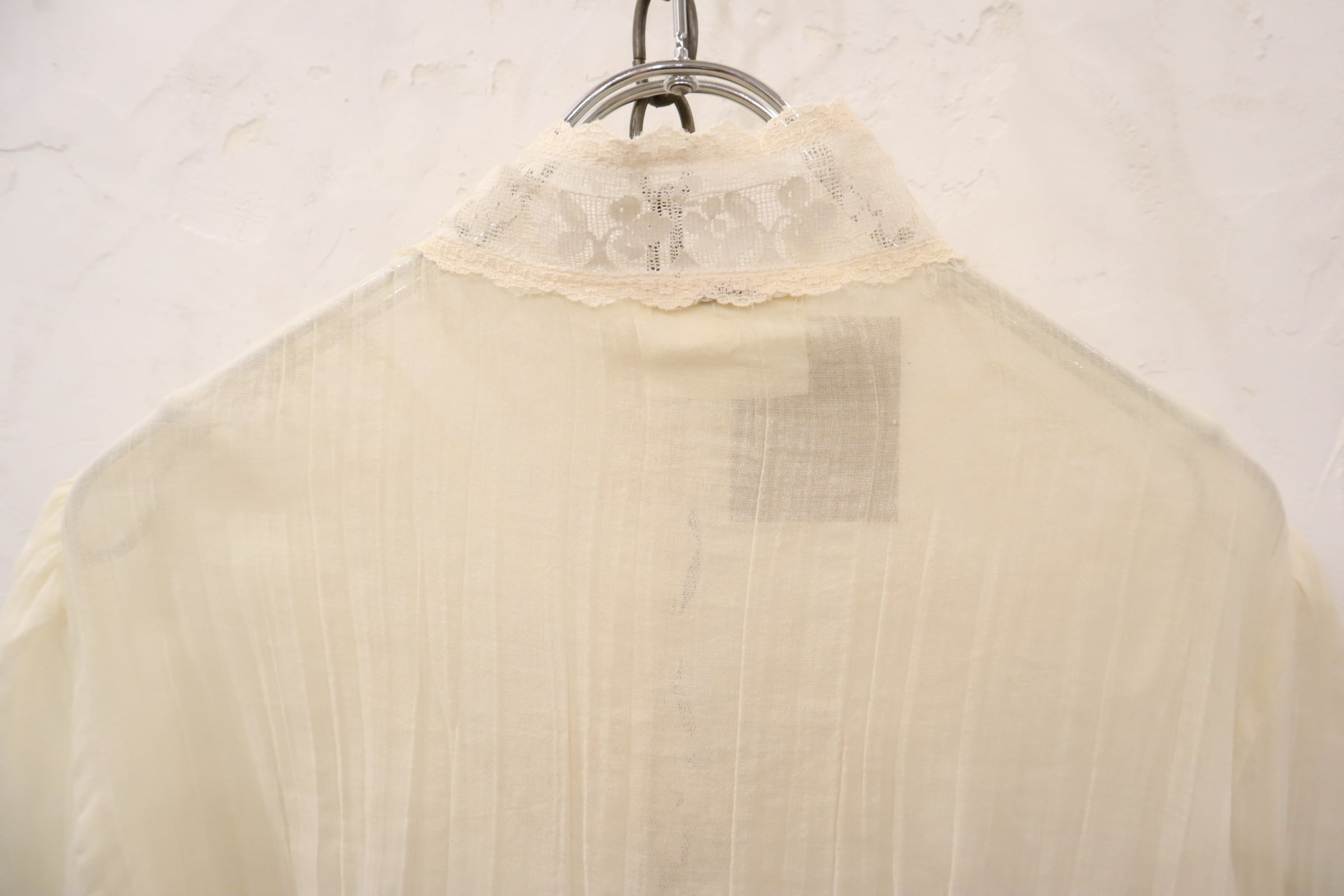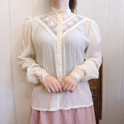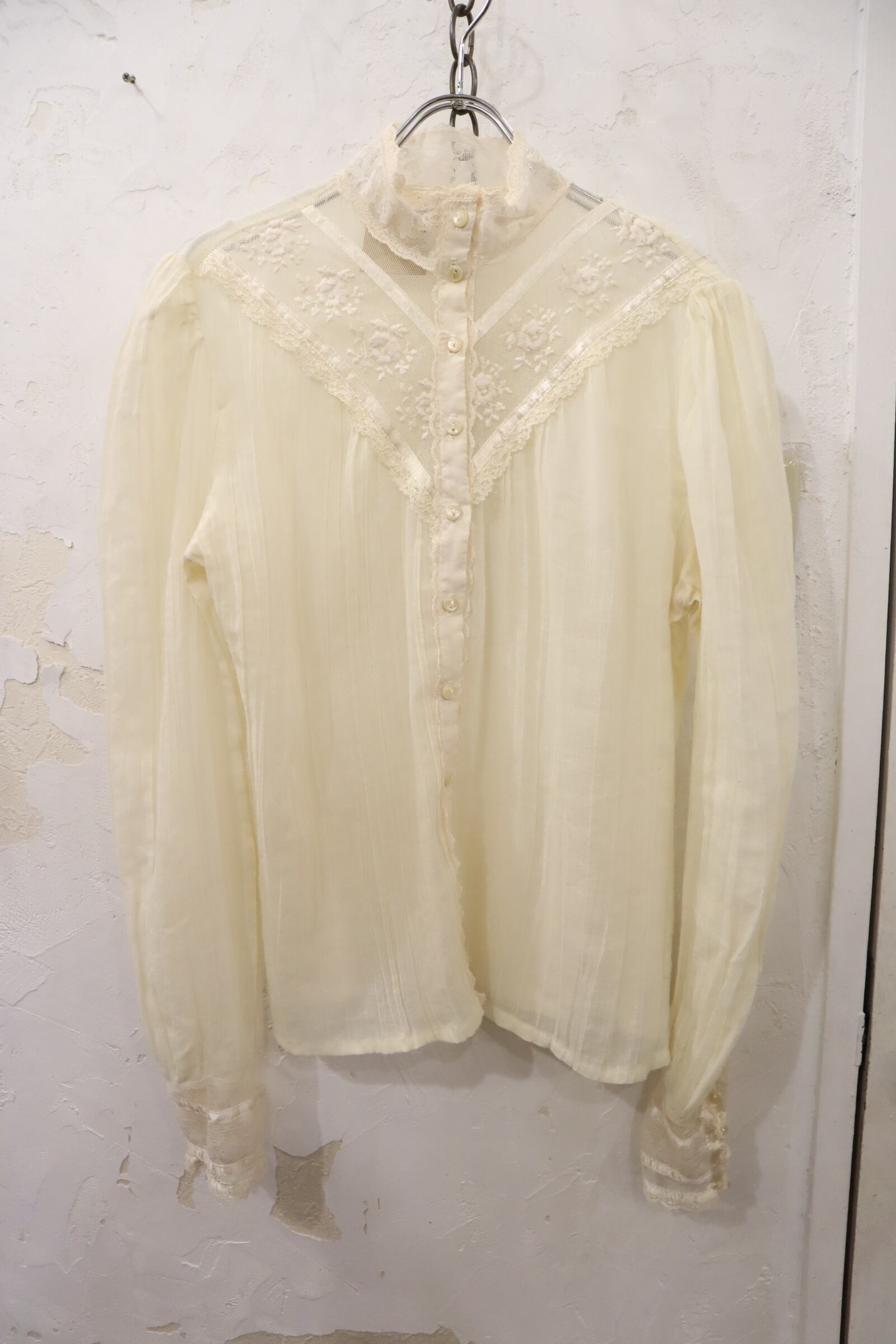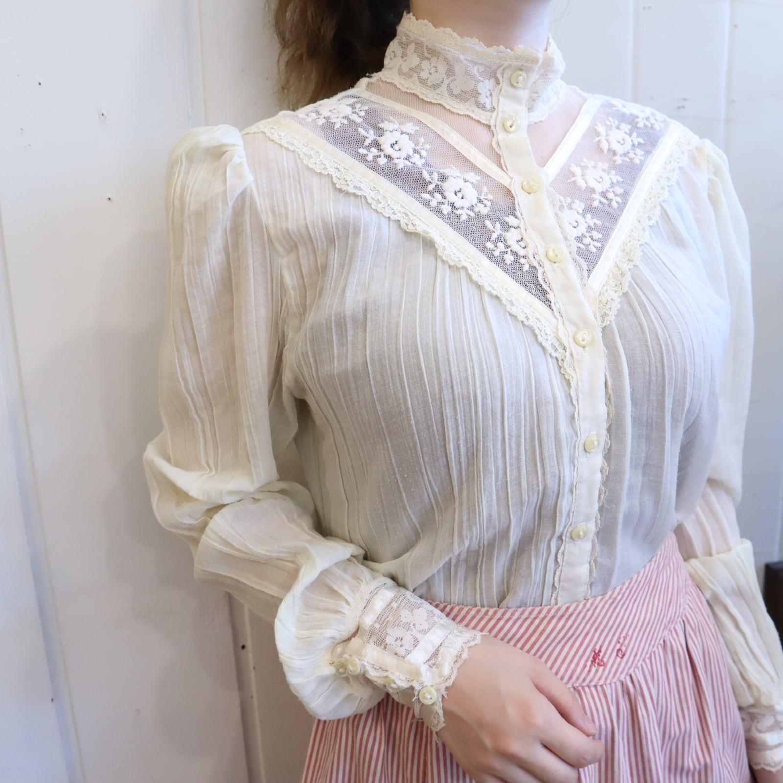 70s GUNNE SAX offwhite lace standcollar blouse [l-3883]