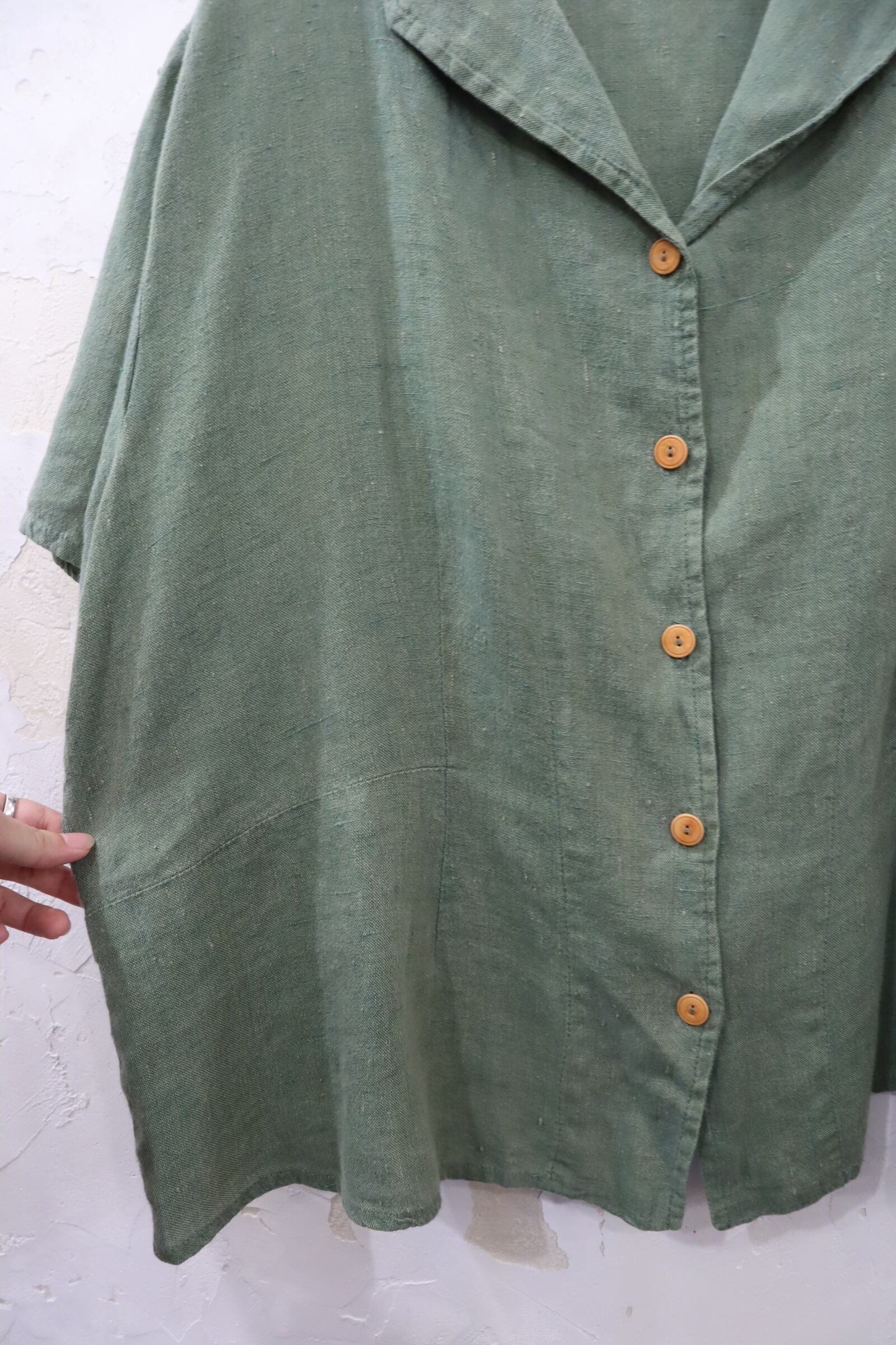 ゆったりとしたシルエットが可愛いリネンシャツです。
