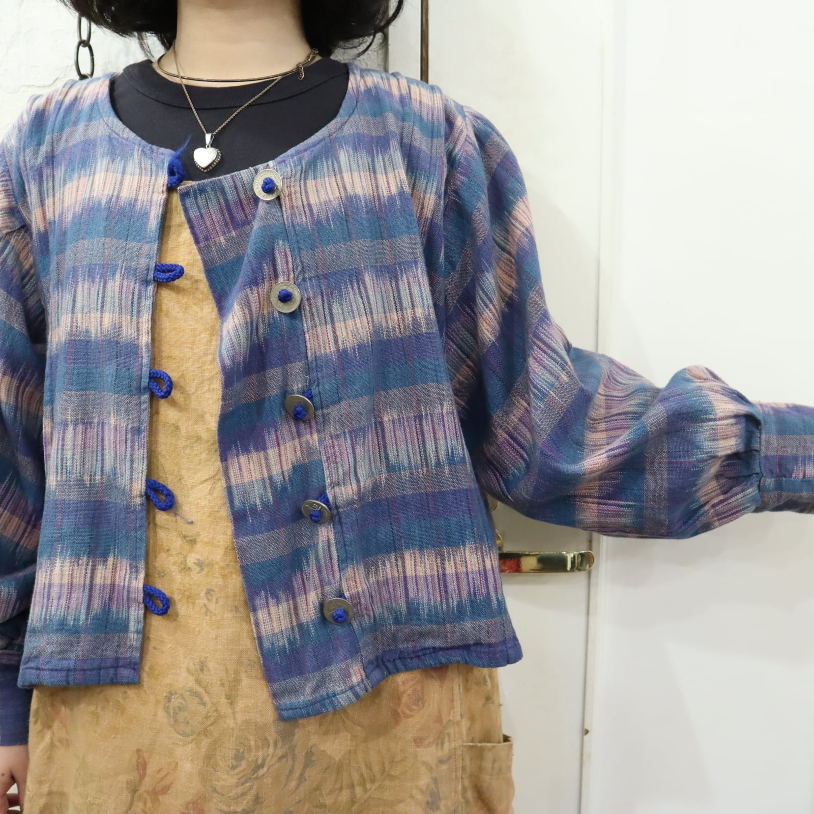 made in Guatemala blue×purple native pattern tops [k-3895]