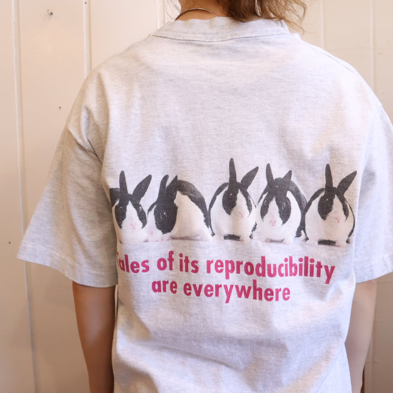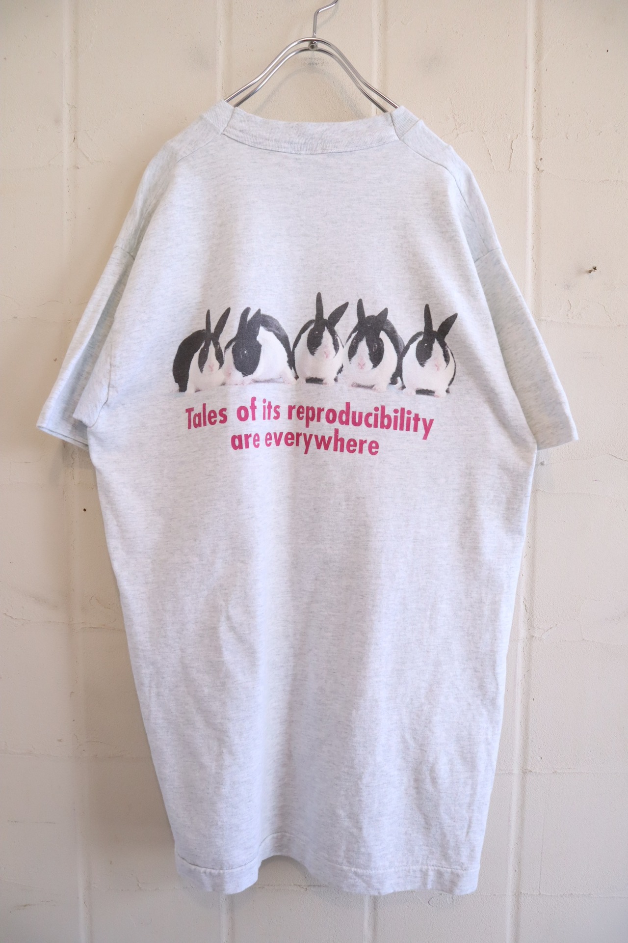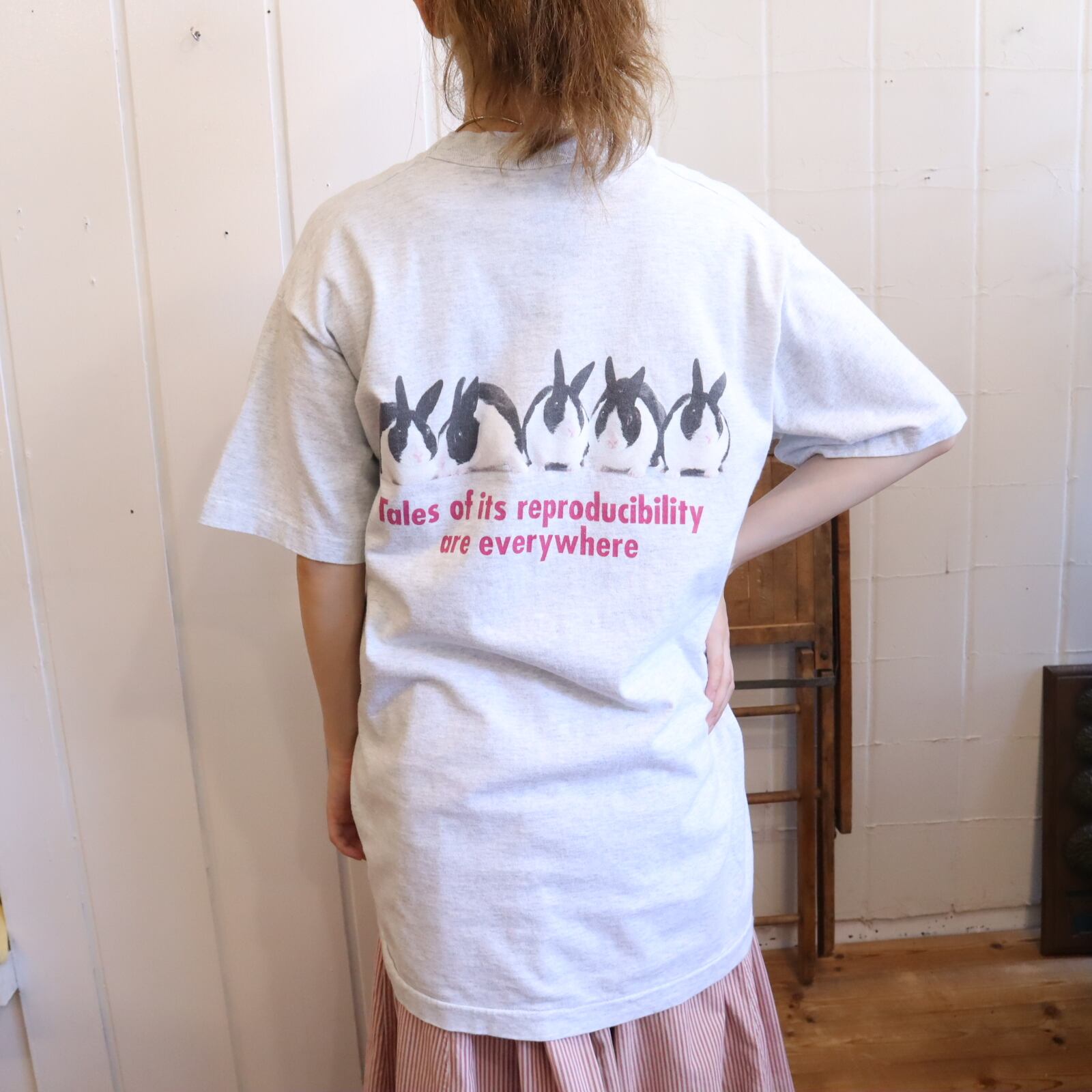 90s lightgray×black rabbit double sided print T-shirt [l-3897]