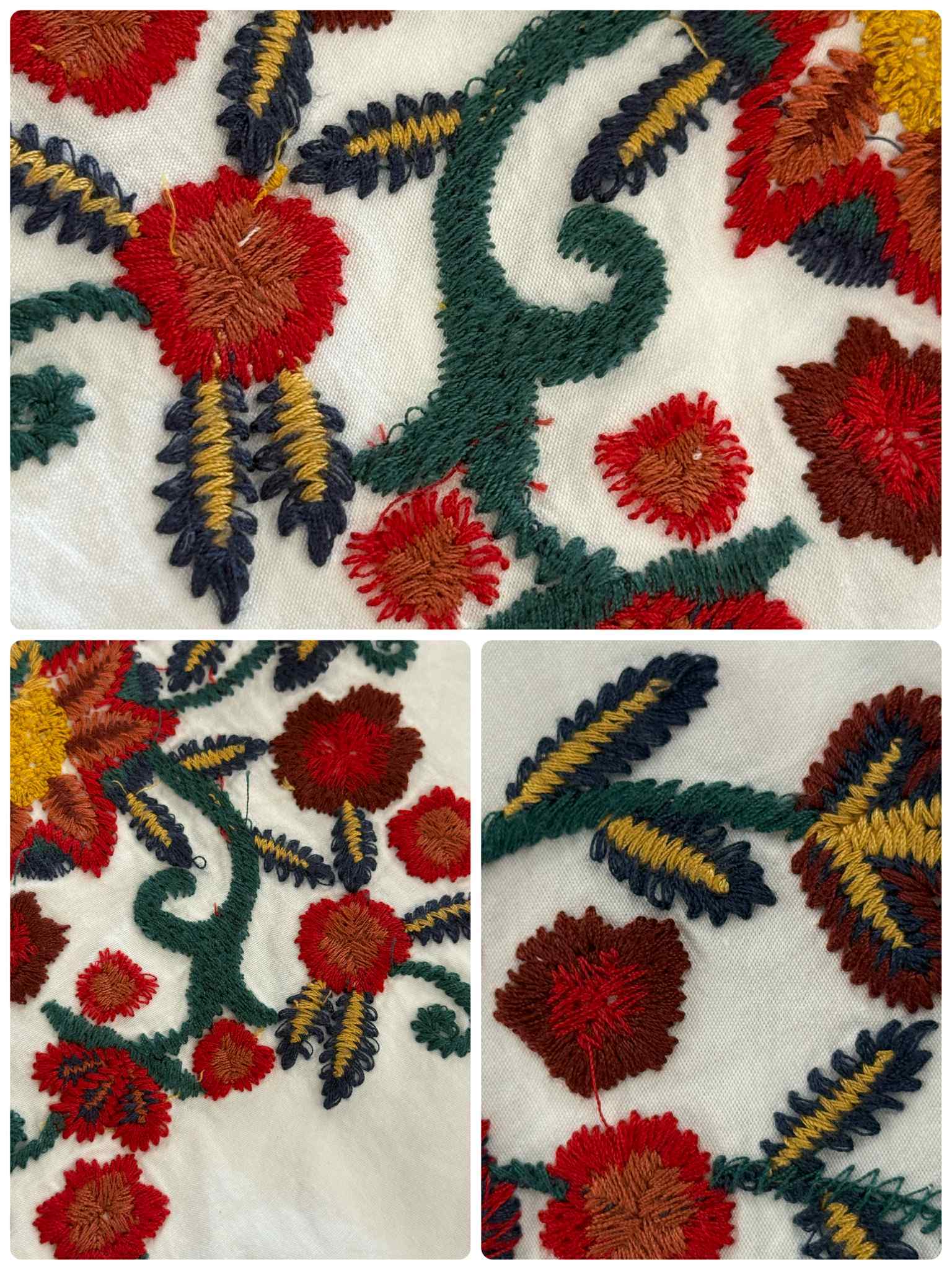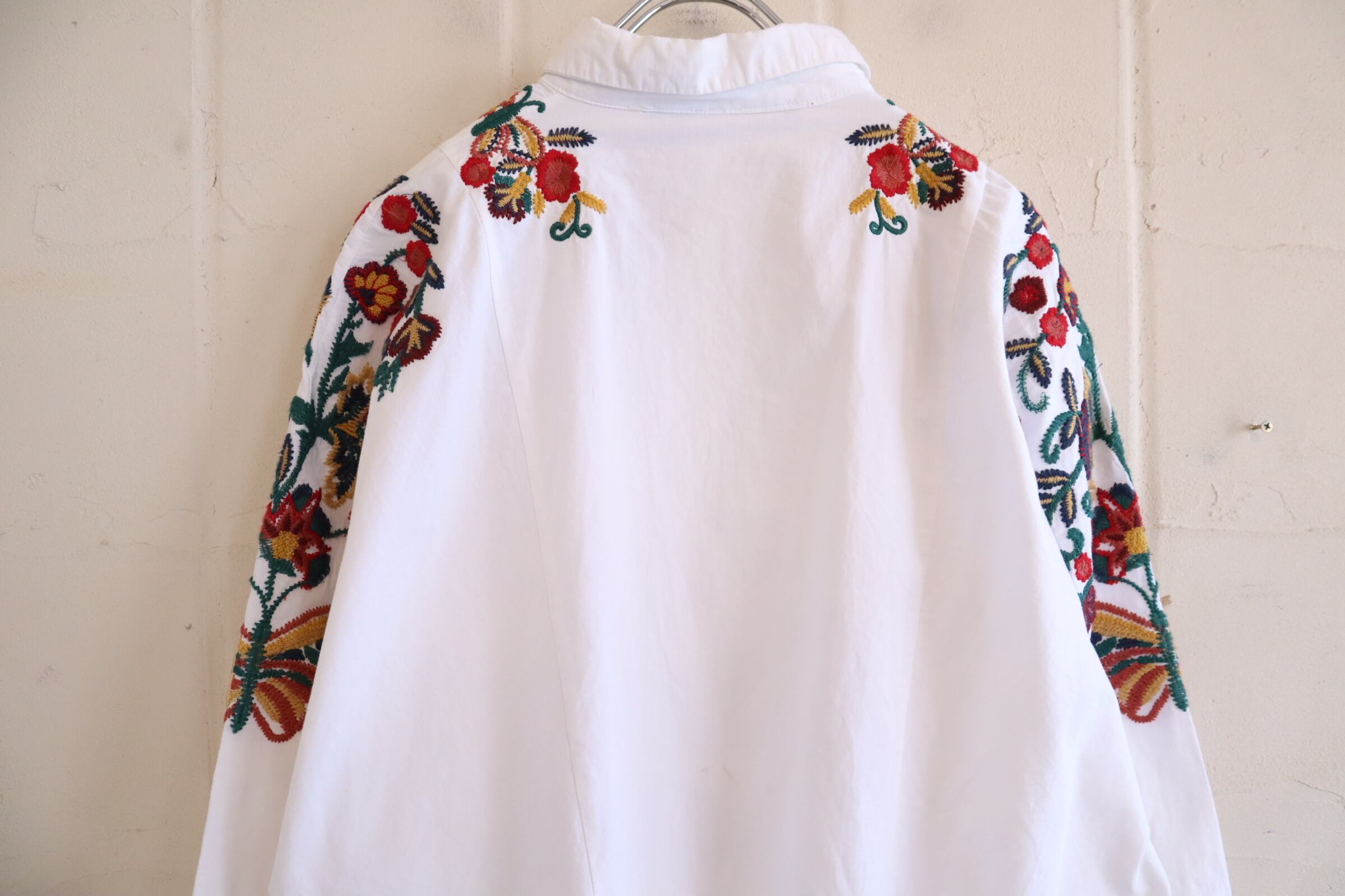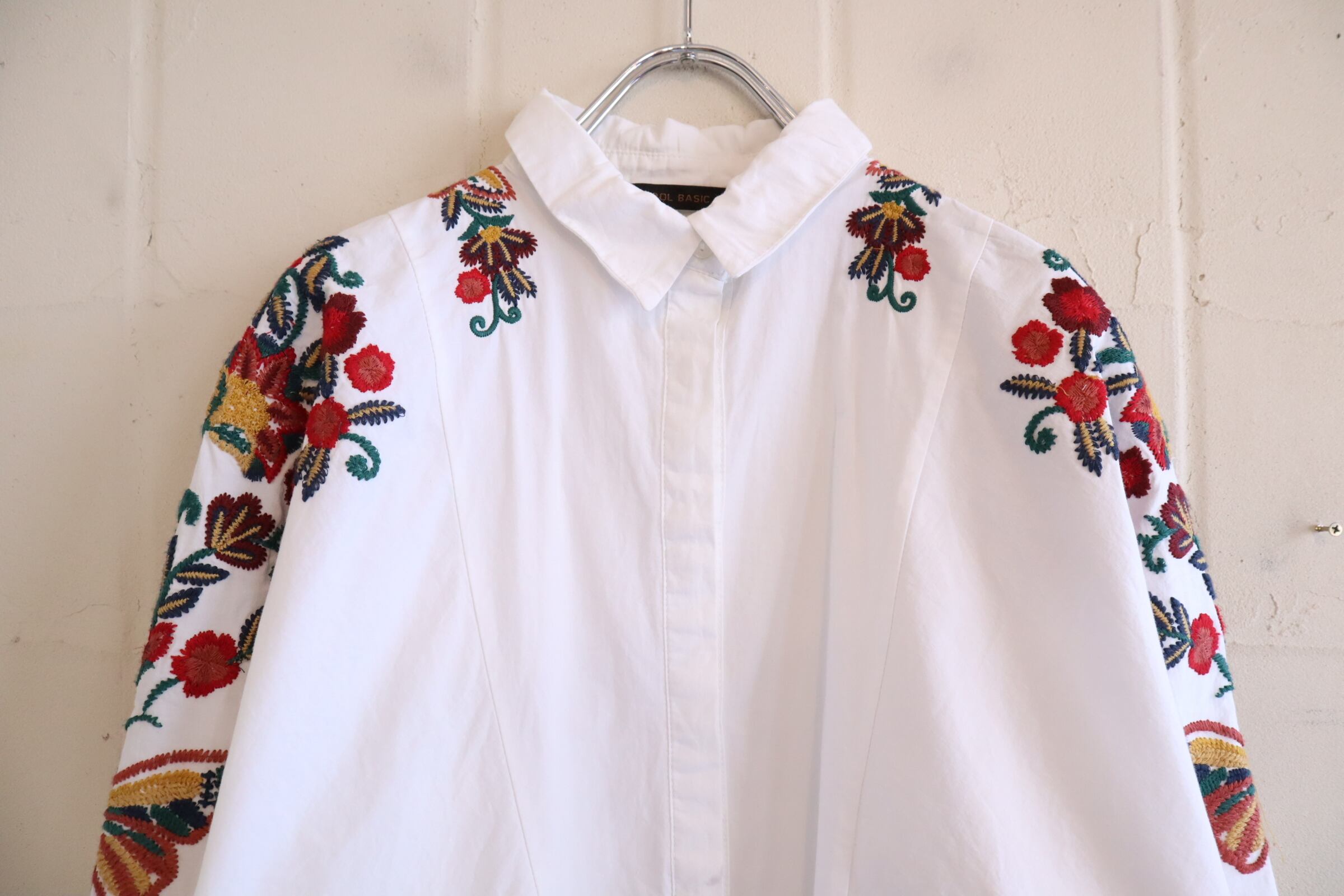 肩の色鮮やかな刺繍が素敵なブラウス。お花だけでなく、蝶々の刺繍も入っています♡