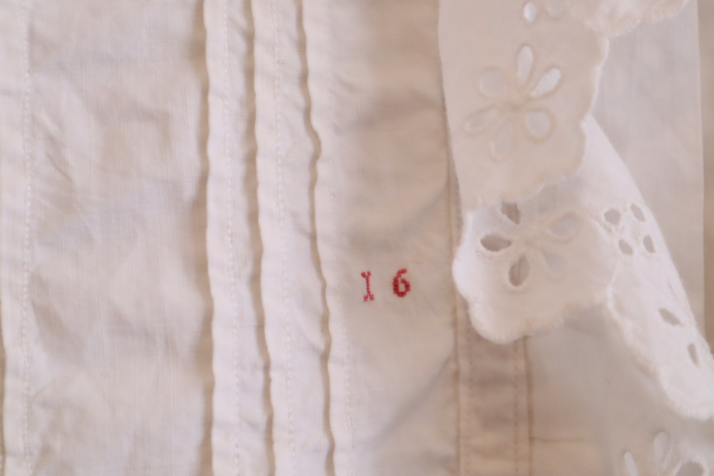 小さなイニシャル刺繍が素敵なアンティークブラウス。