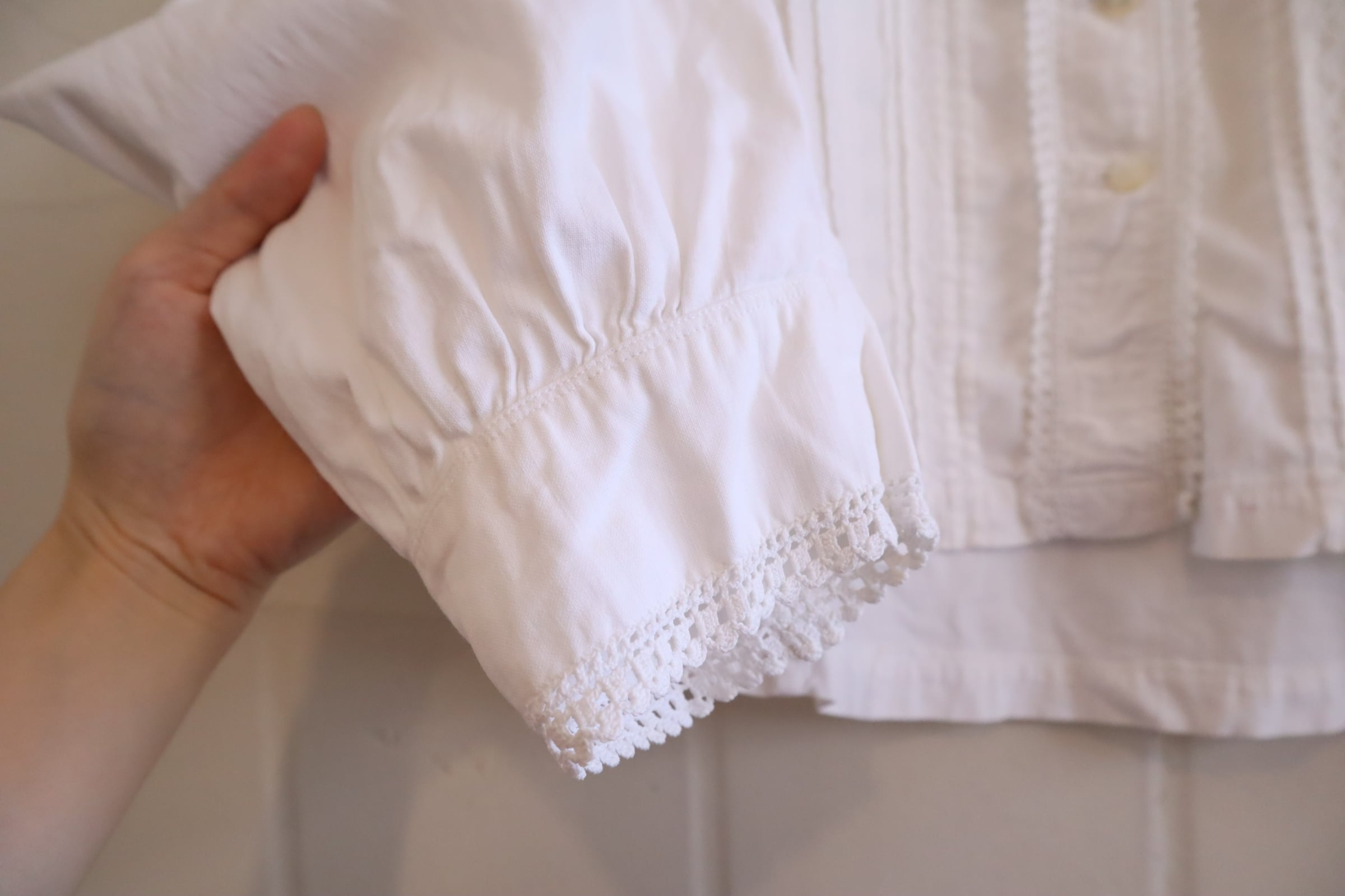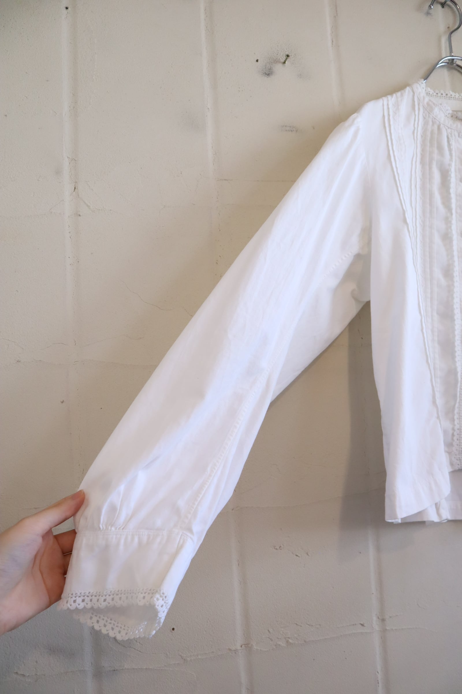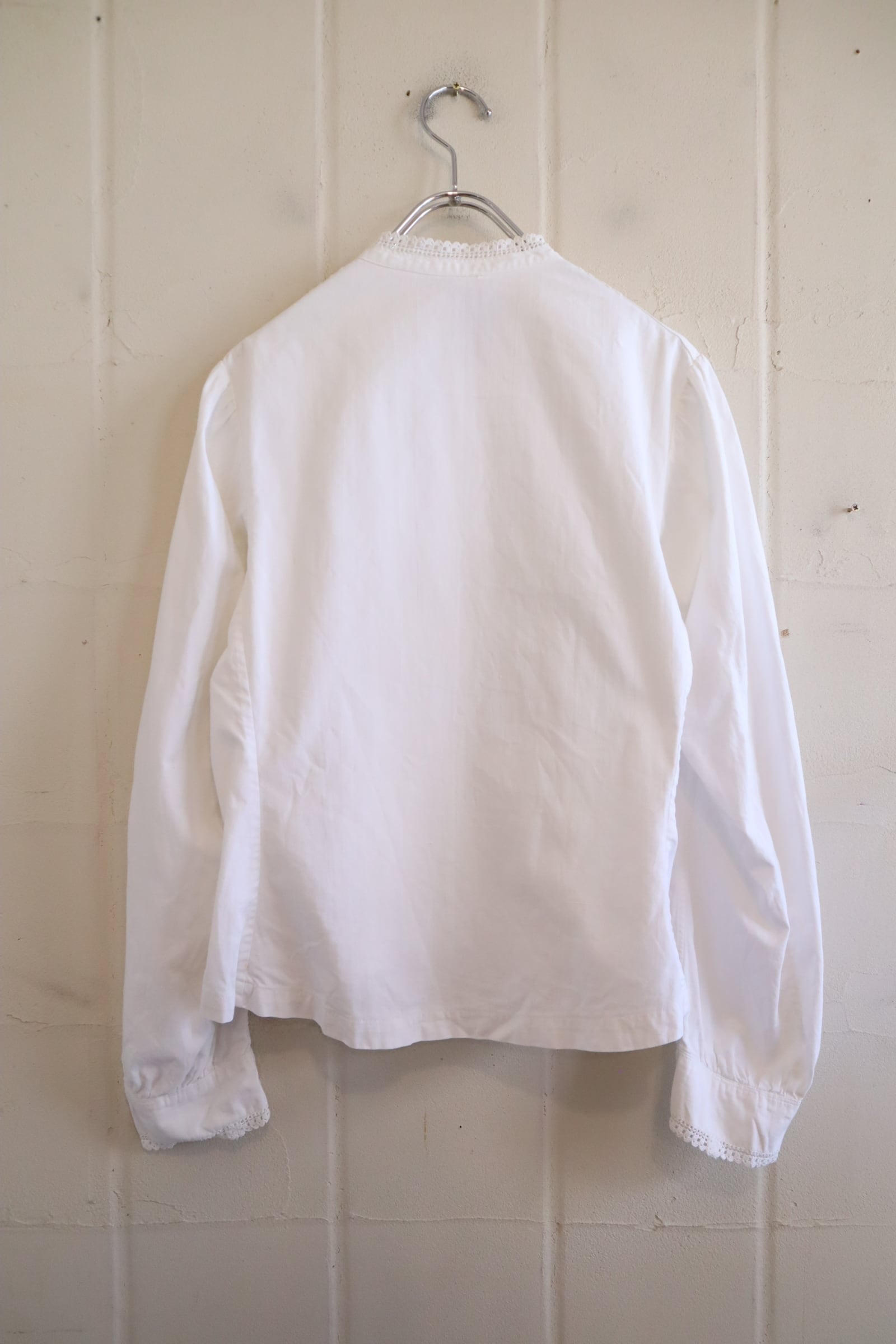 ややスタンドカラーのカチッとした雰囲気が素敵なアンティークブラウス。