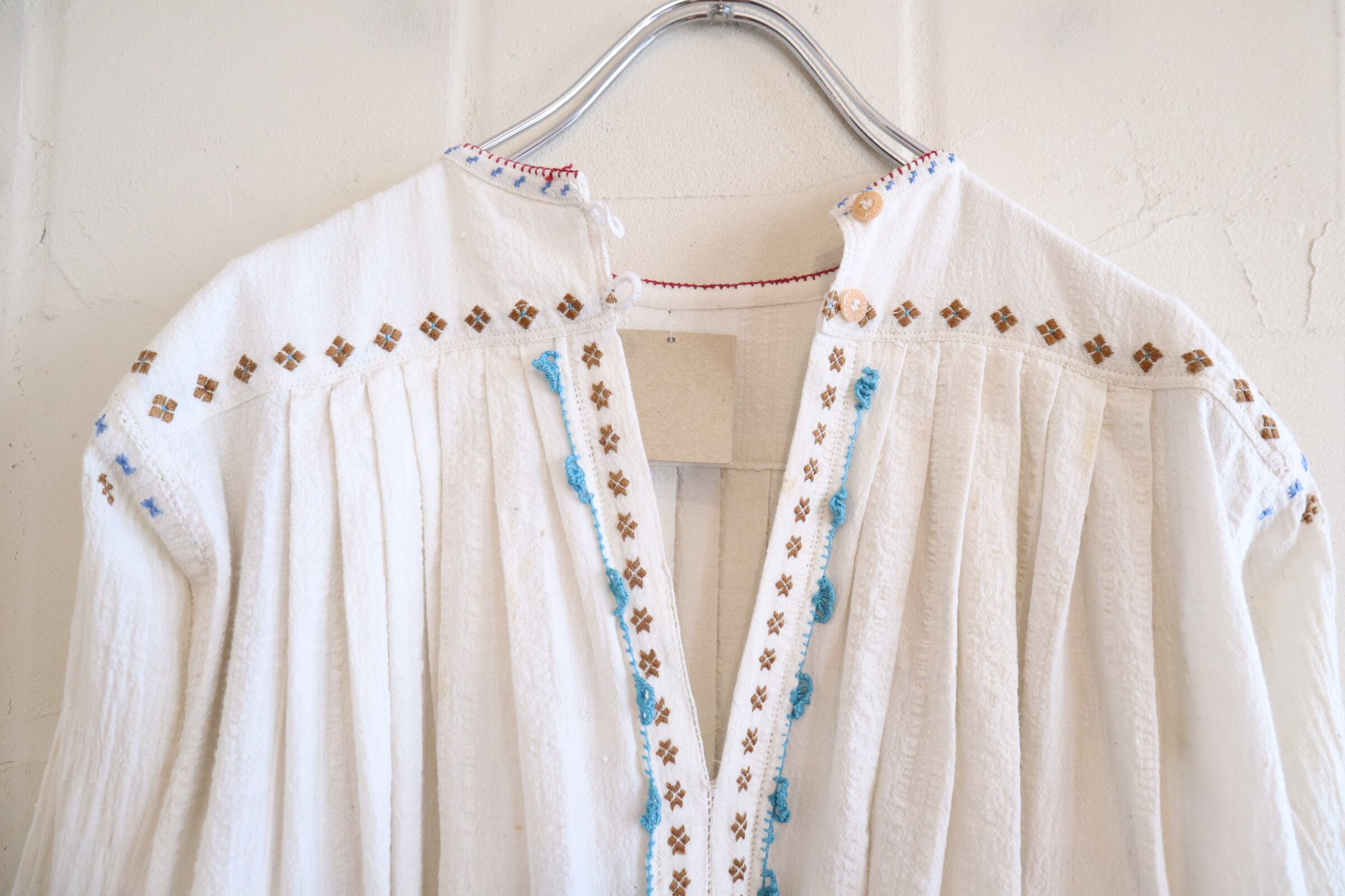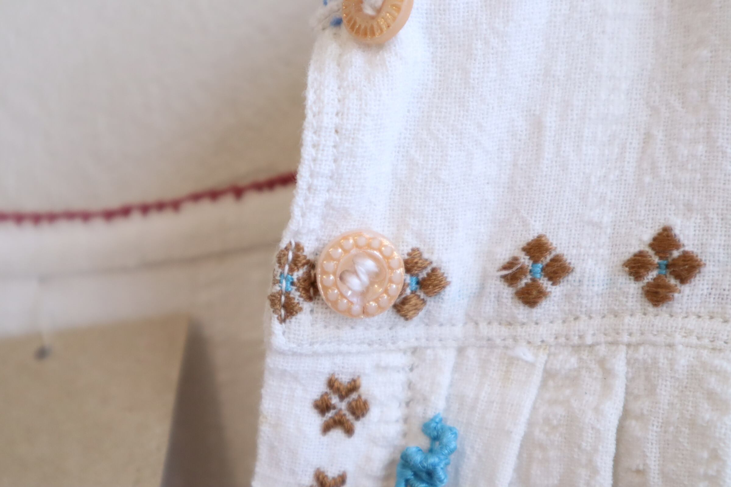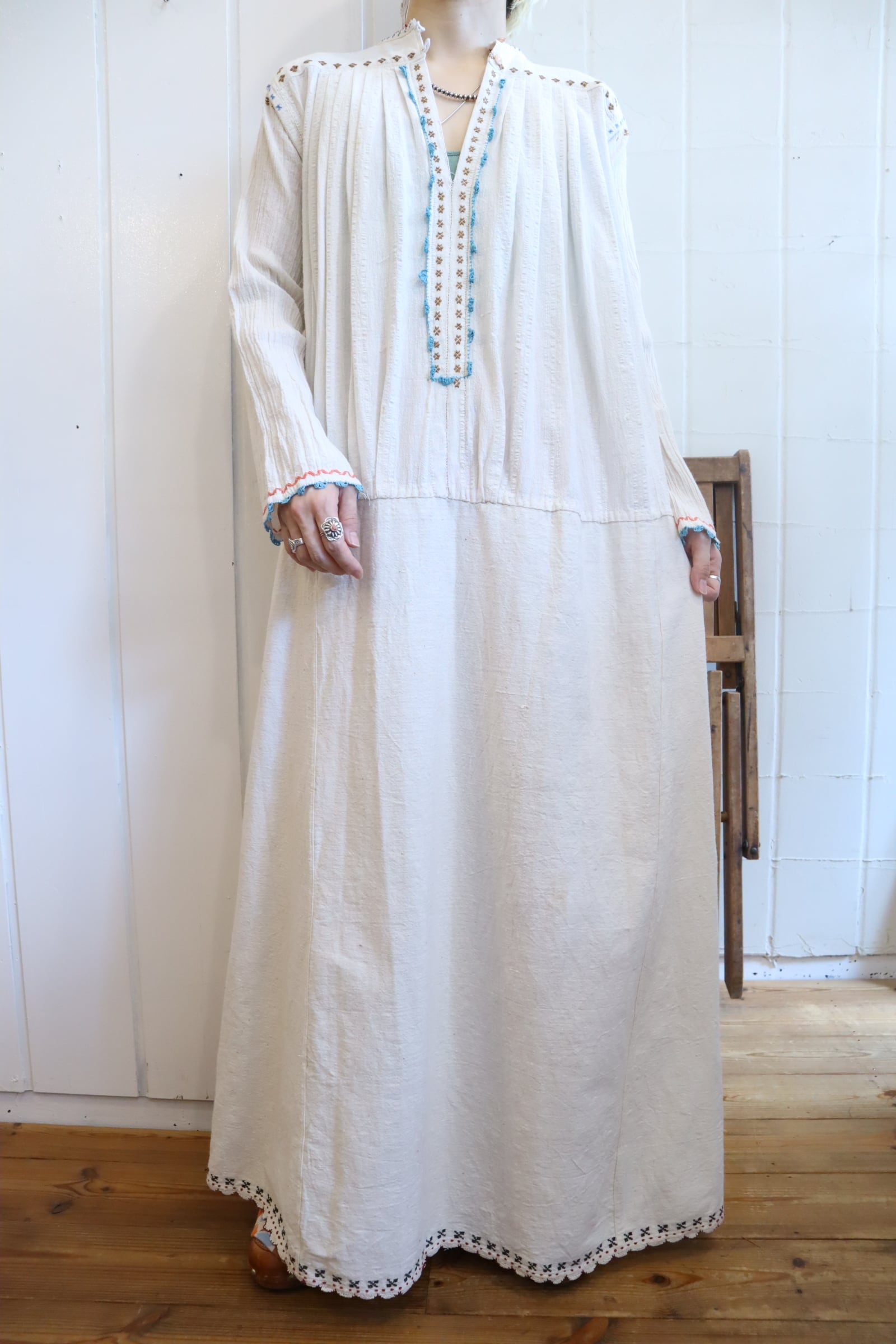 antique offwhite×blue×brown embroidery dress [l-3906]