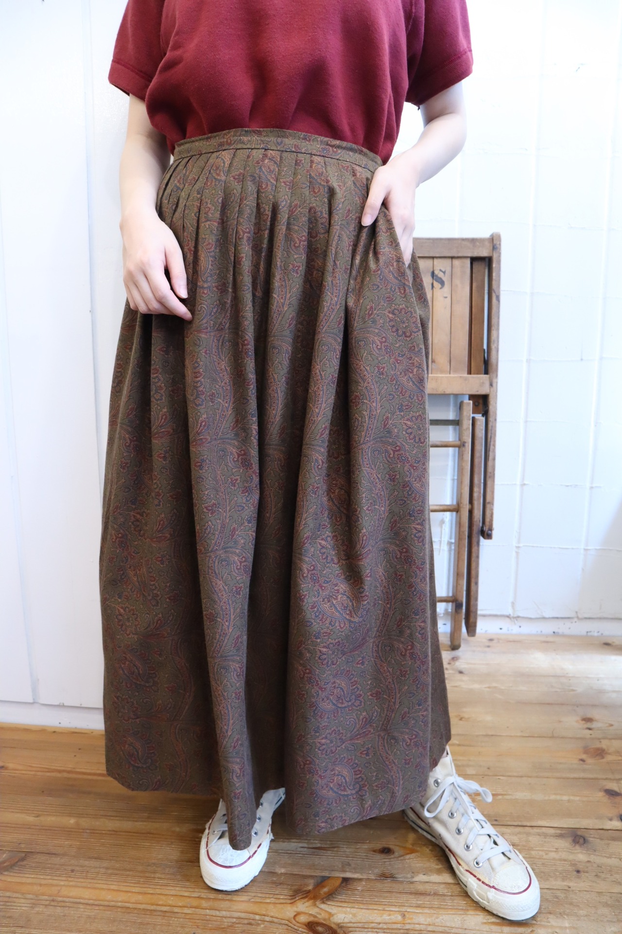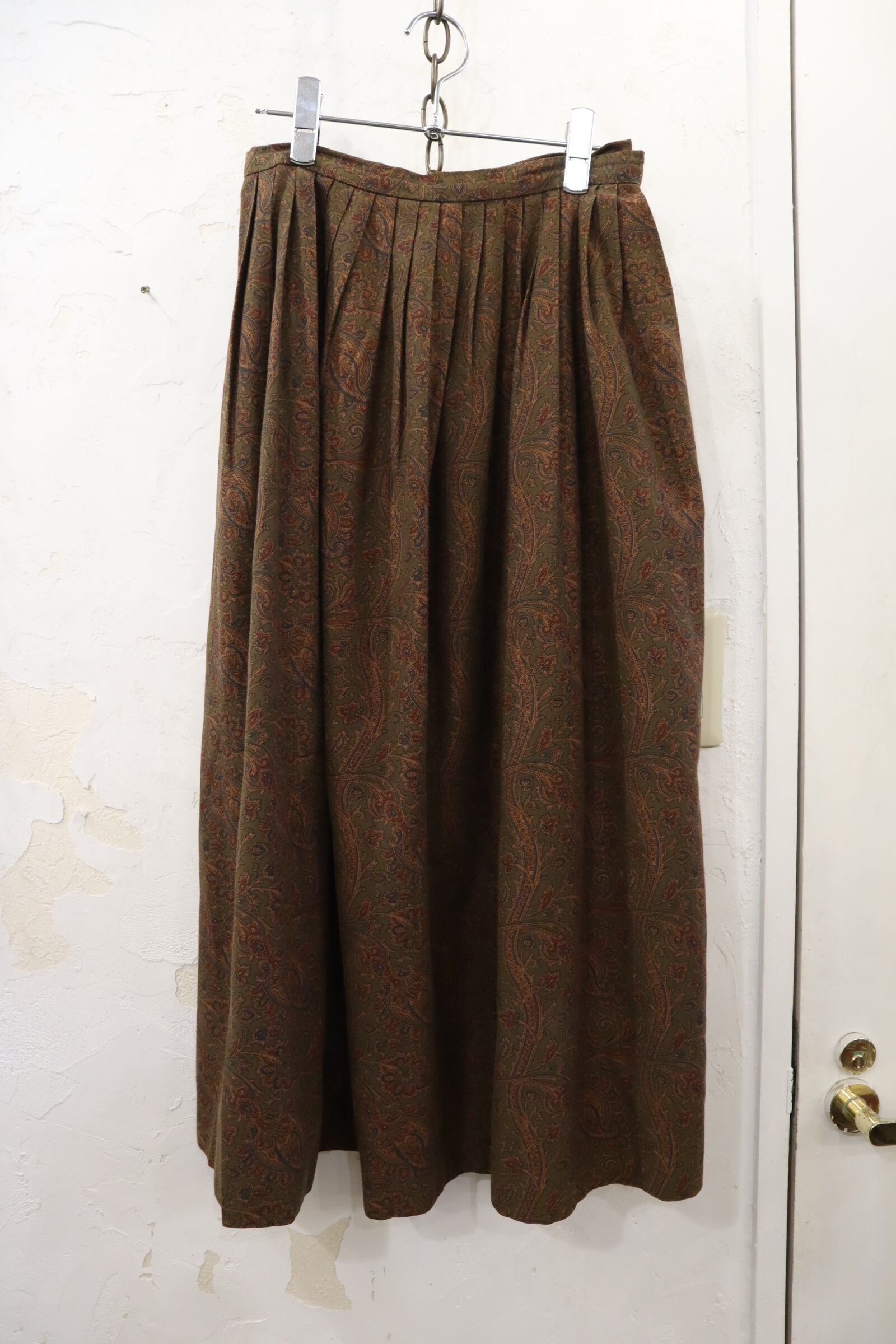 Ralph Lauren dullgreen×brown paisley print skirt [k-3909]