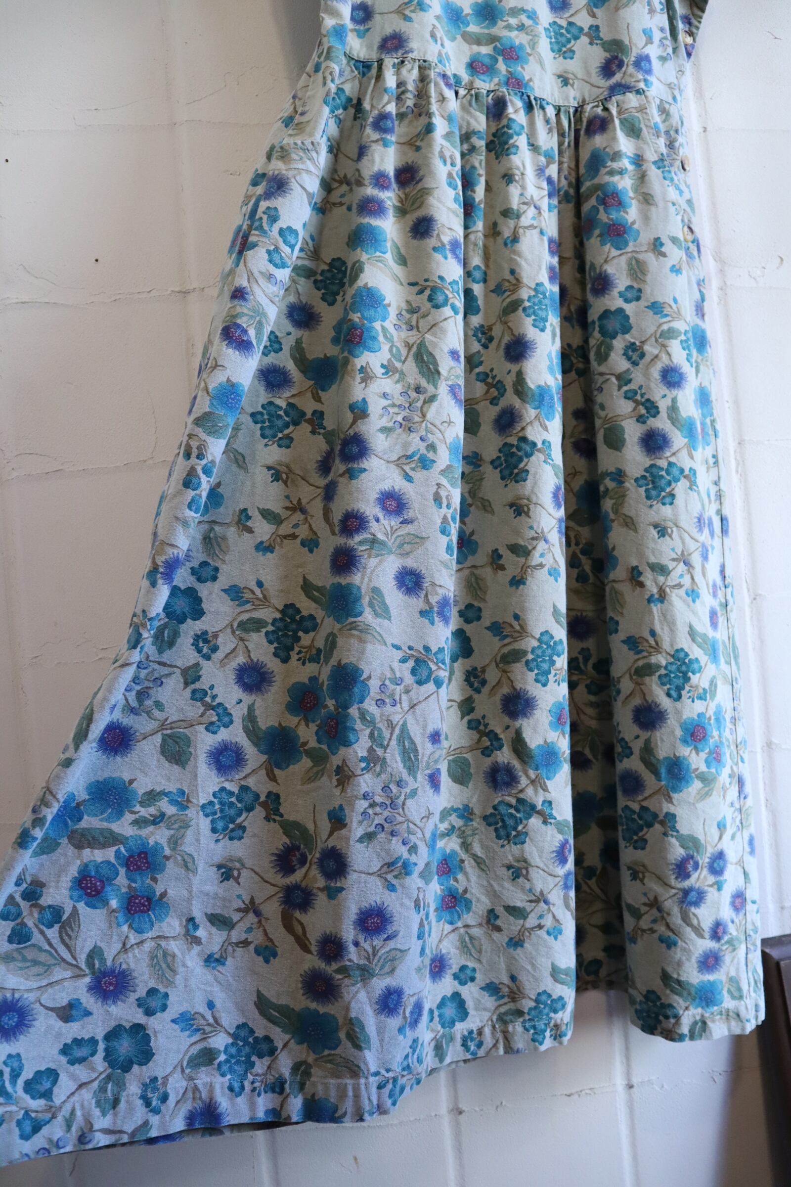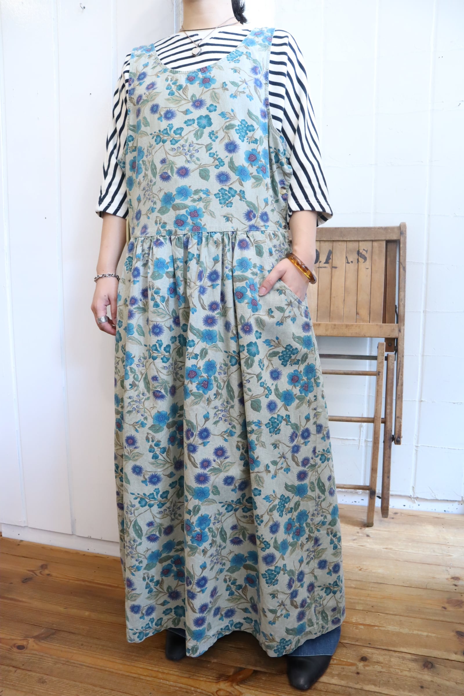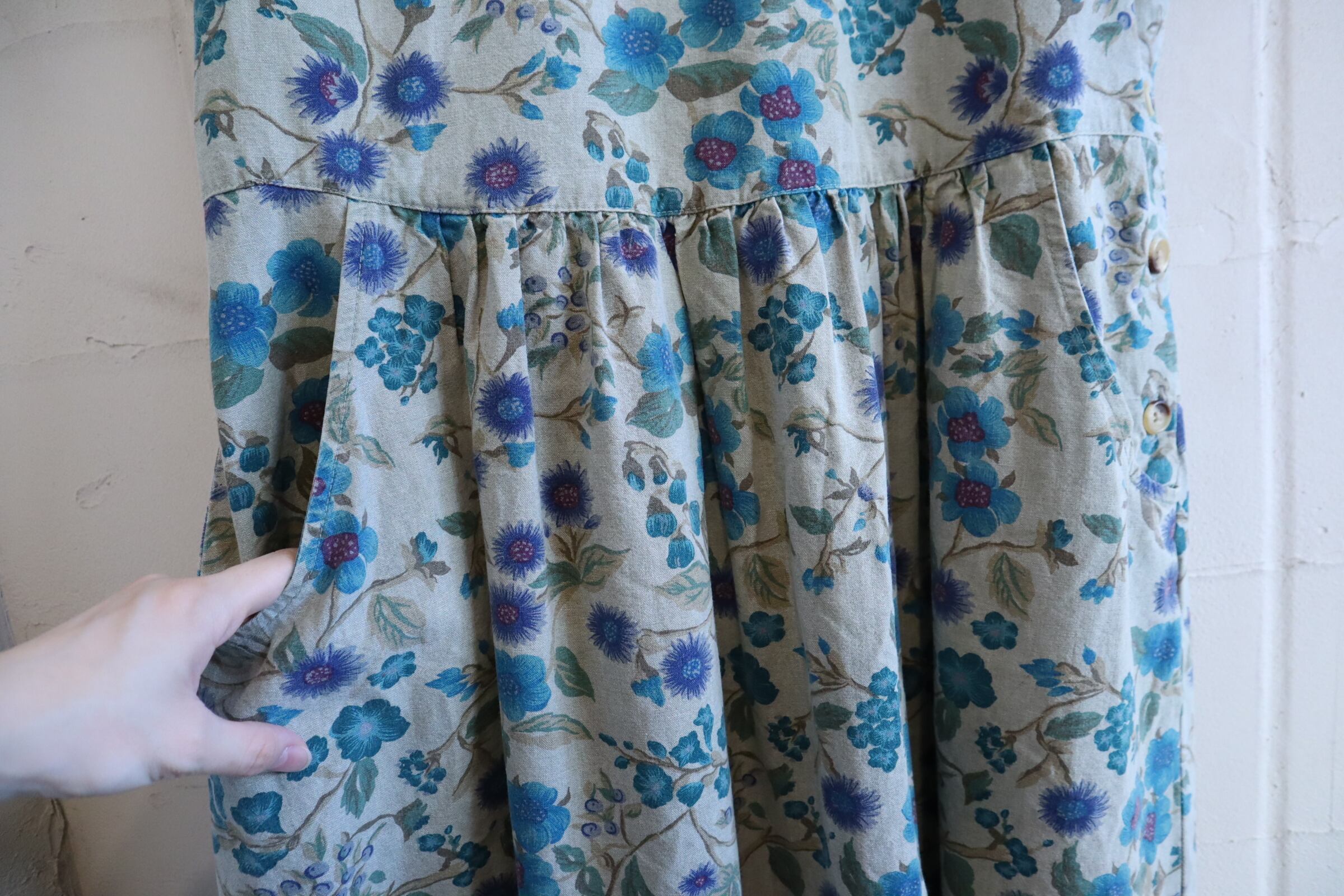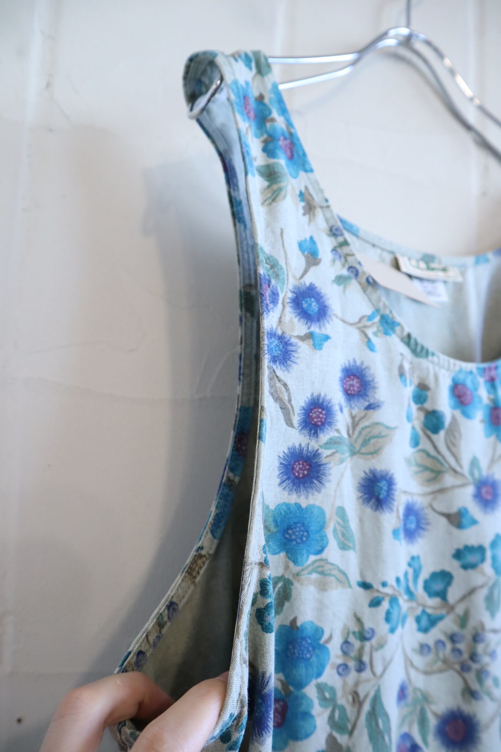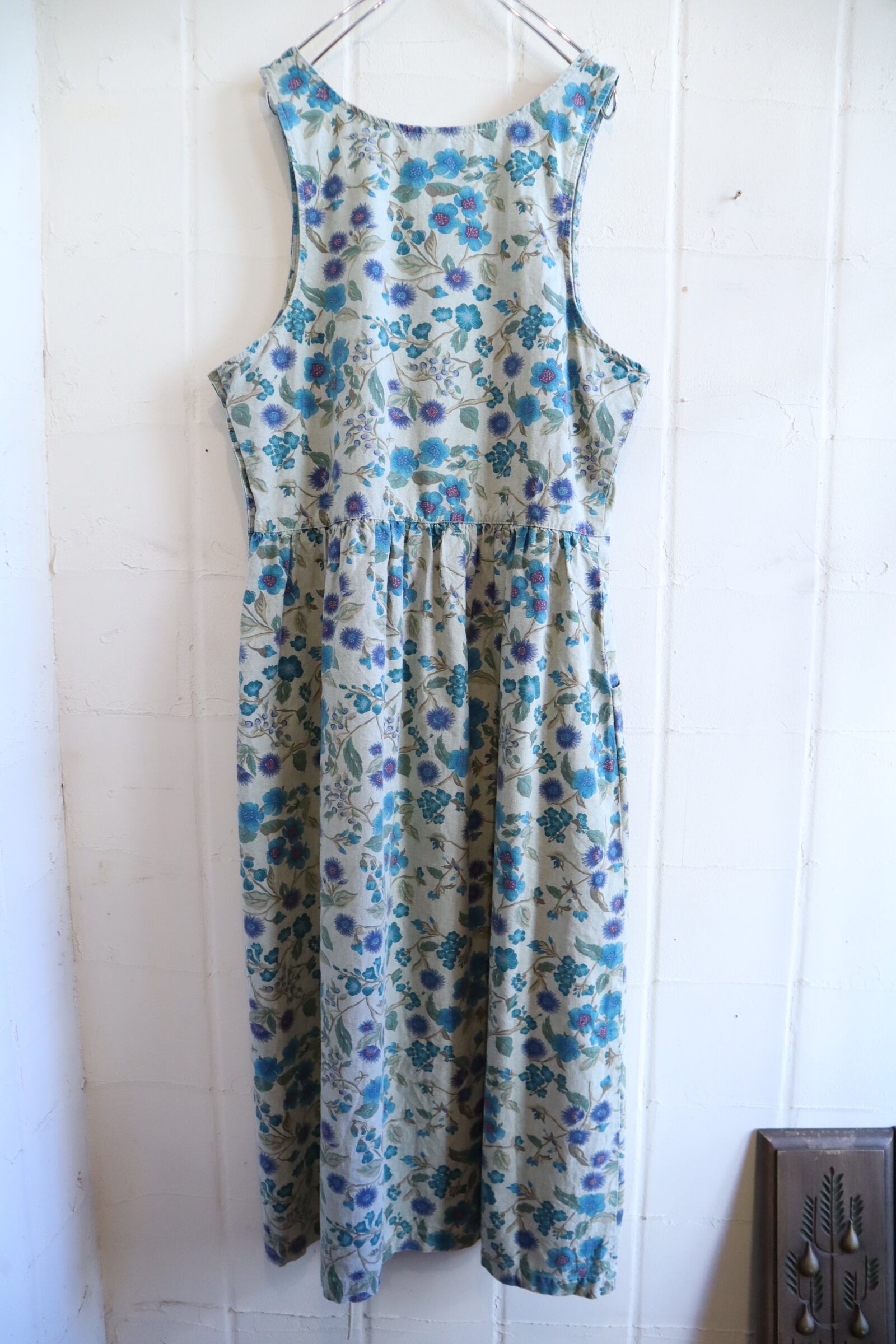 90s L.L.Bean khaki×blue flower pattern sleeveless dress [l-3912]