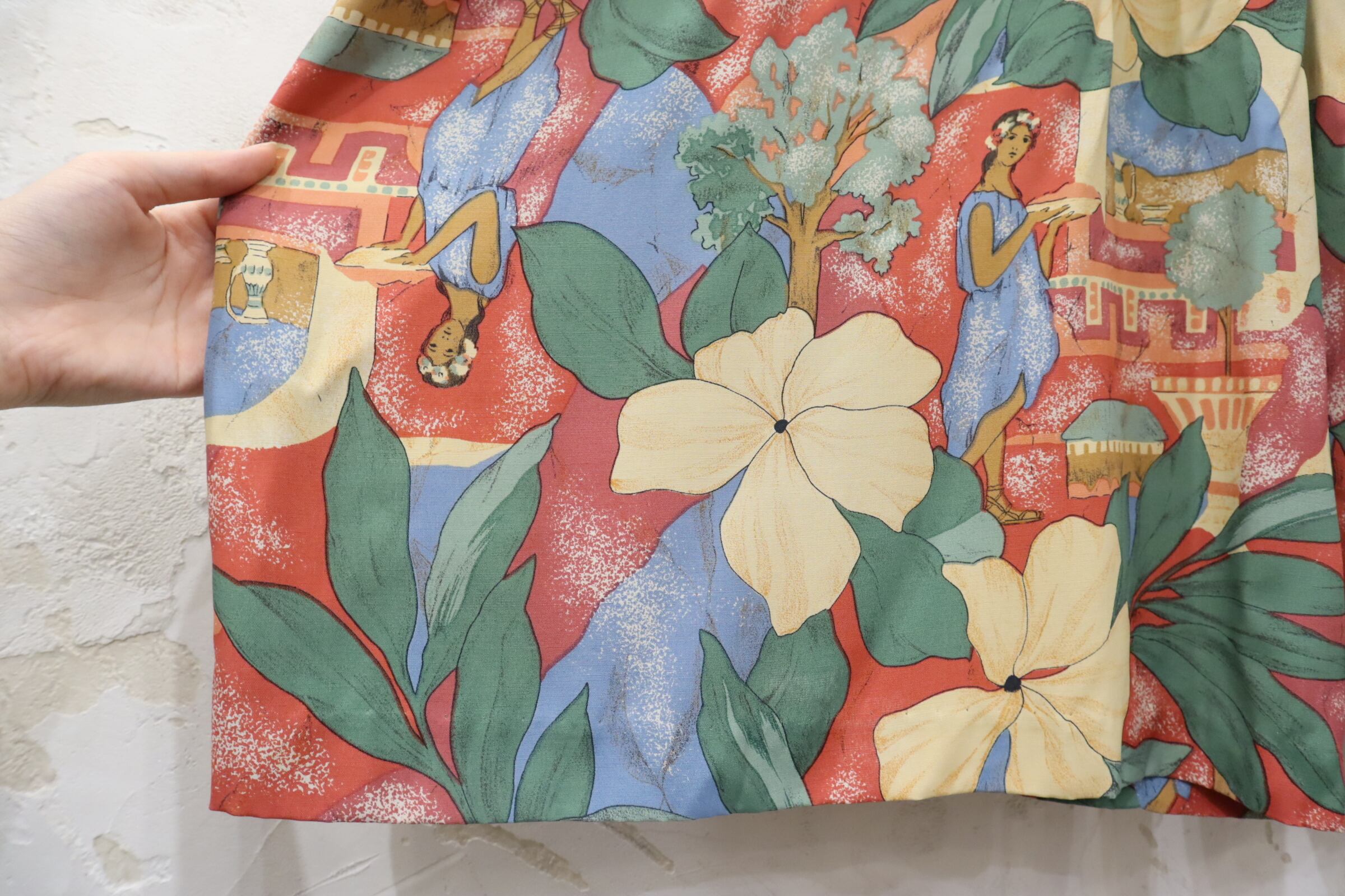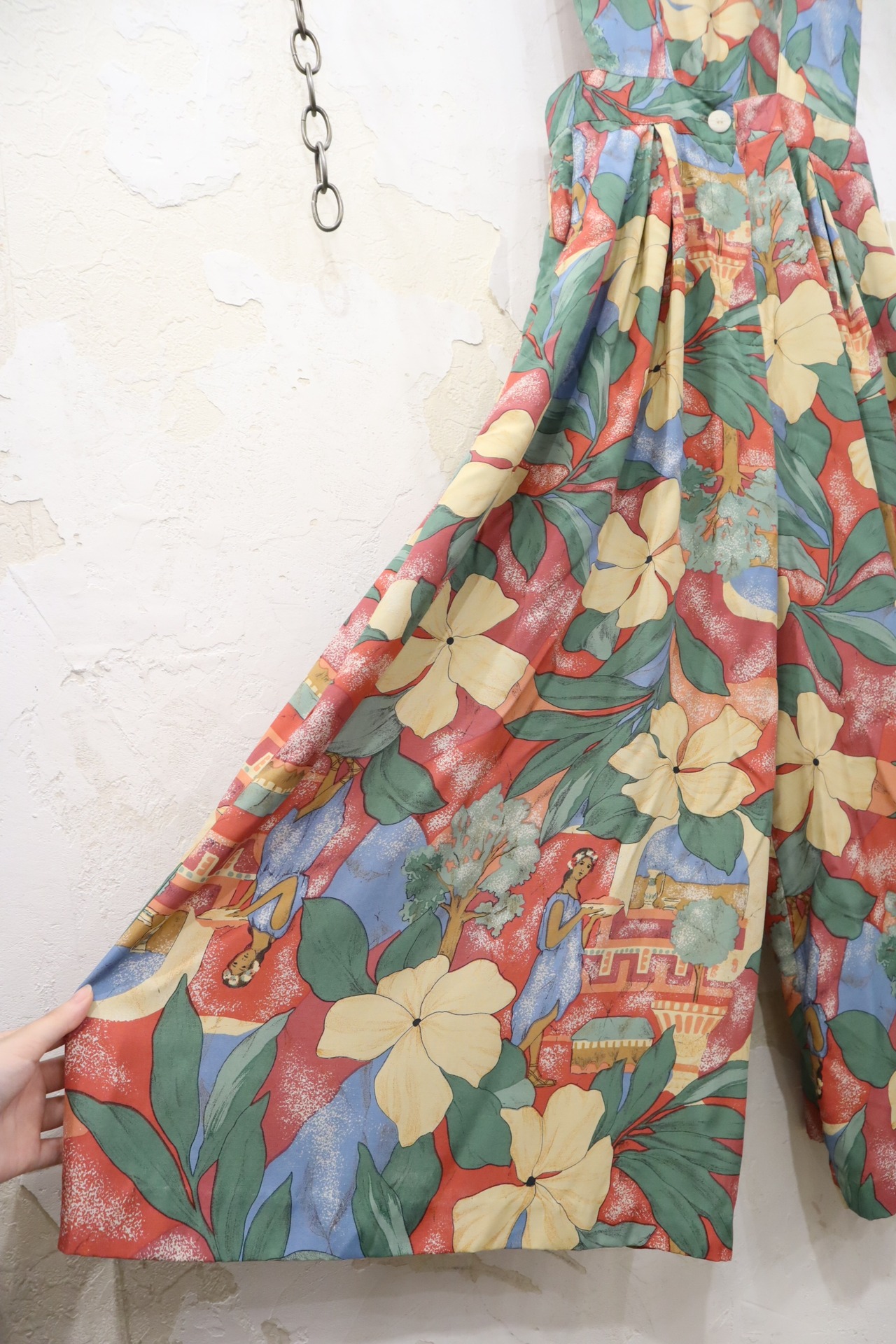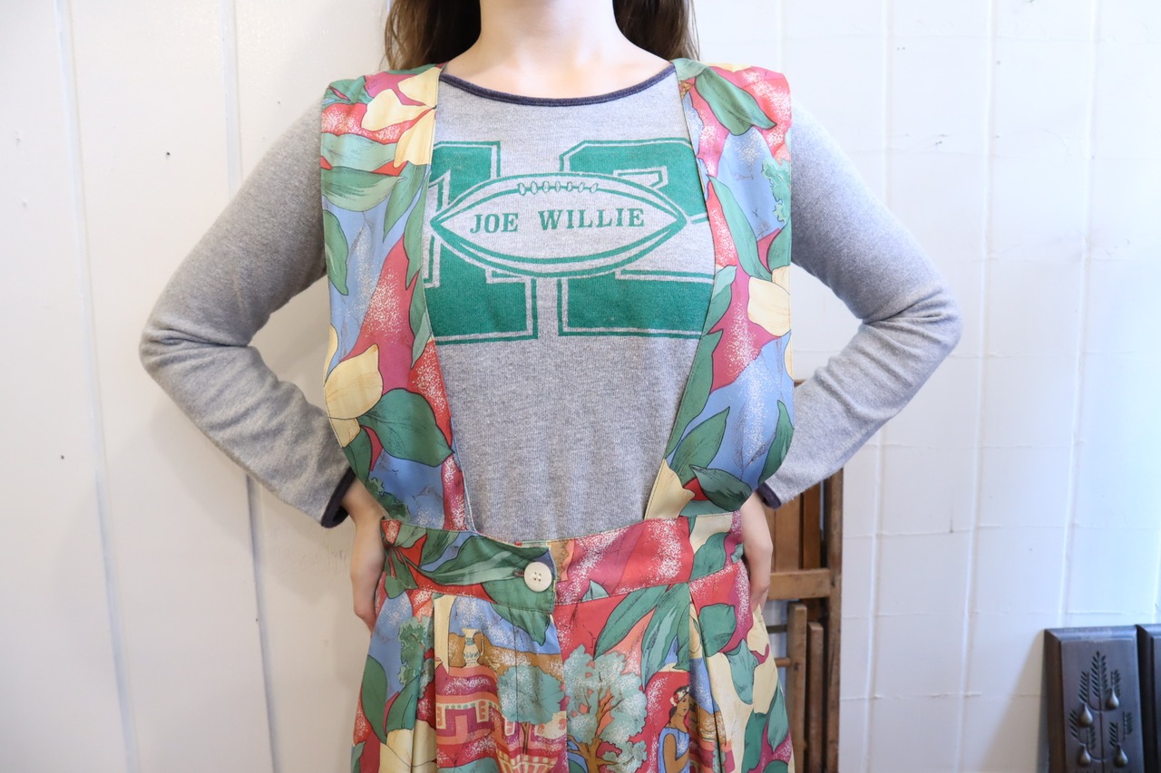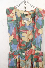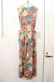 made in USA pink×green×yellow flower pattern rayon all-in-one [l-3916]