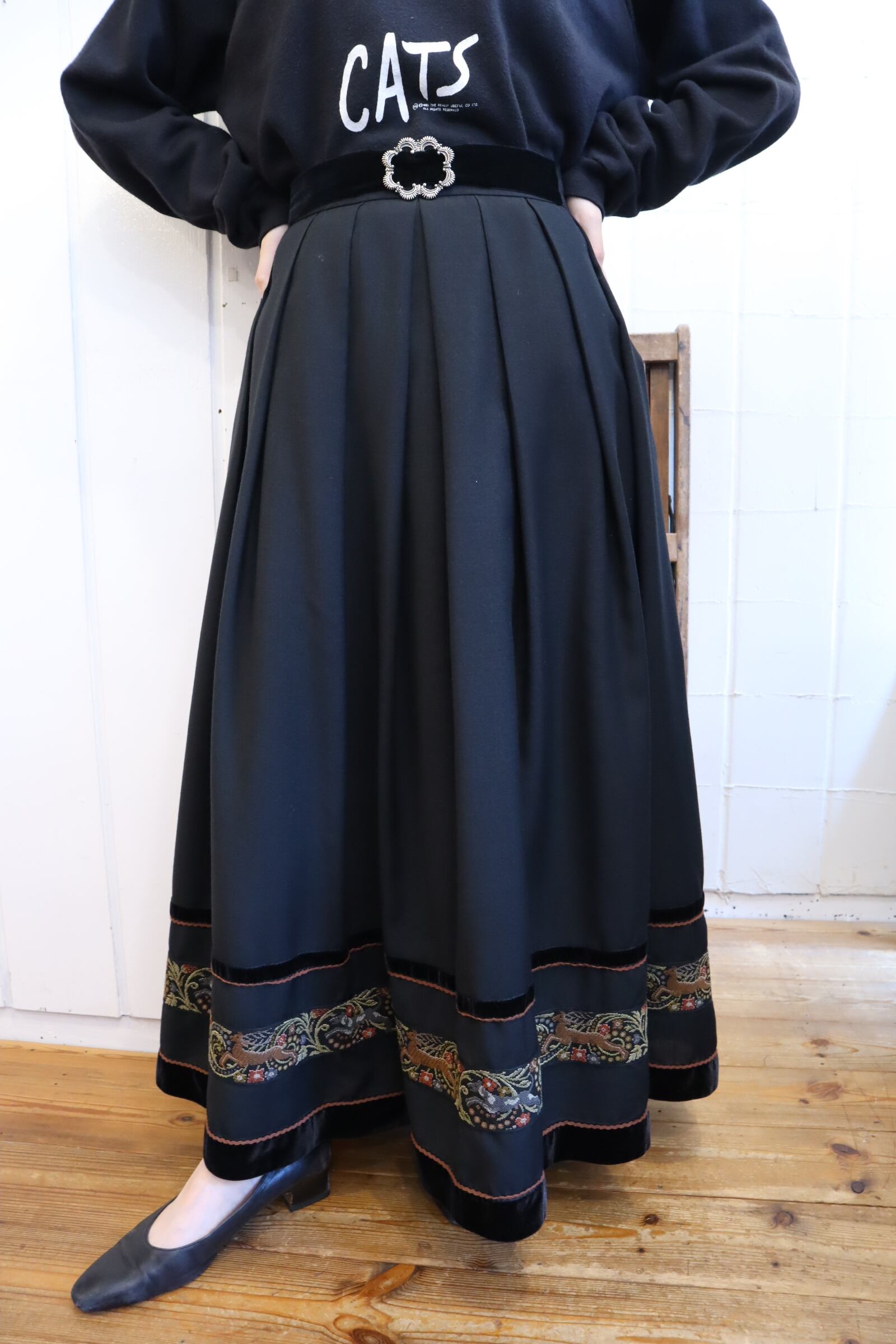 black velour & embroidery tape tyrol skirt [l-3918]