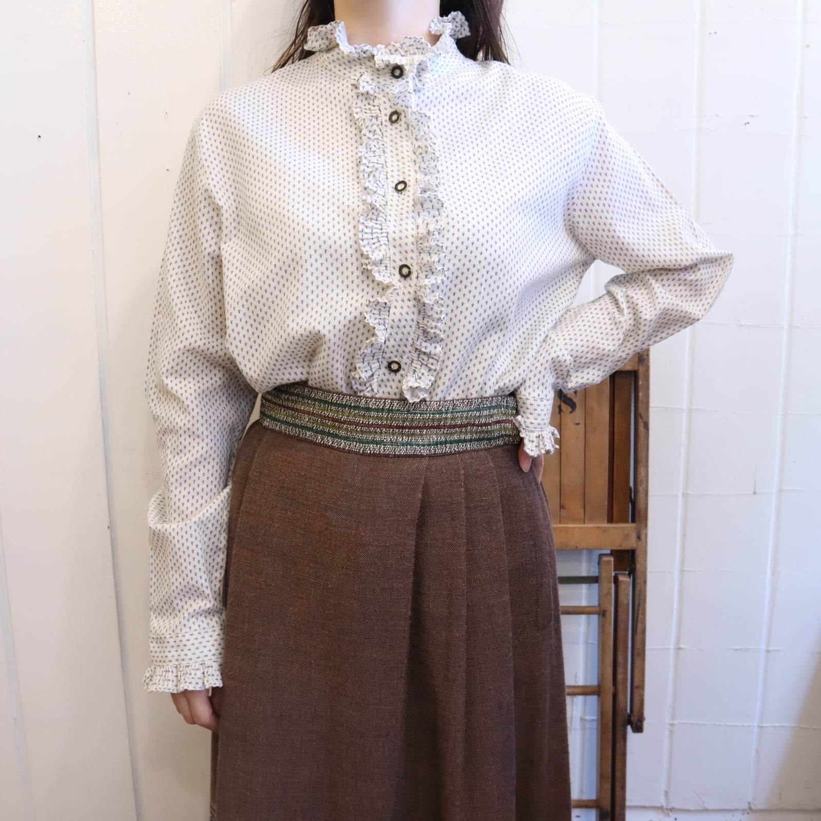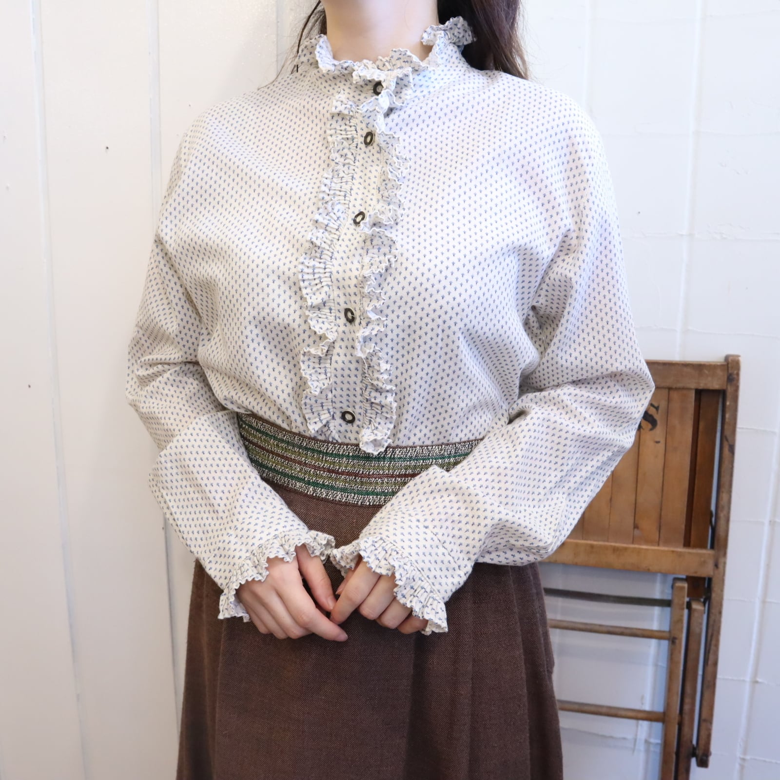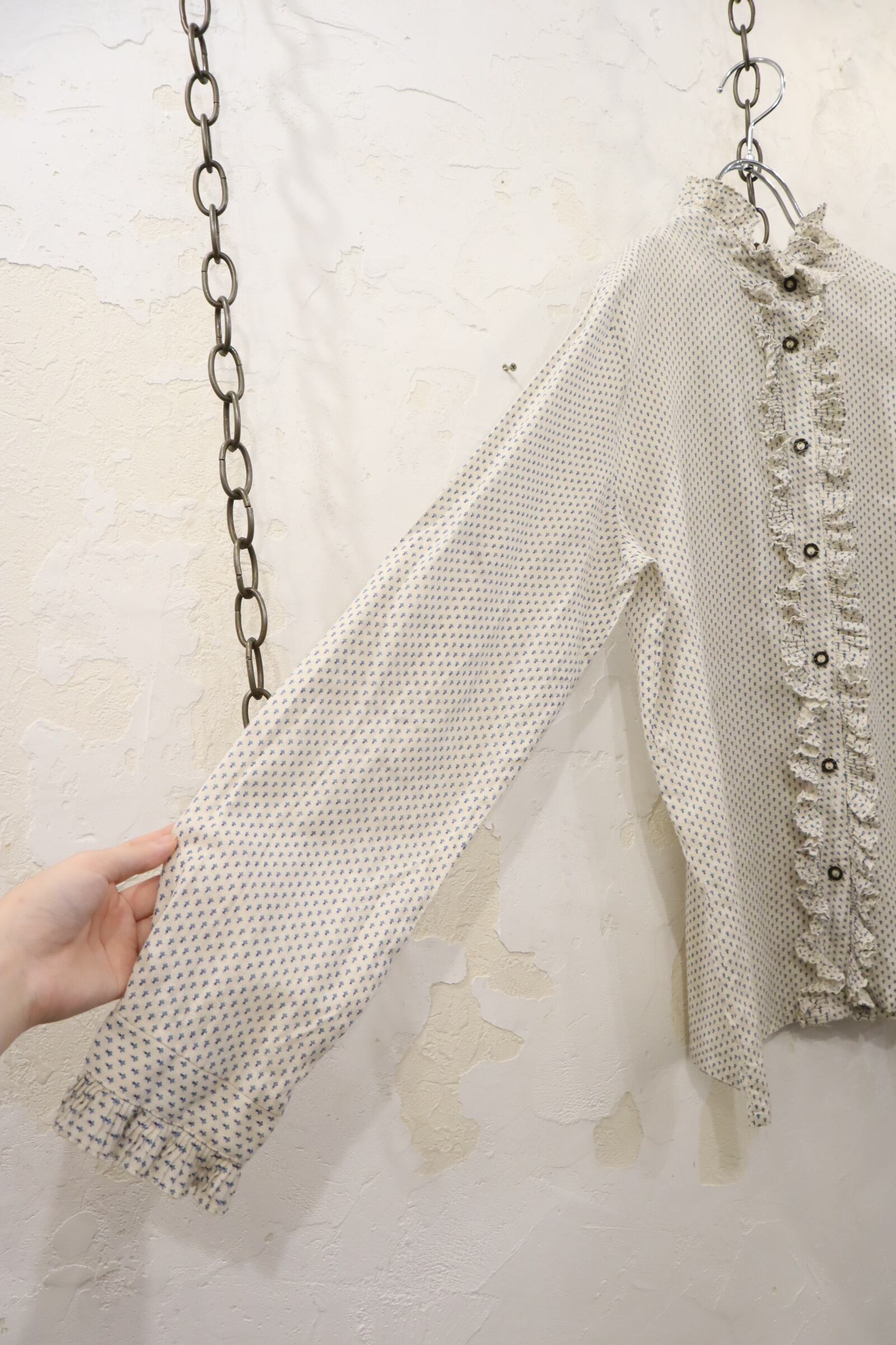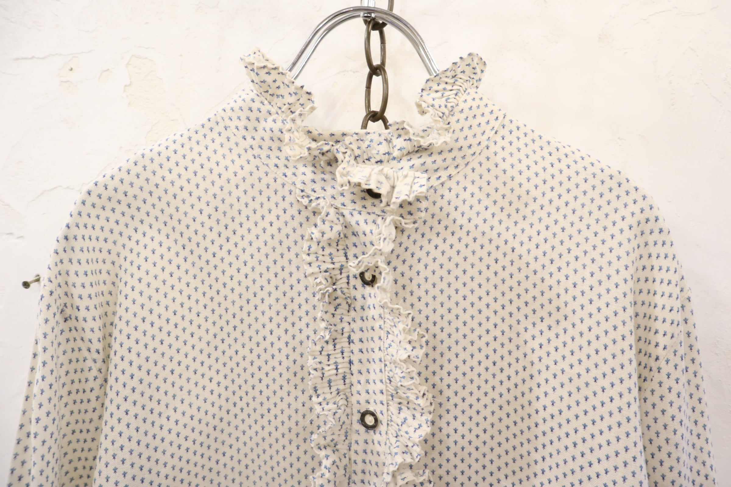 offwhite×blue×navy frill design cotton shirt [l-3924]