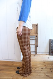 ブラウンベースのチェックも可愛く、ハーフパンツを重ねたり、スカートの下に合わせたりしても可愛く着られそうです◎