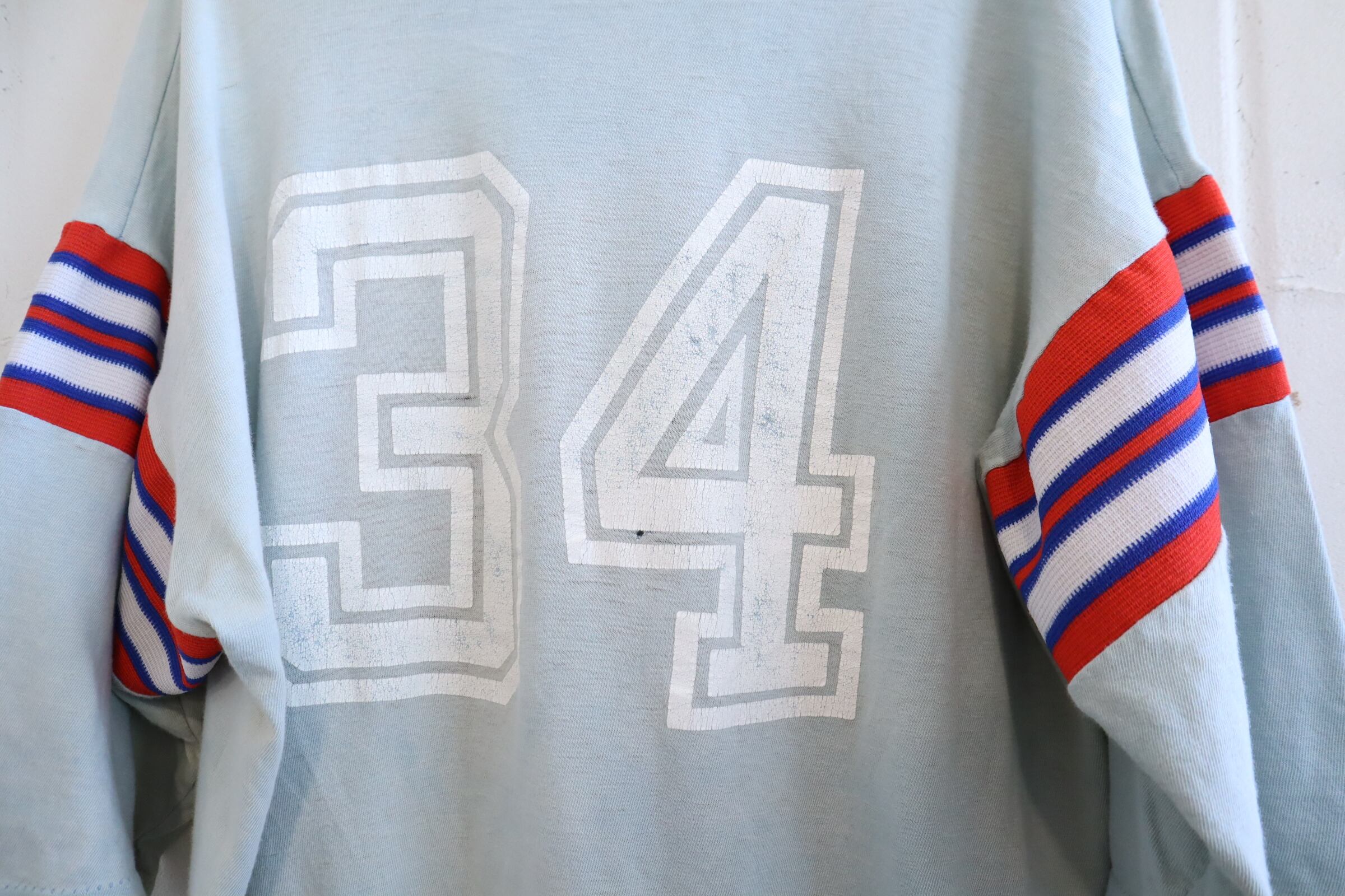 70s-80s lightblue×white×red numbering football T-shirt [l-3955]