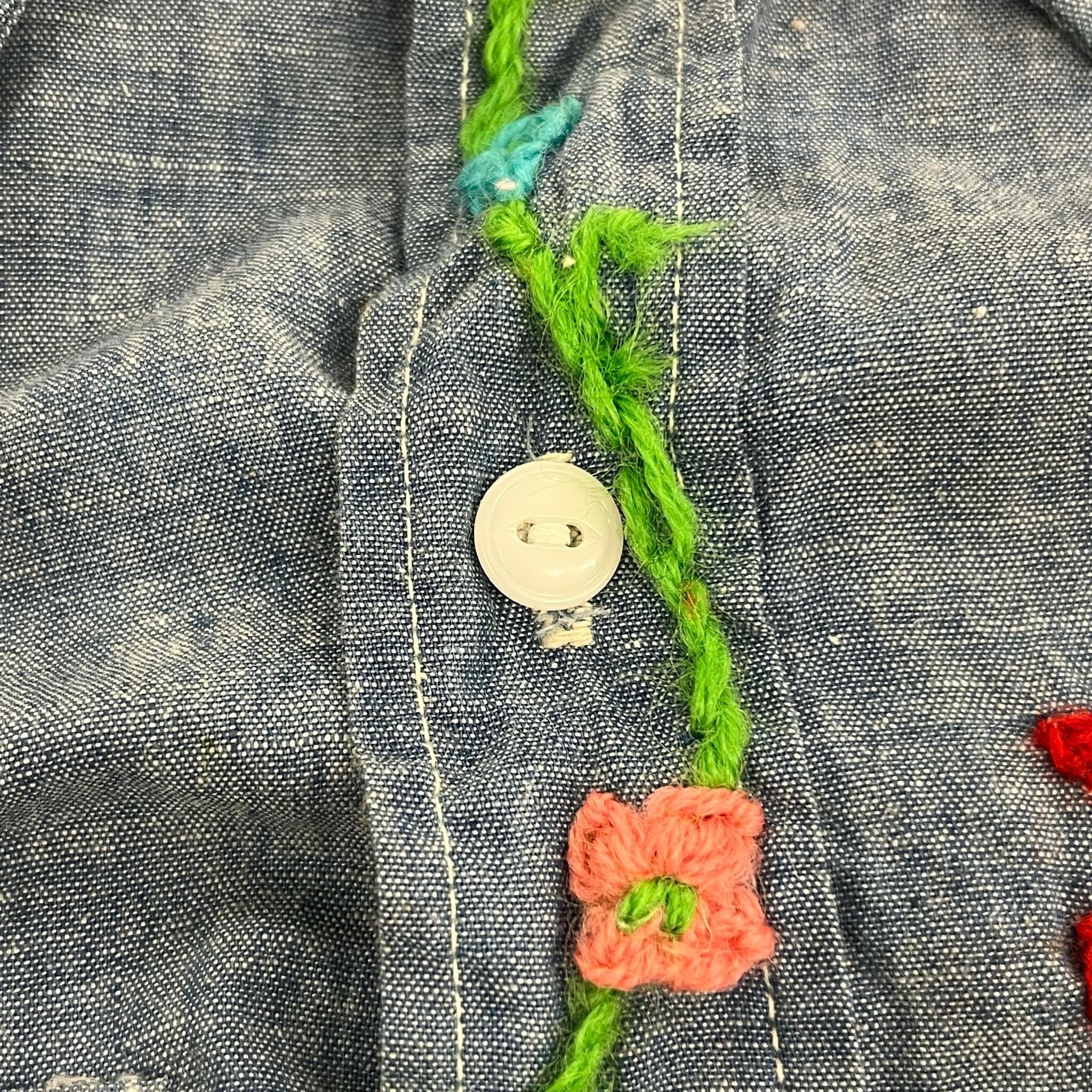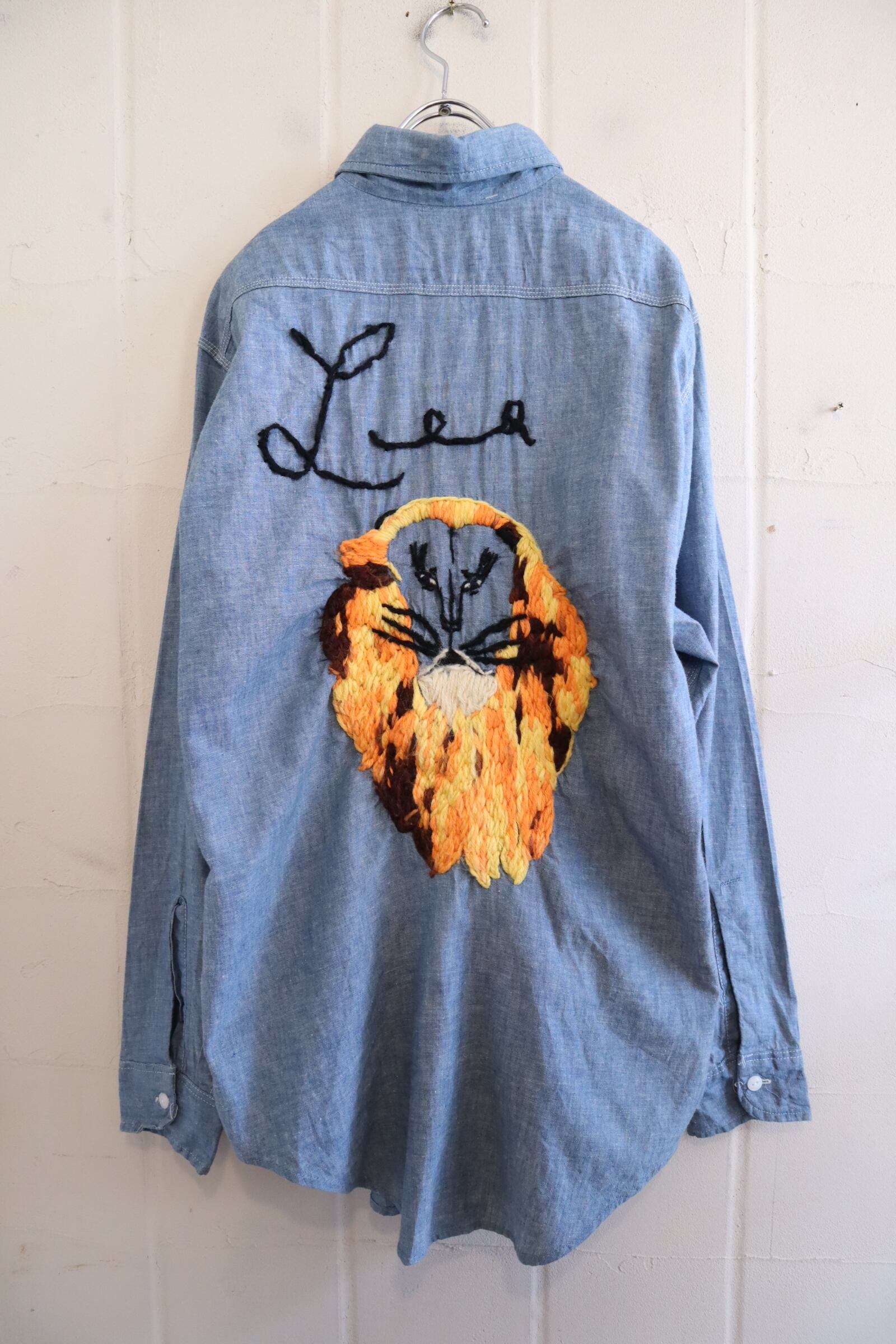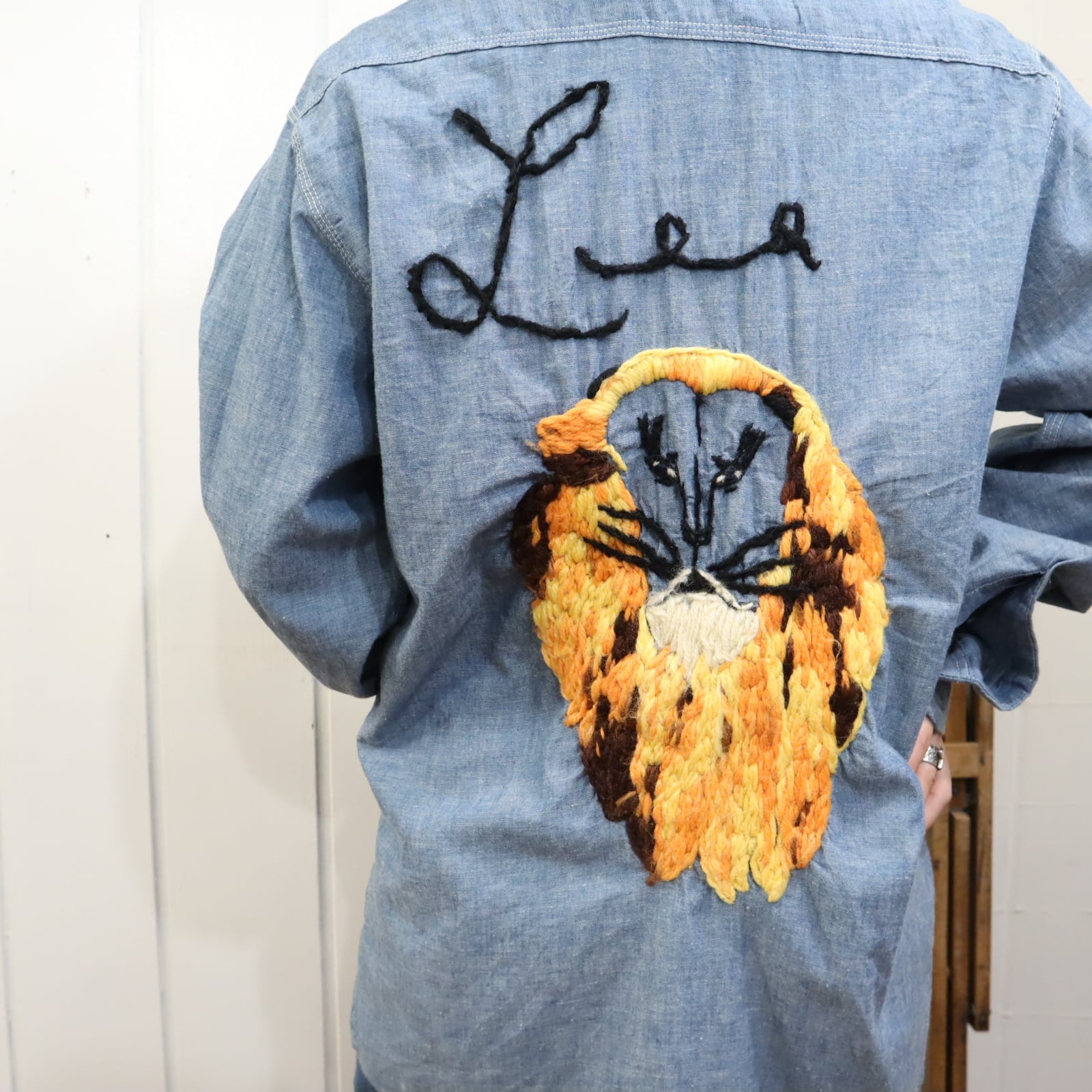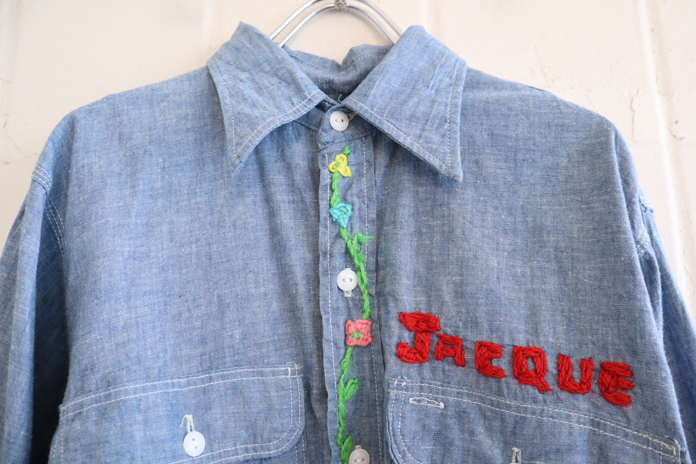 70s BIG MAC blue×colorful embroidery chambray shirt [l-3958]