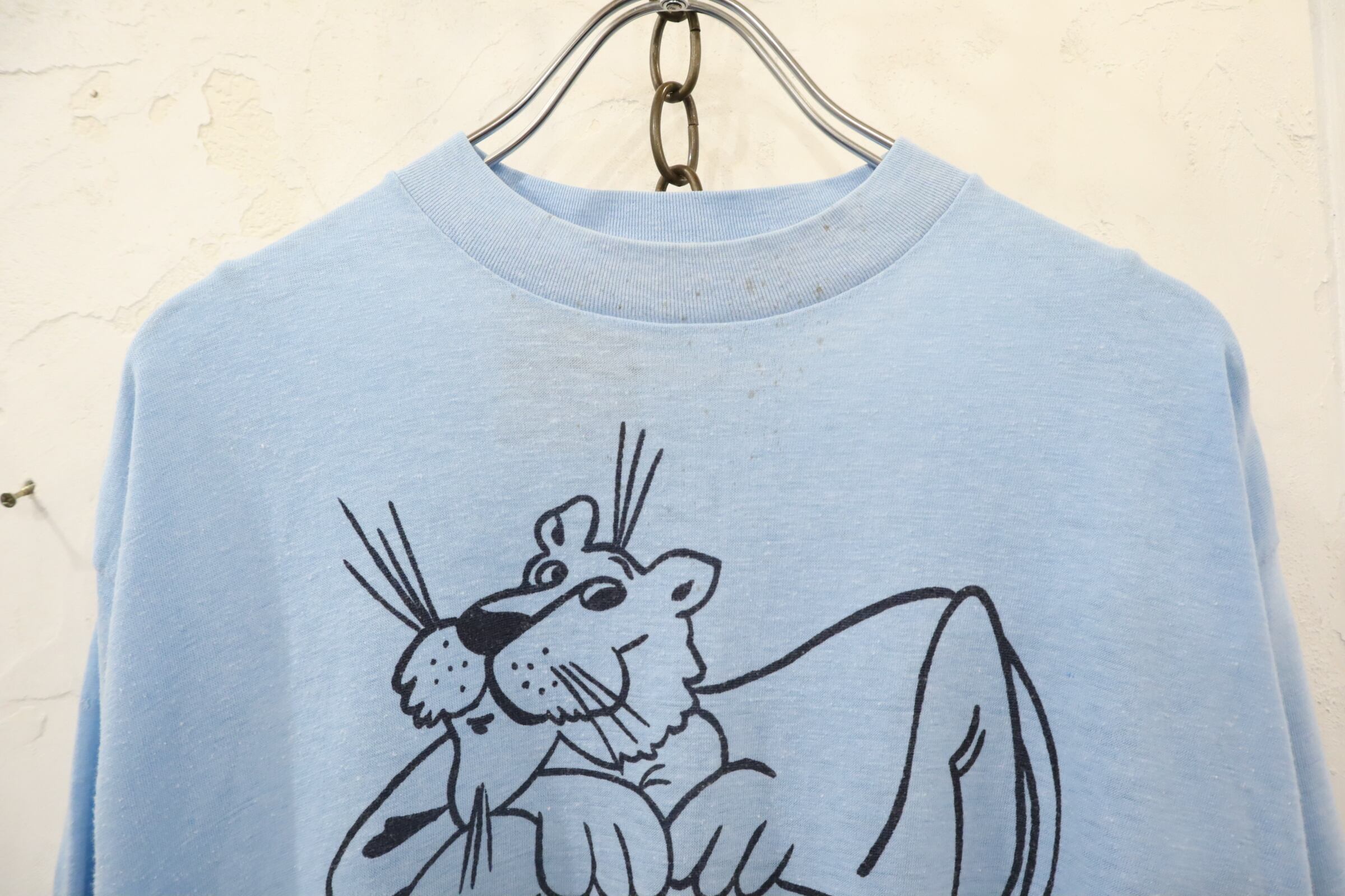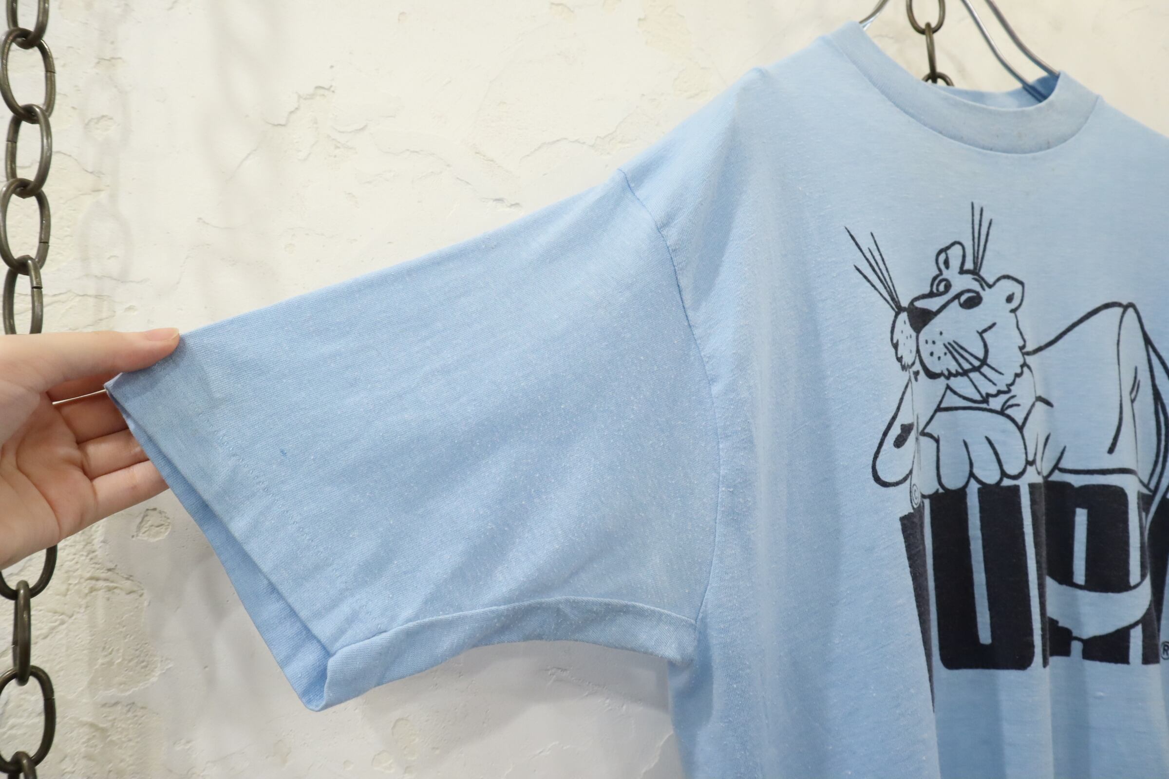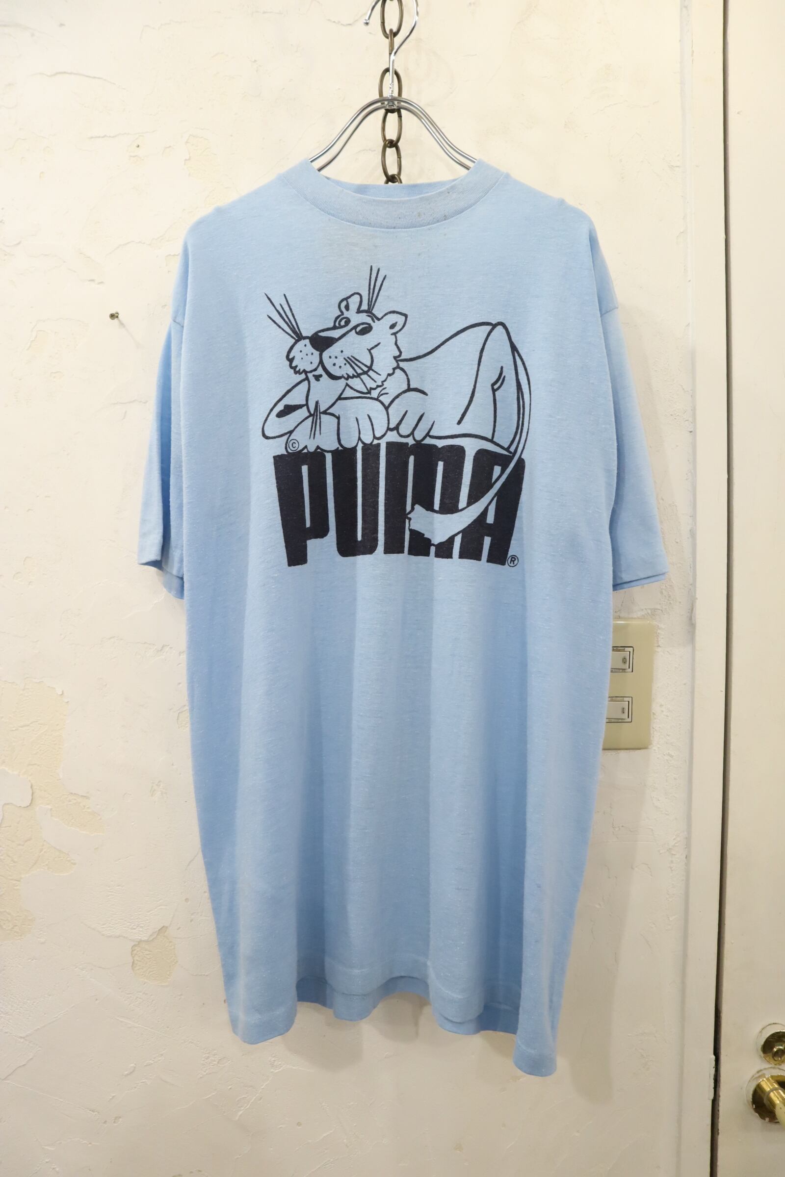 80s lightblue×black old PUMA print T-shirt [k-3960]