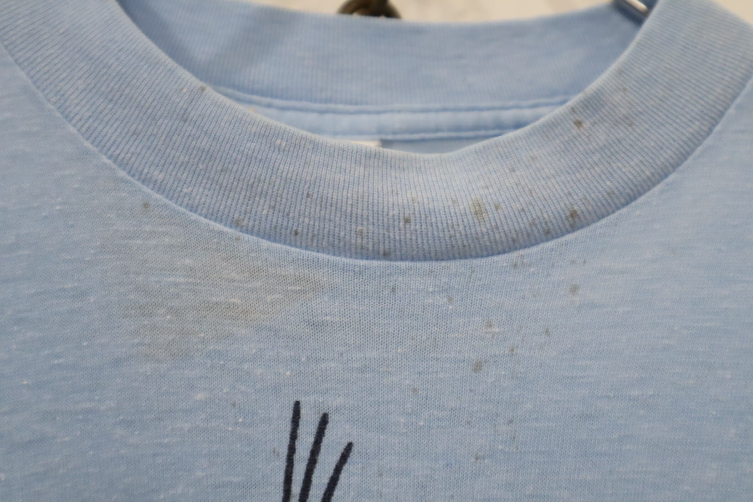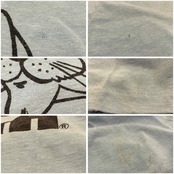 いくつかシミ汚れや汚れ、全体的に生地の毛羽立ち、小穴が見受けられますが、古着の味として着て頂けるかと思います。