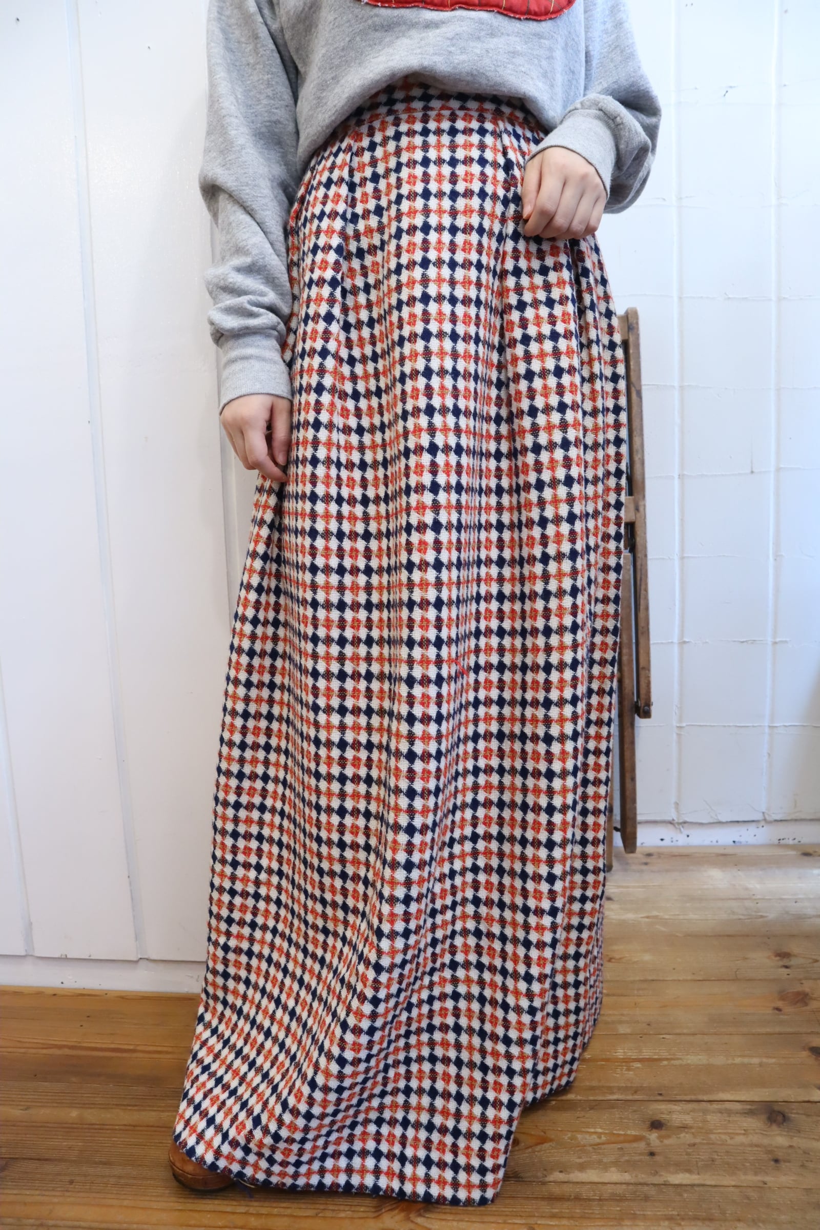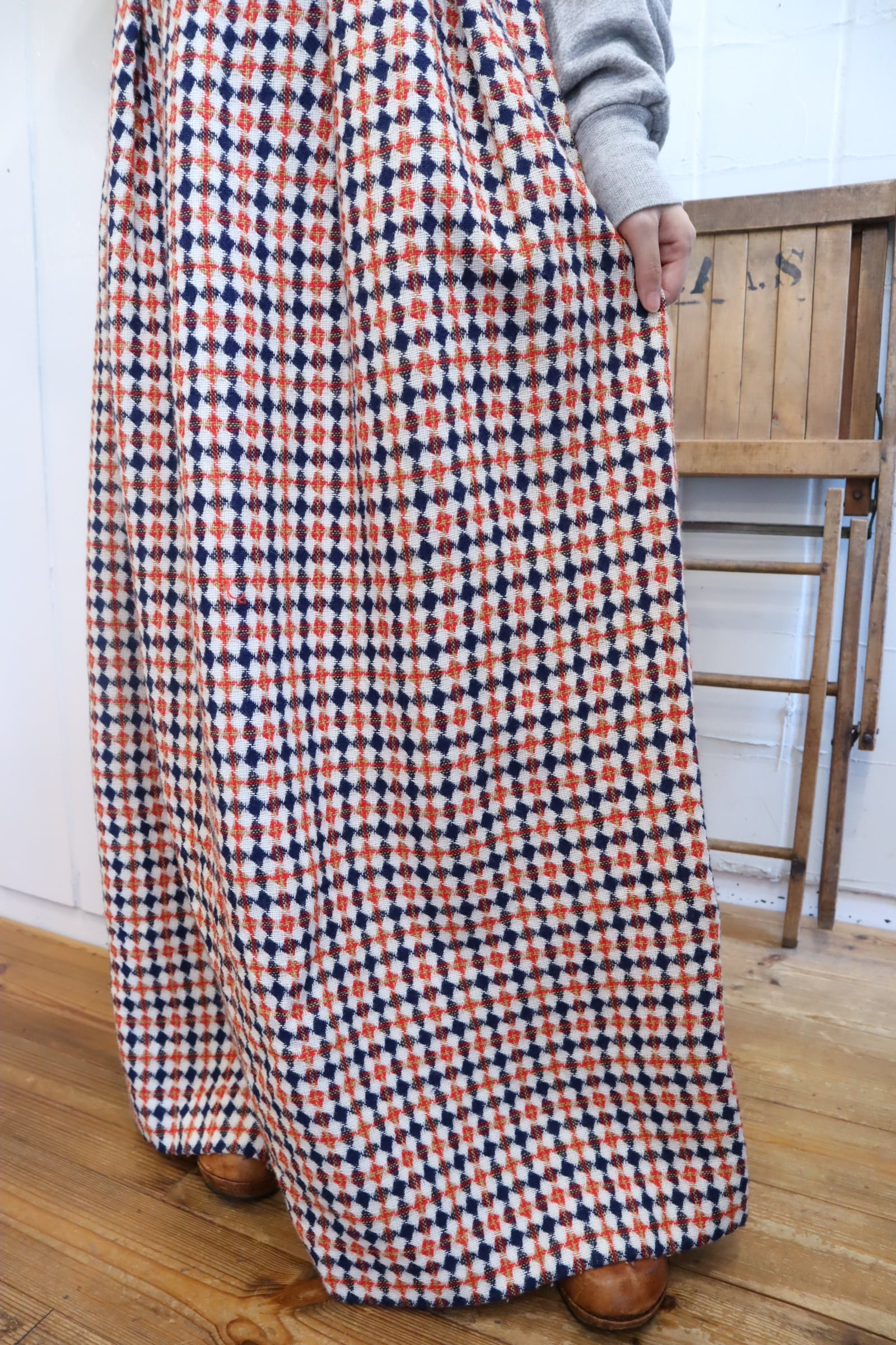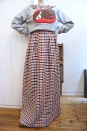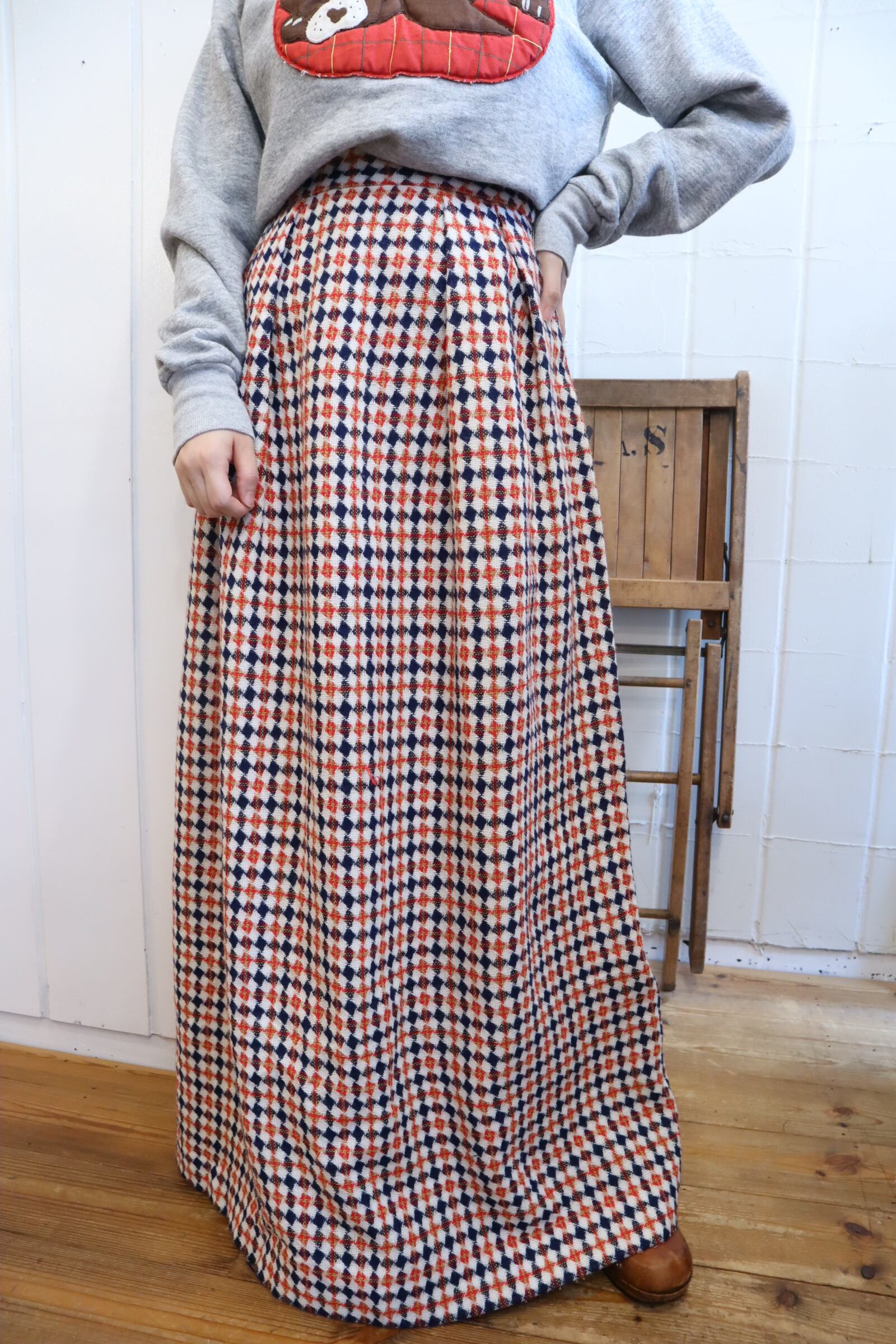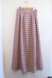 70s navy×red diamond plaid long skirt [l-3965]