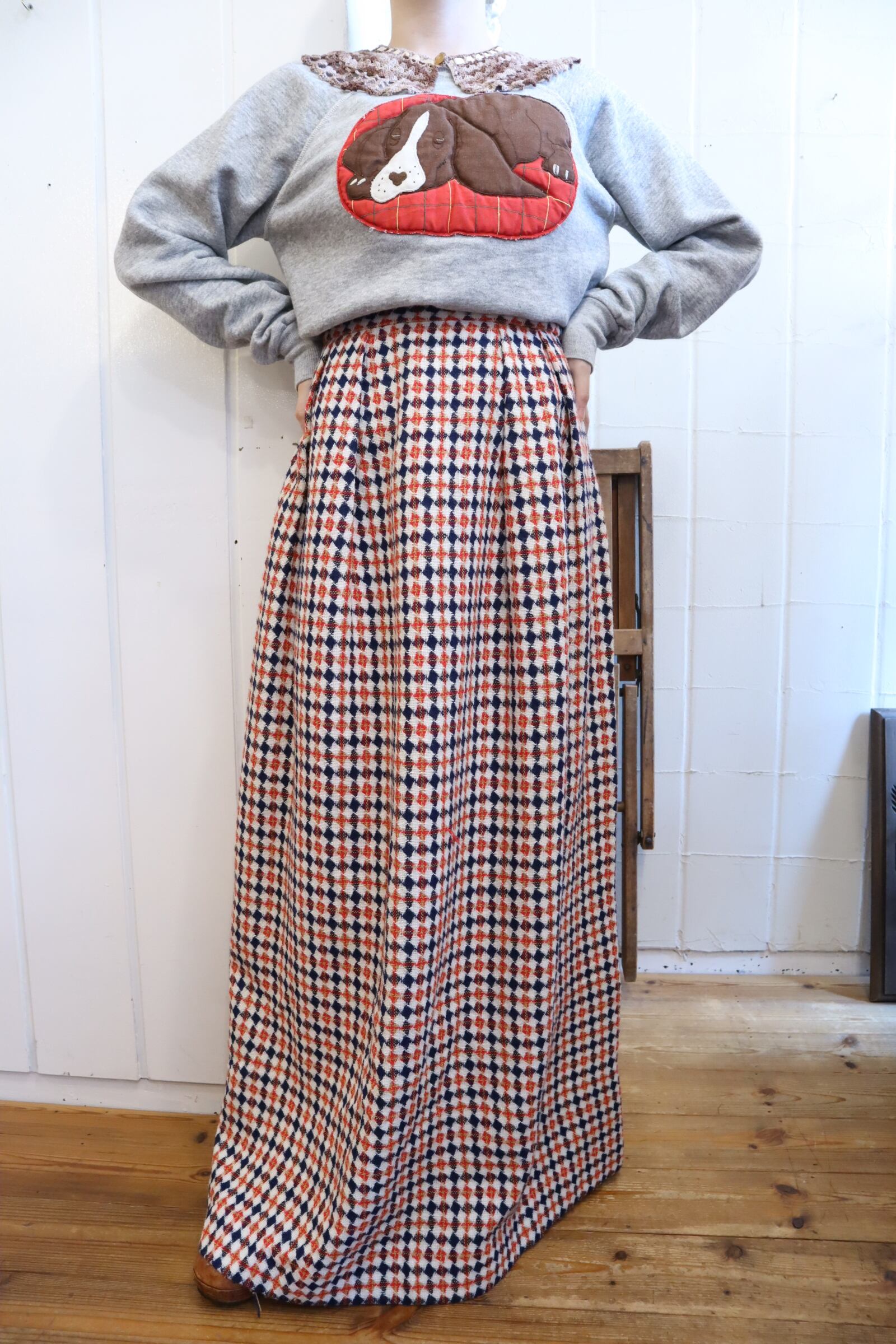 ネイビー×レッドと、間違いない可愛さのカラーリングが魅力的な70sスカート♡