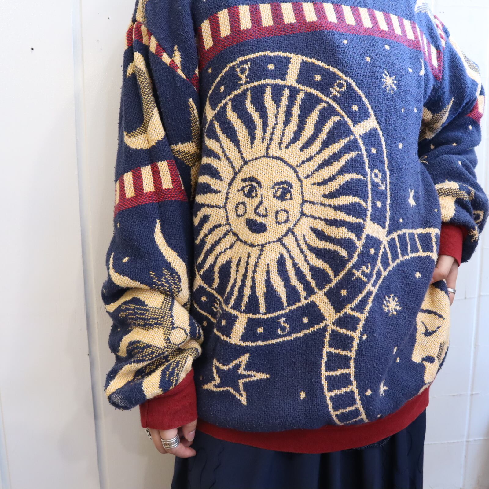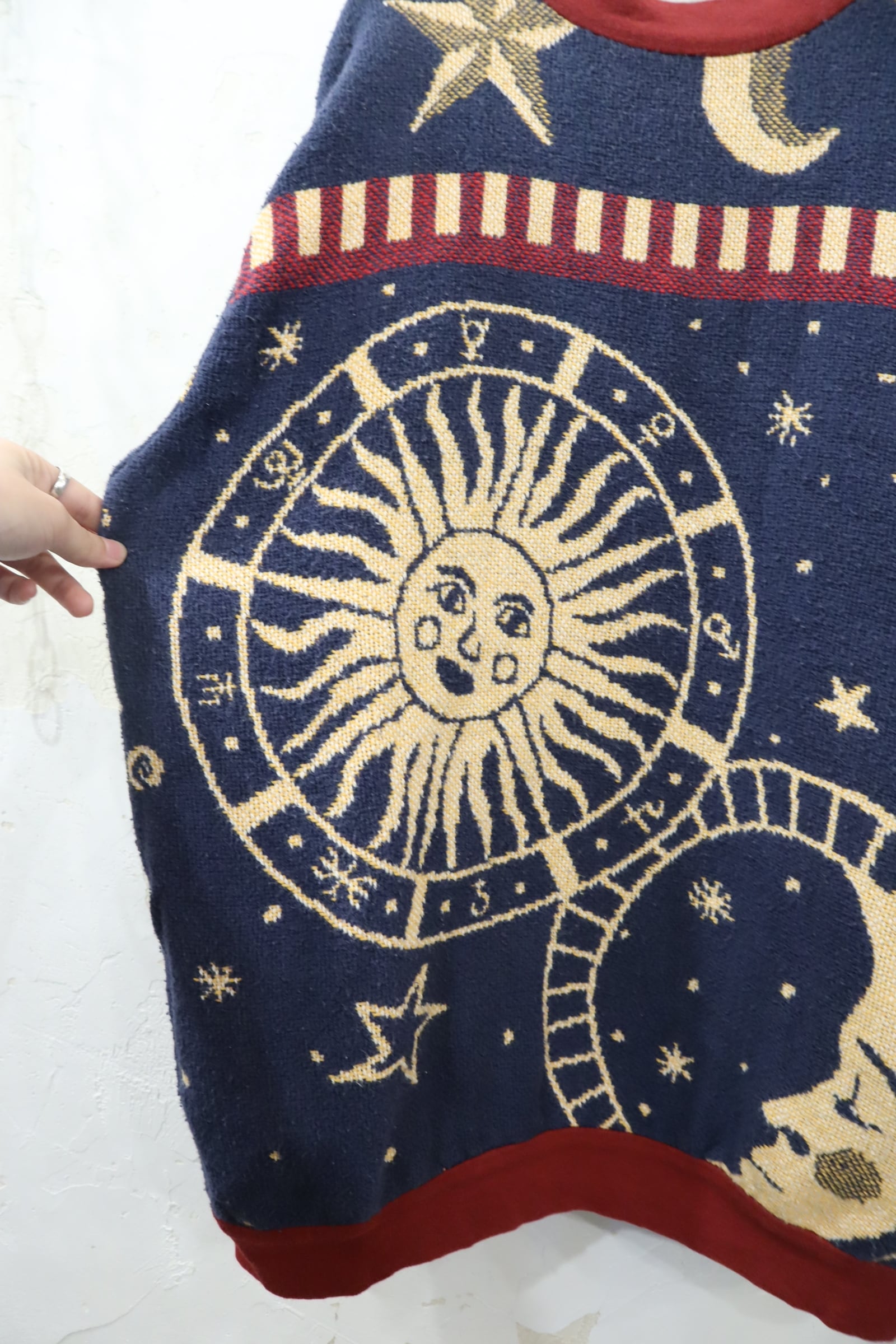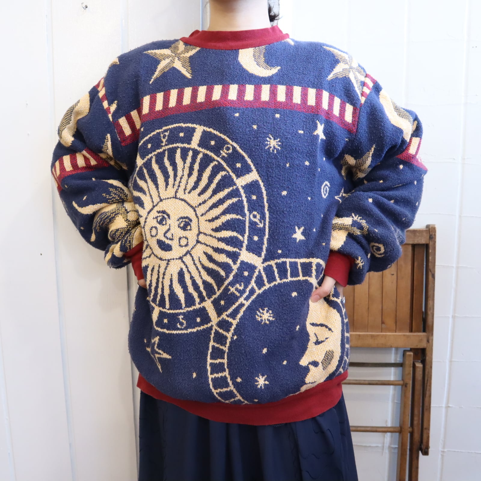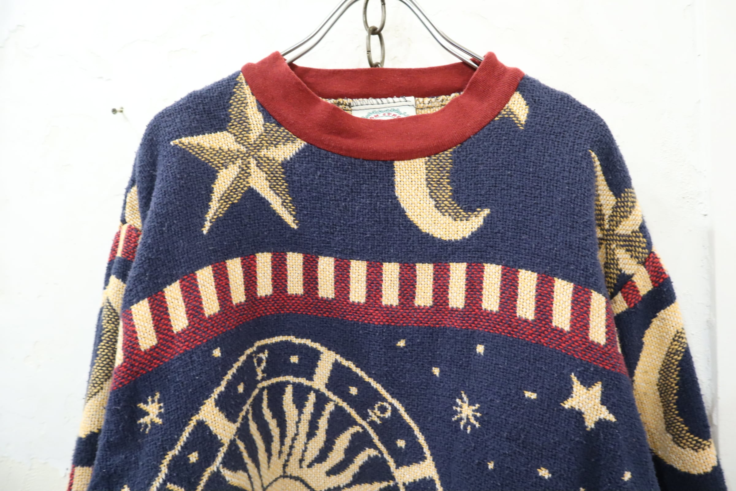 made in USA blue×red×yellow Gobelin pullover tops [l-3967]