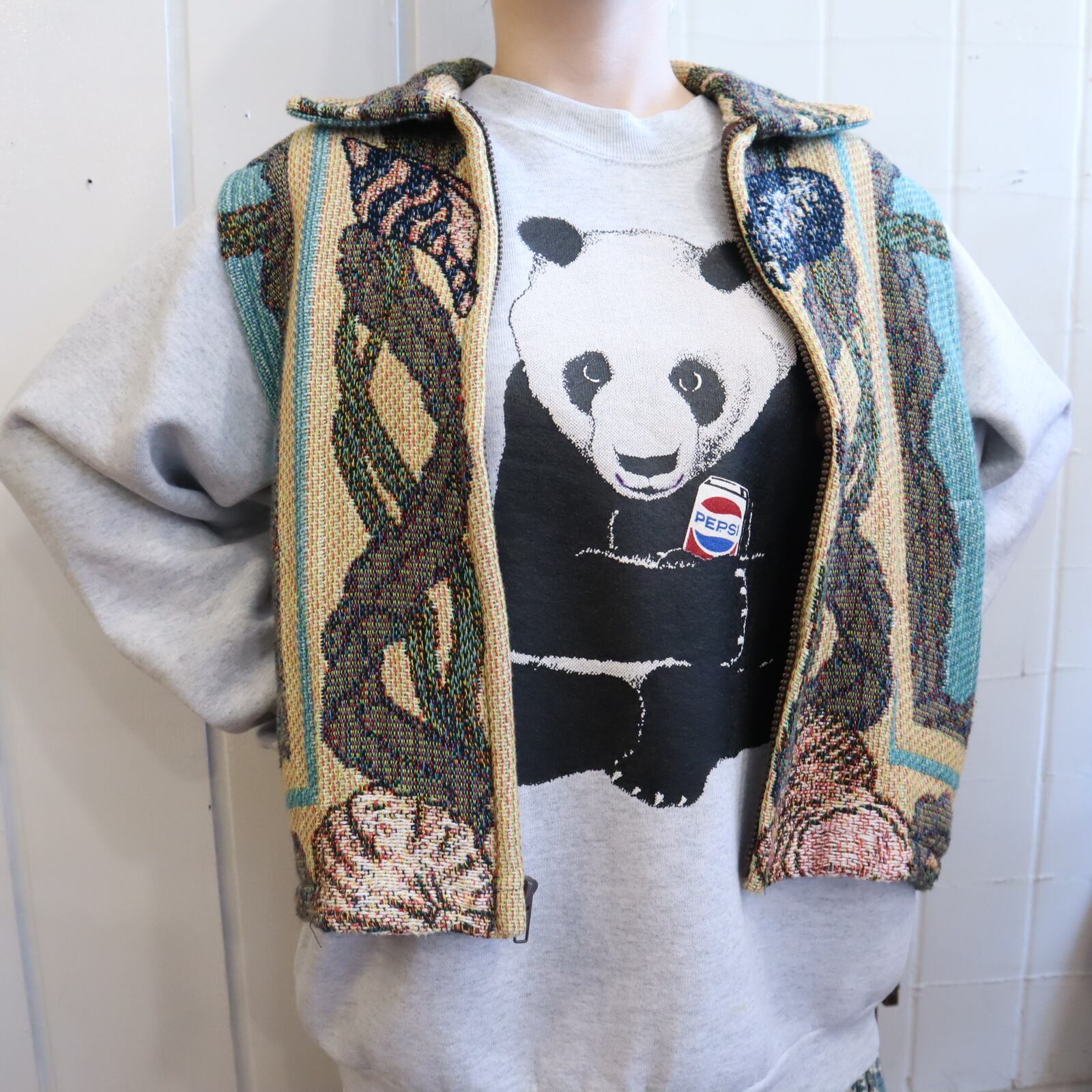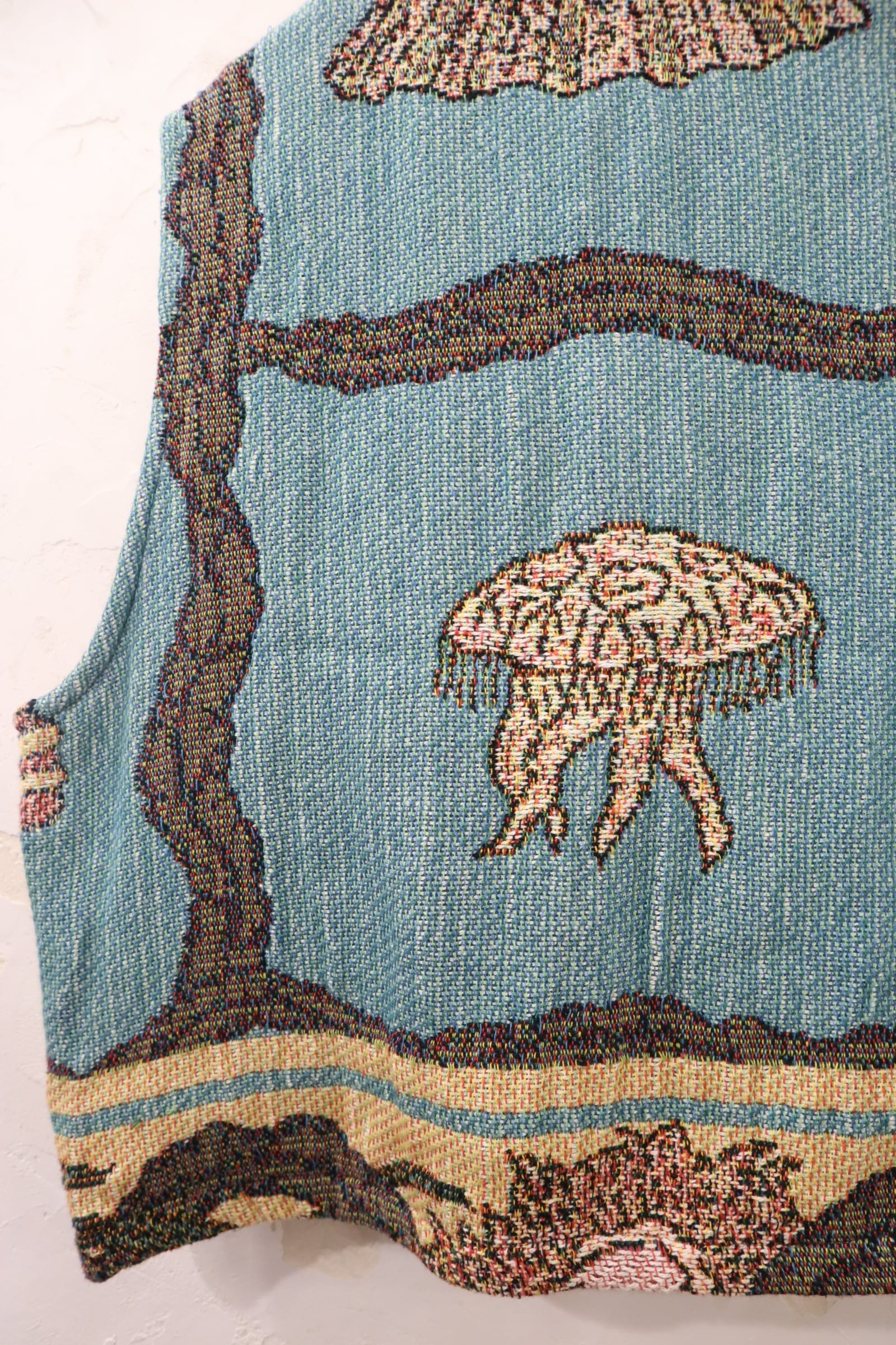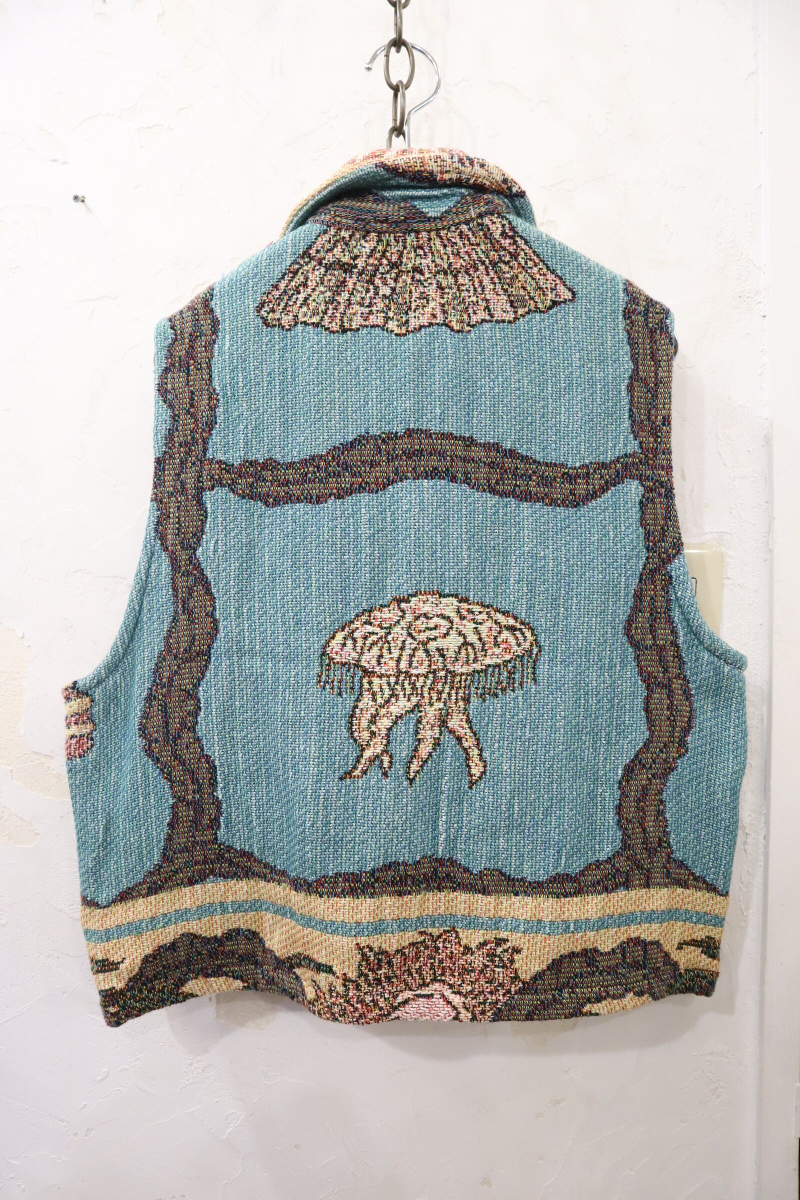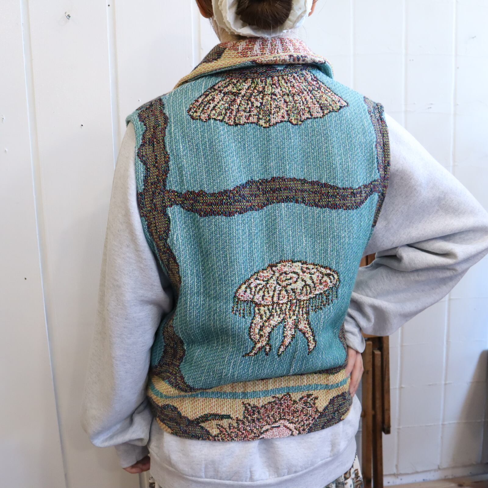 bluegreen×yellow Gobelin fullzip short vest [l-3968]