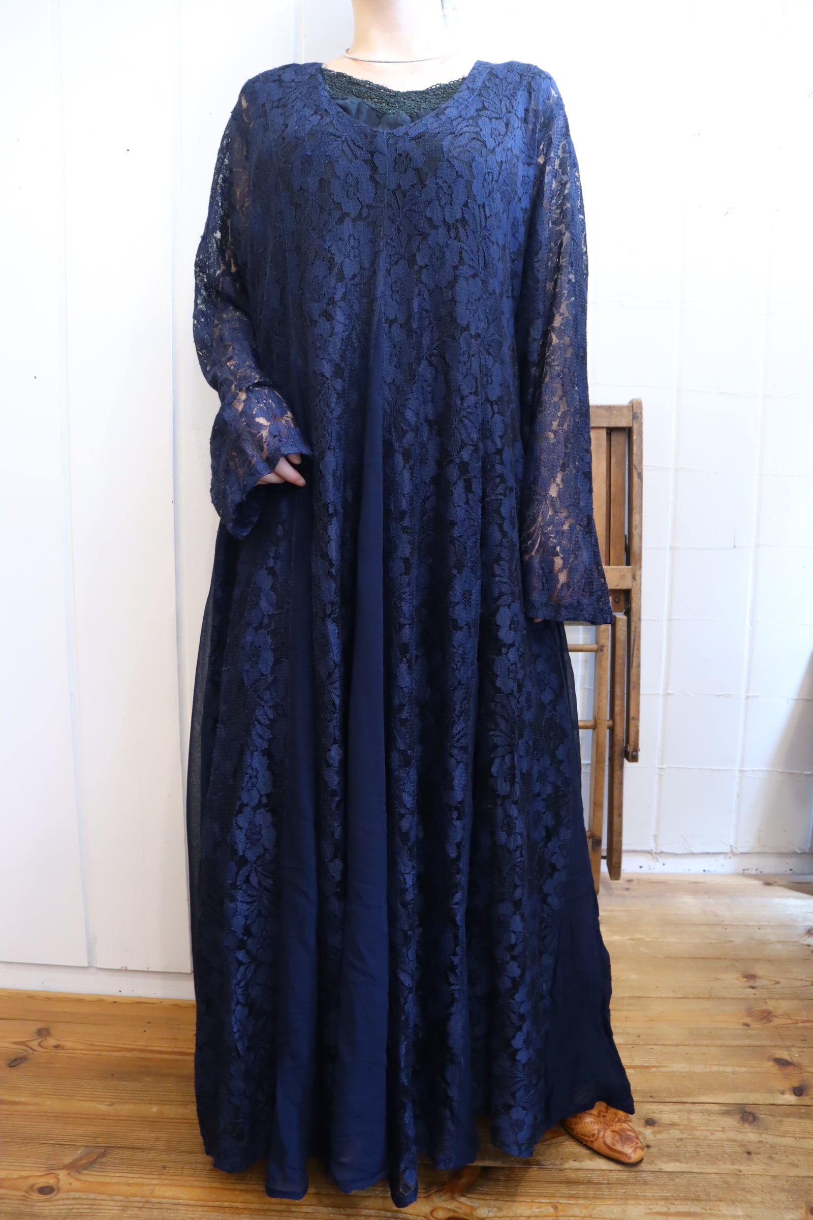 ゆったり着こなせ着心地も良いインドレーヨンの総レースドレス。