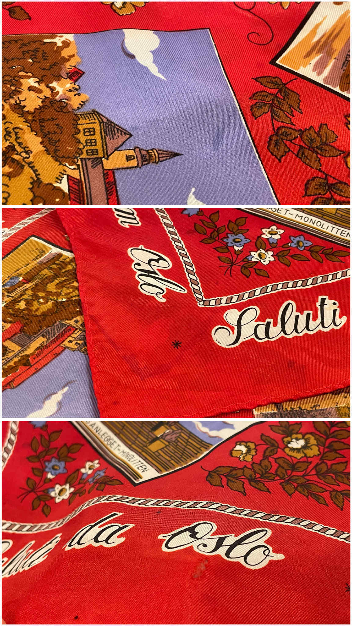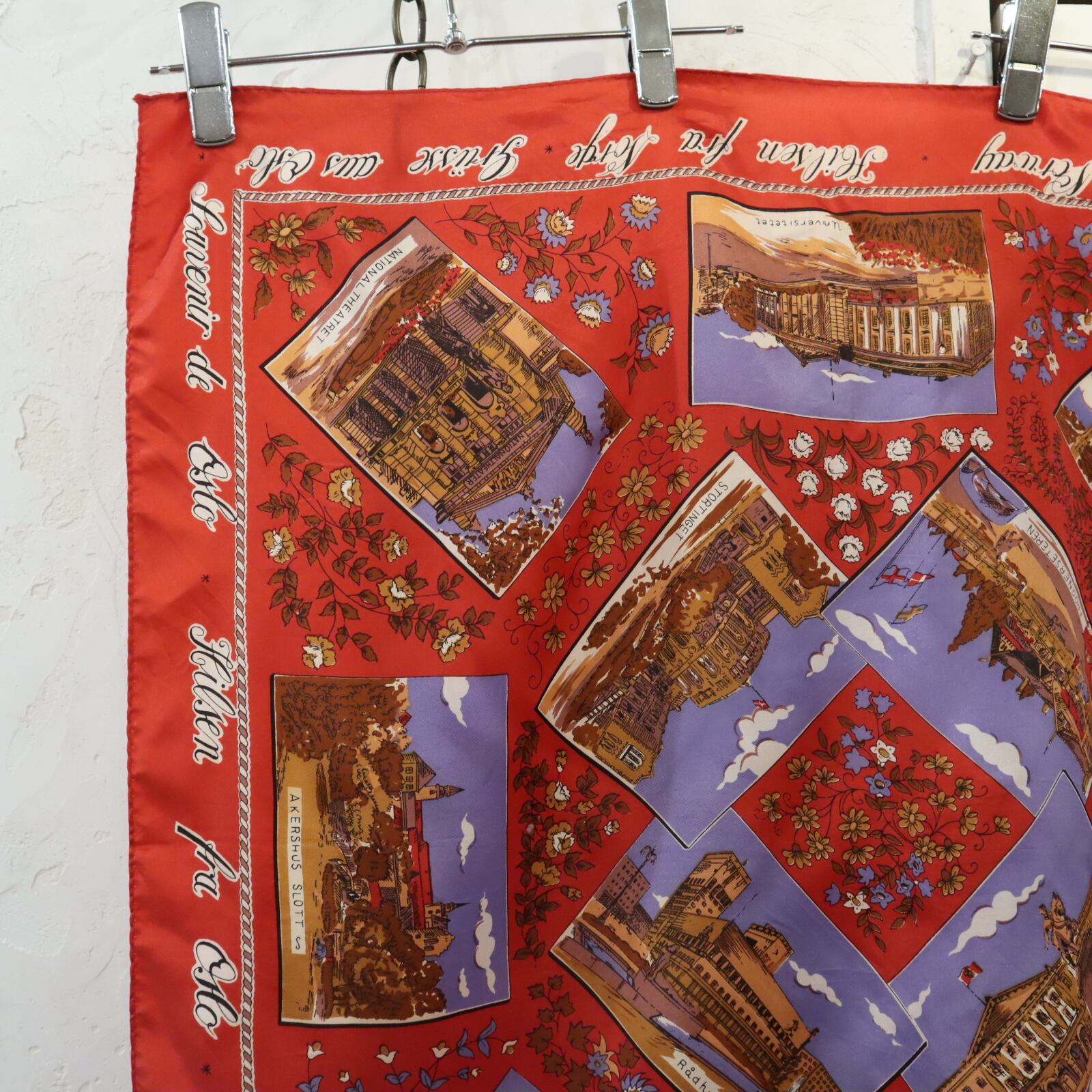 red×blue×brown flower&landscape pattern scarf [l-3983]