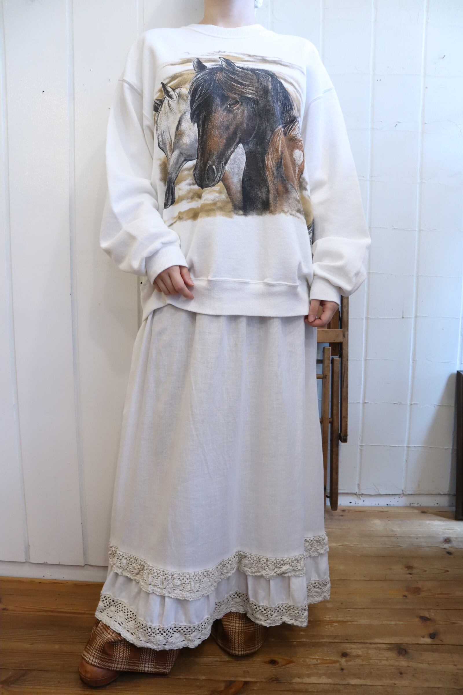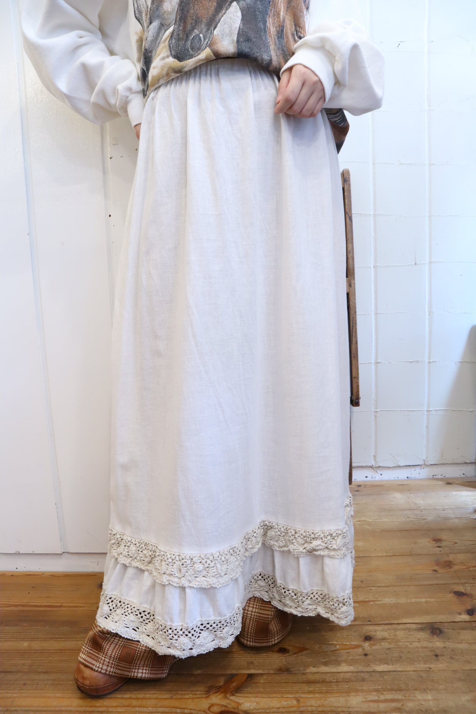 offwhite×beige crochet lace design petticoat skirt [l-3986]