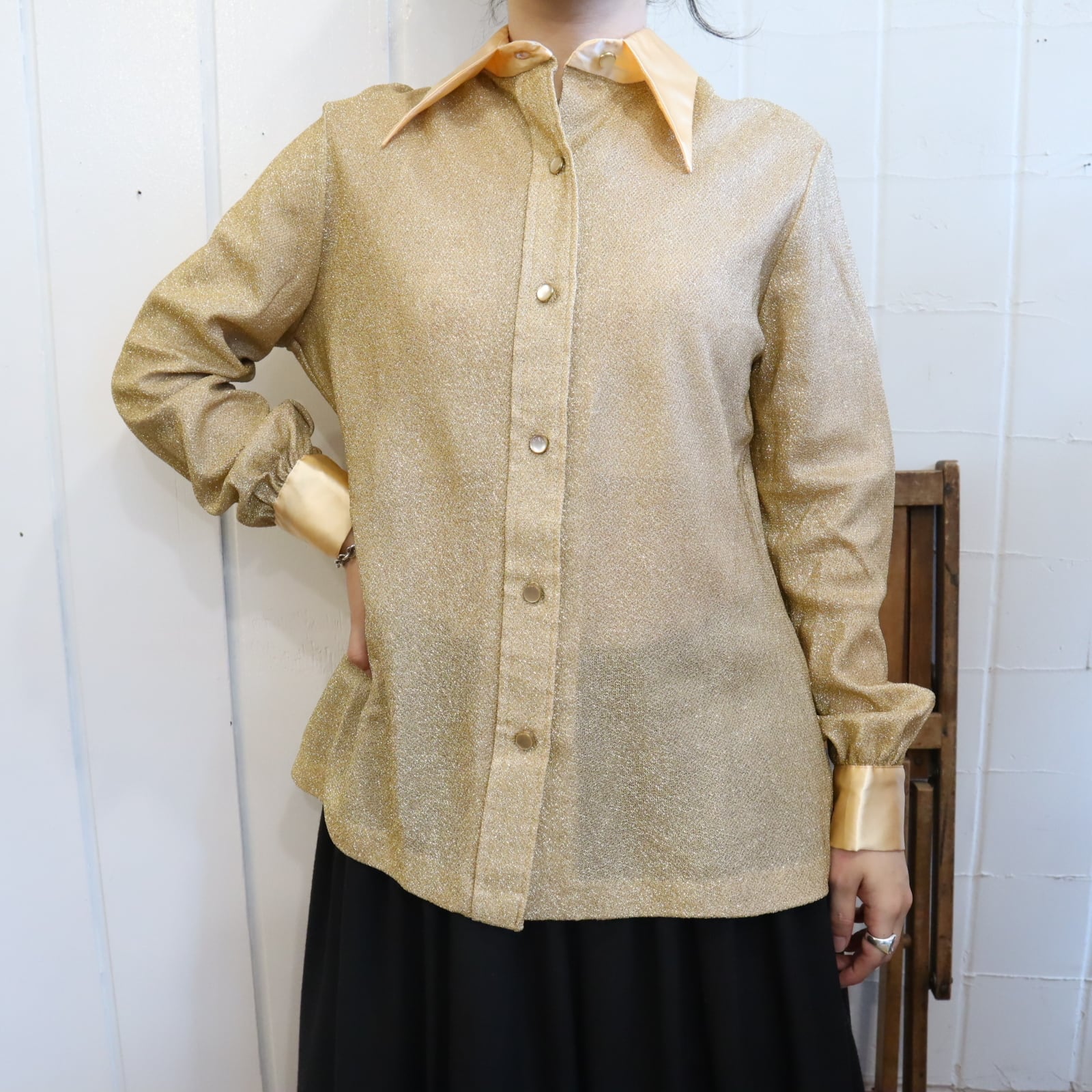gold glittery long sleeve shirt [l-3990]