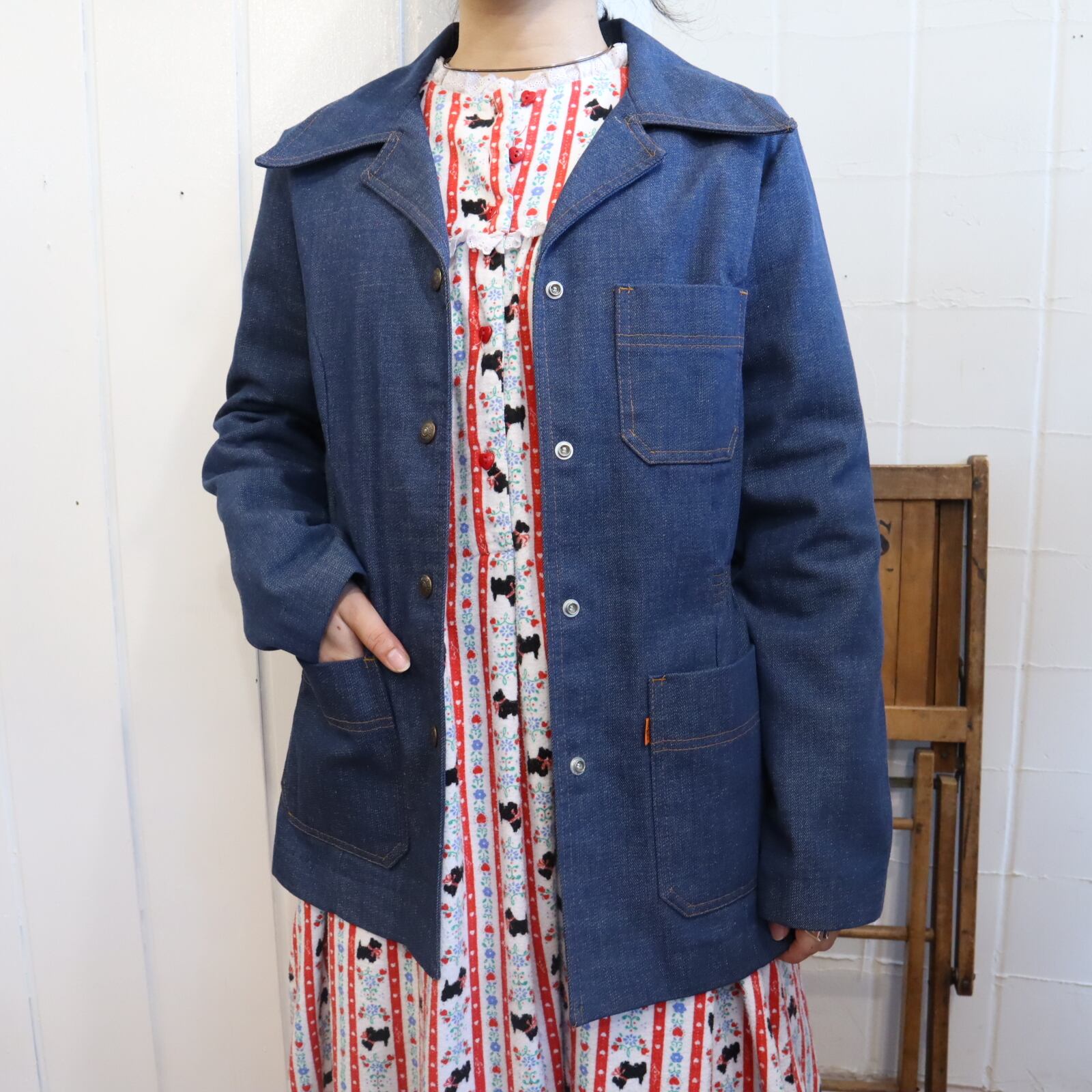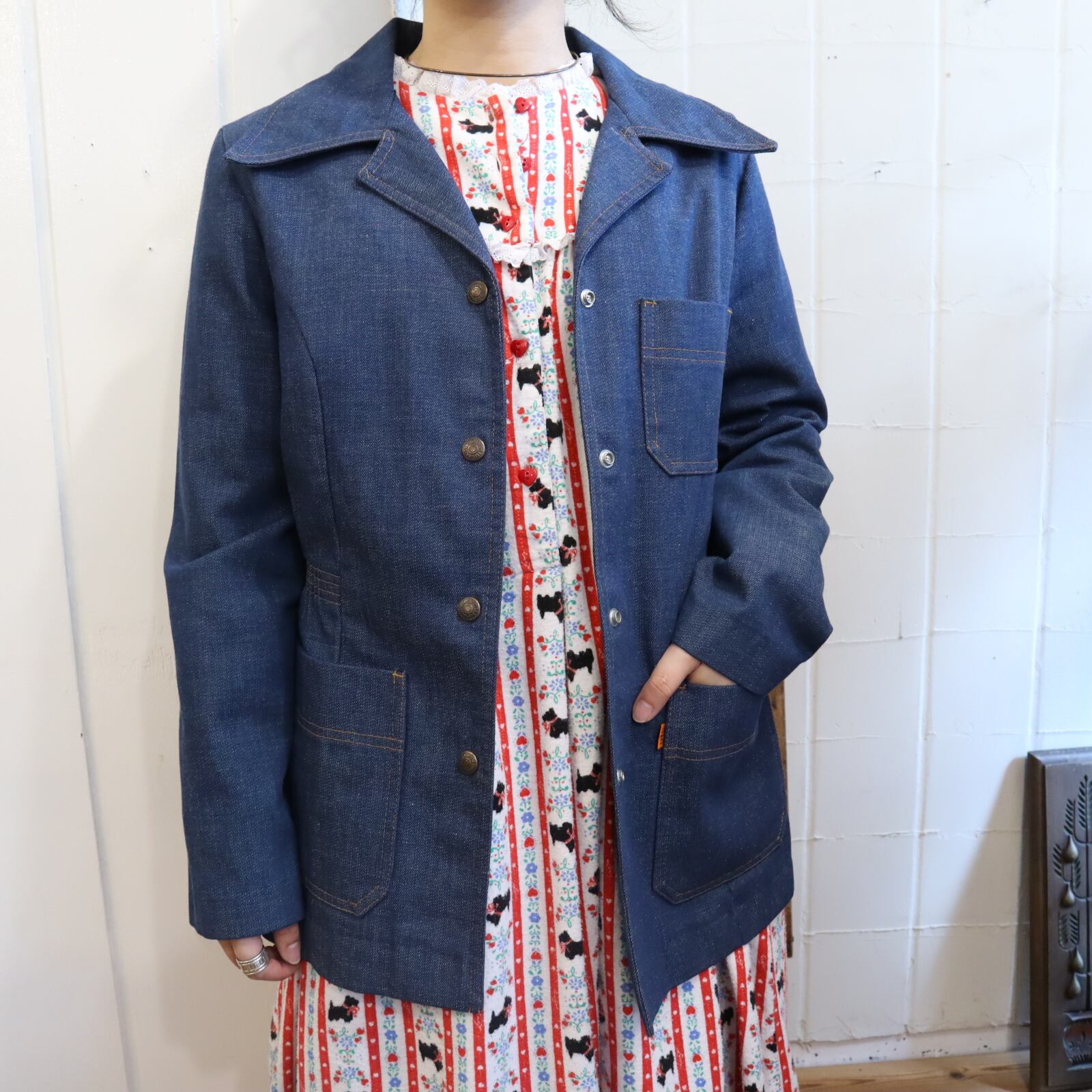 70s Levi's indigoblue open collar denim jacket [l-3992]
