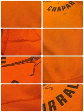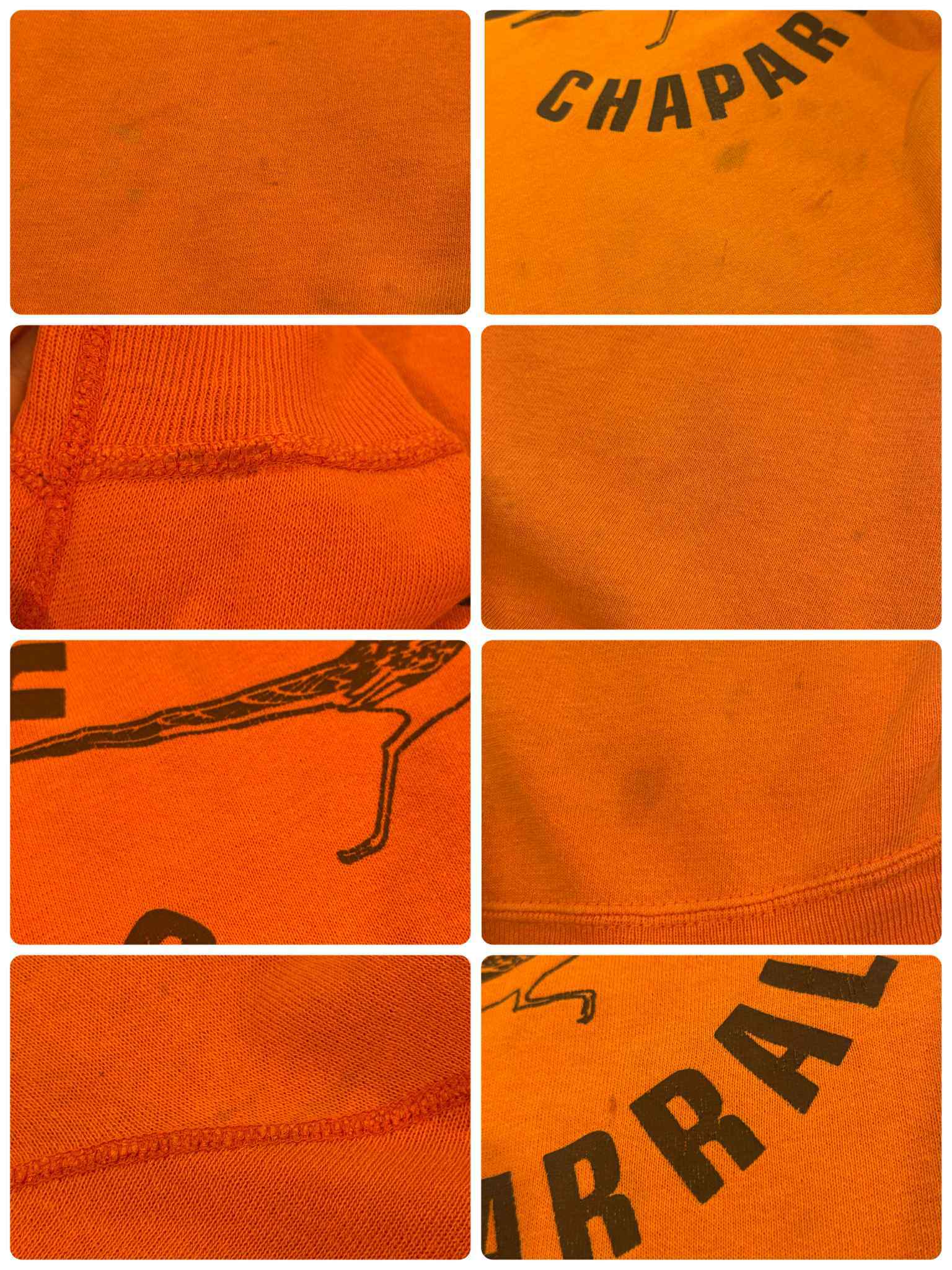 ボディにいくつか汚れ、プリントに若干ひび割れがございますが、古着の味として着て頂けるかと思います。