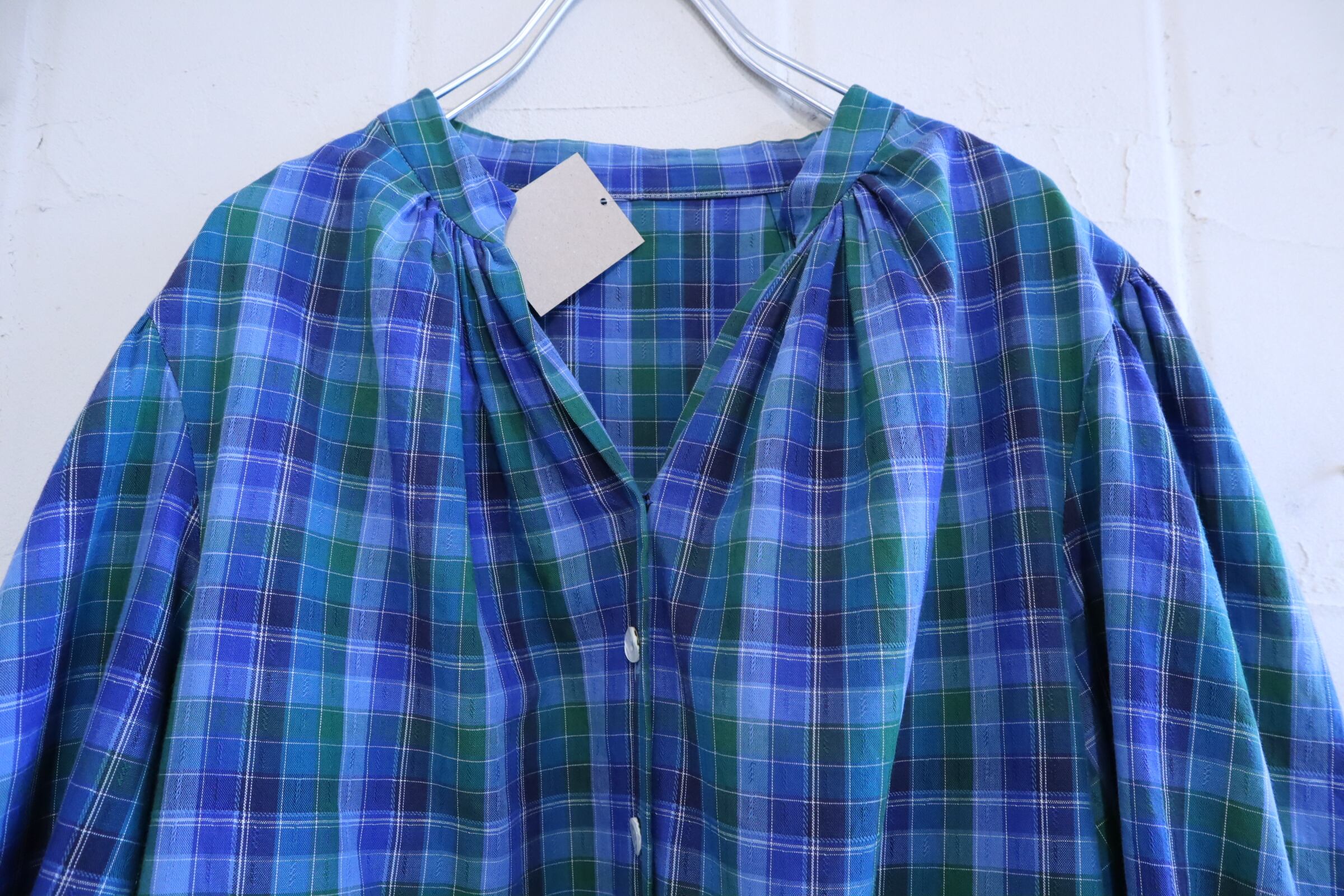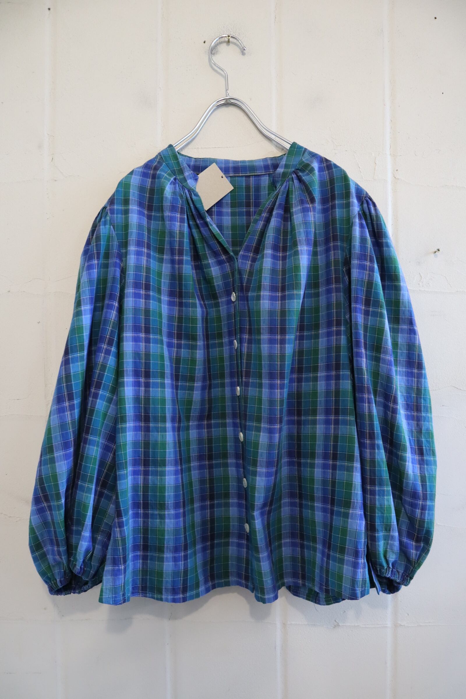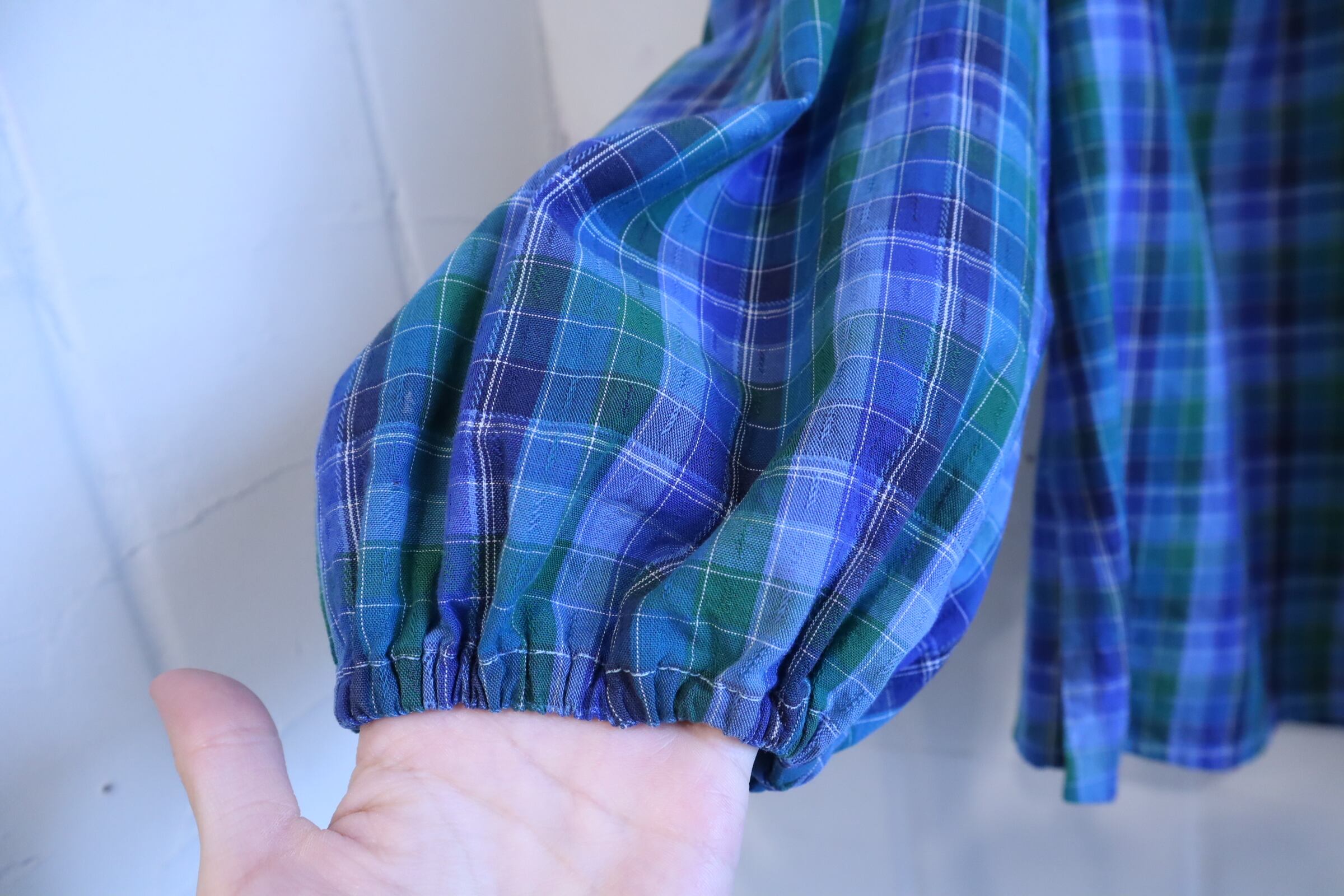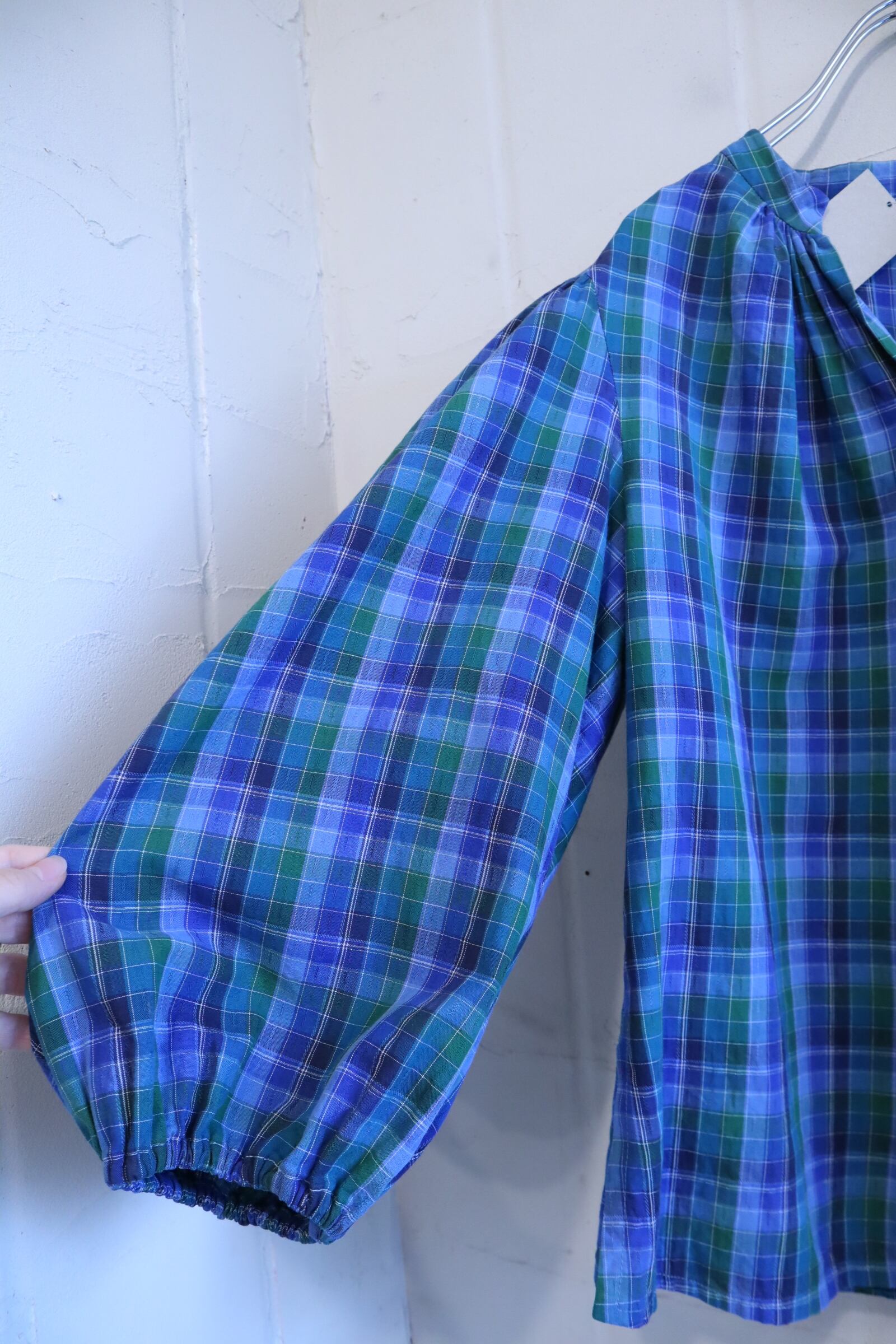 blue×green plaid tyrol blouse [l-4010]