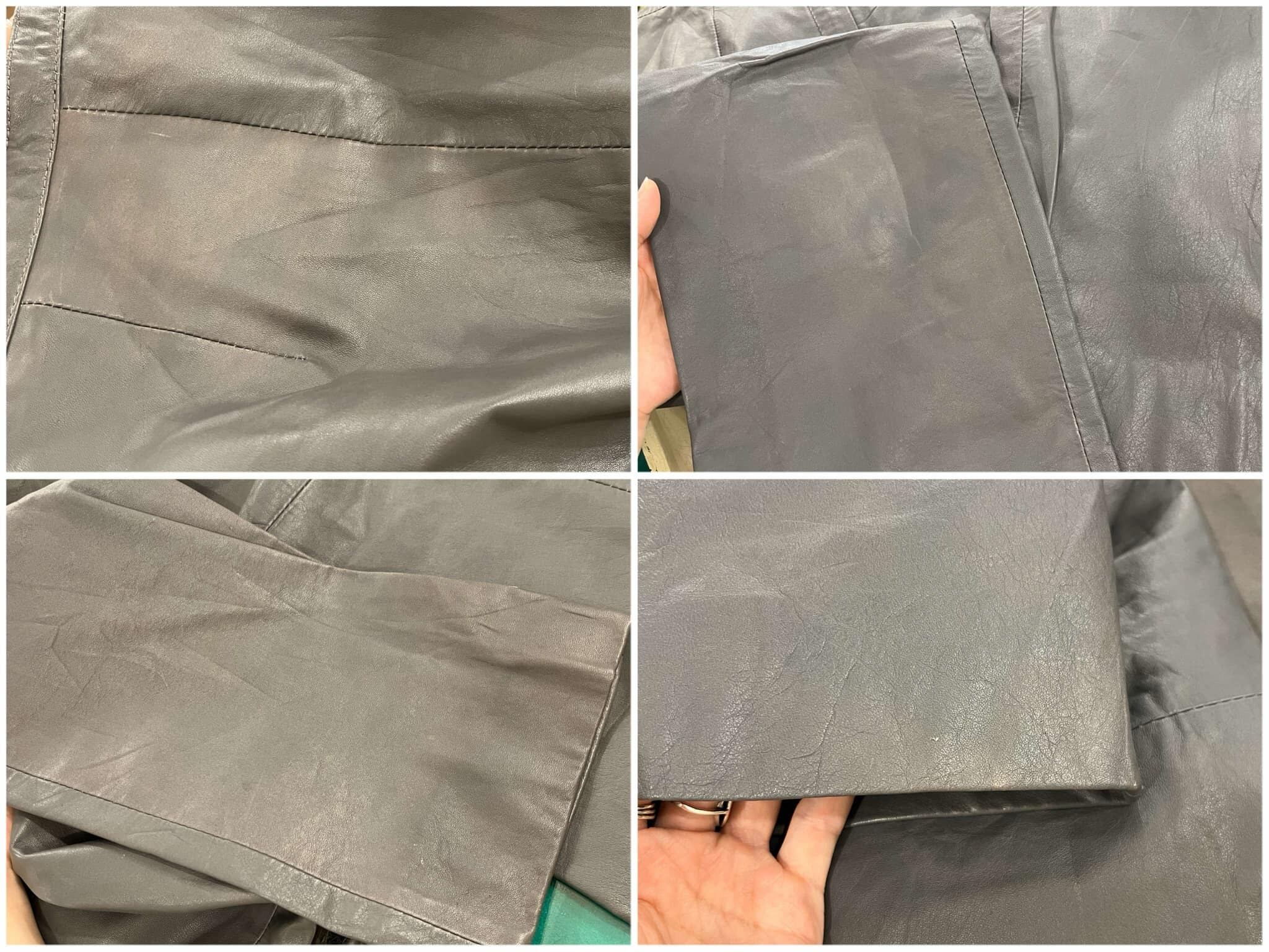 全体的に素材特有のシワやキズ、所々色褪せがございます。