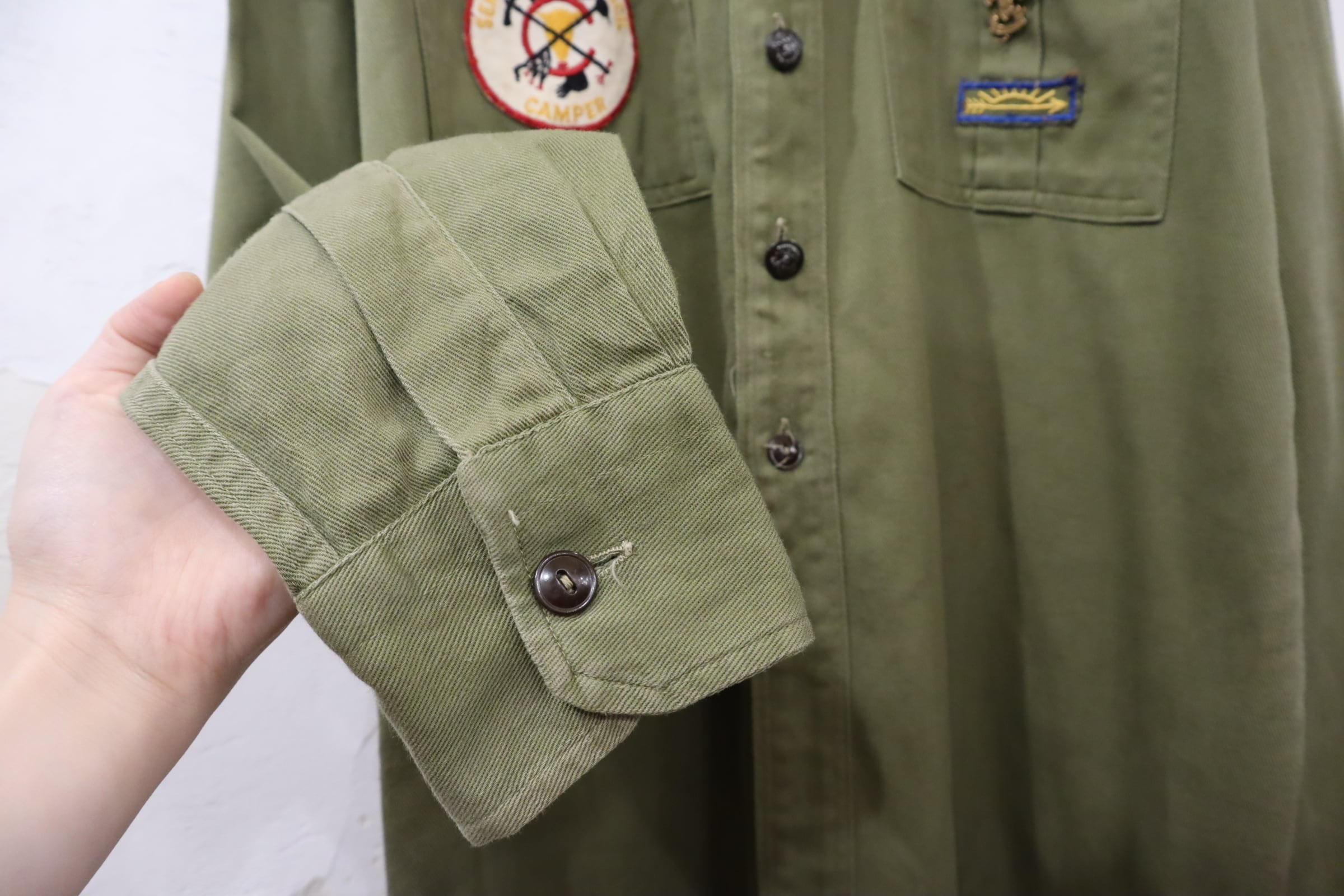 両袖にワッペン、胸元にバッチと抜かりなく可愛いボーイスカウトシャツです。
