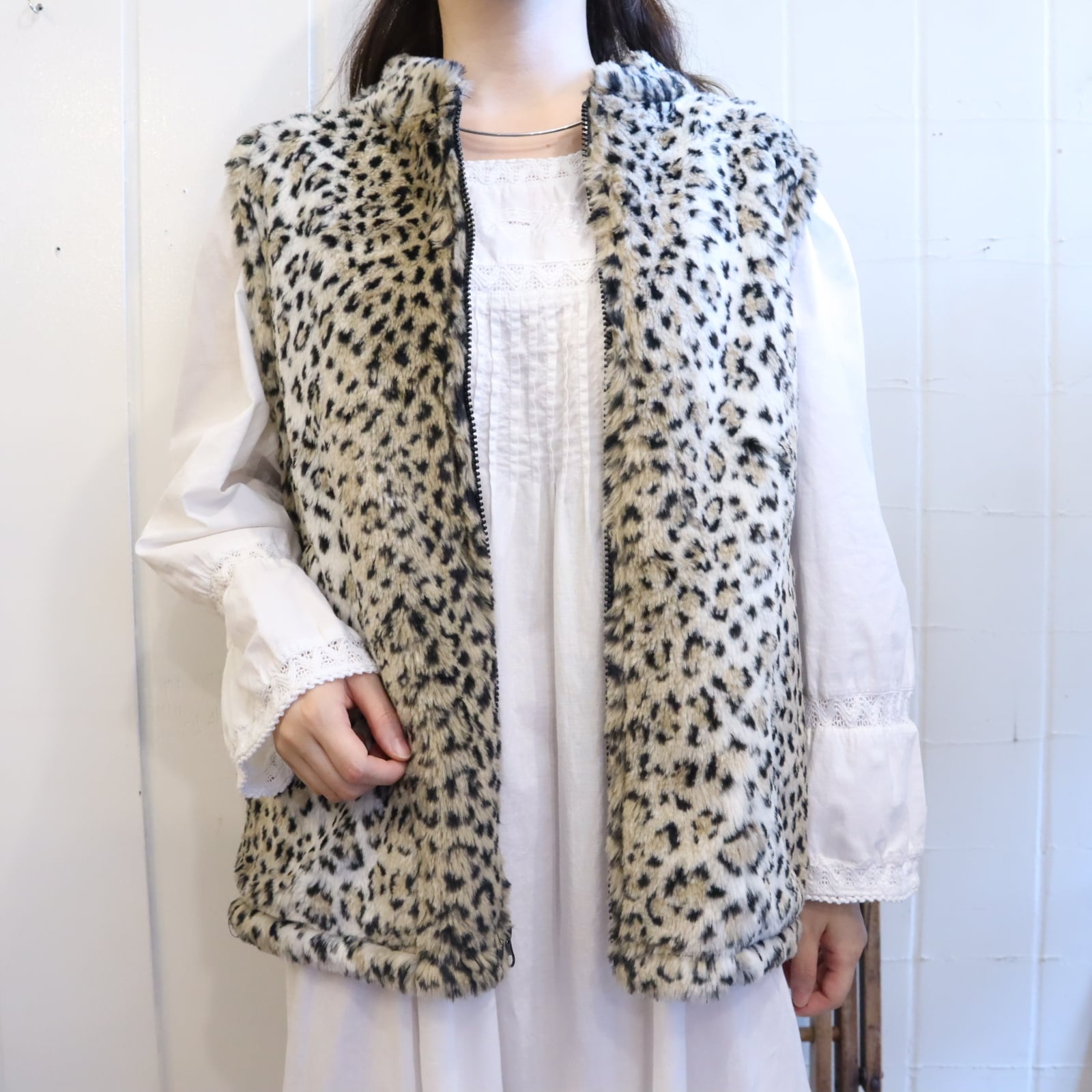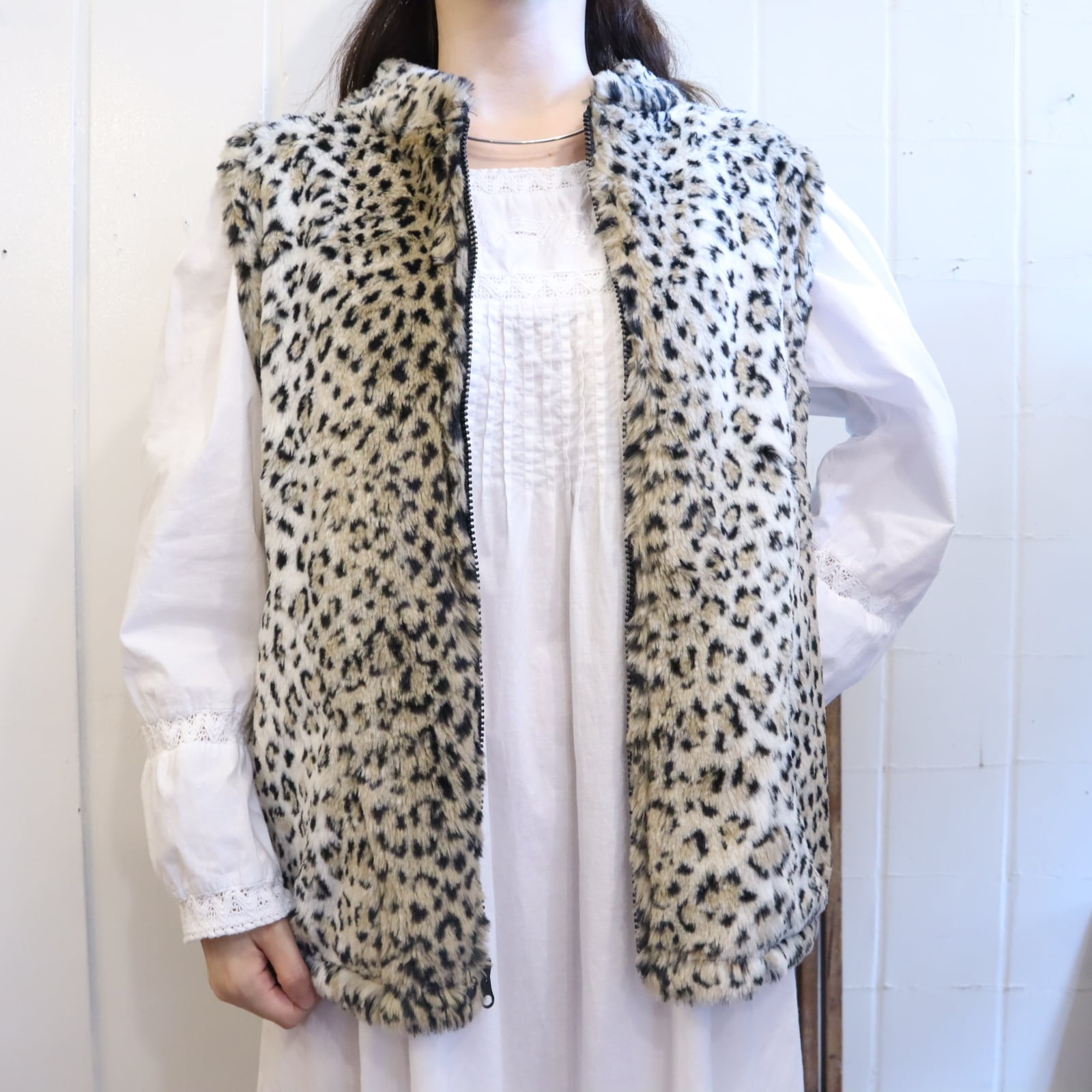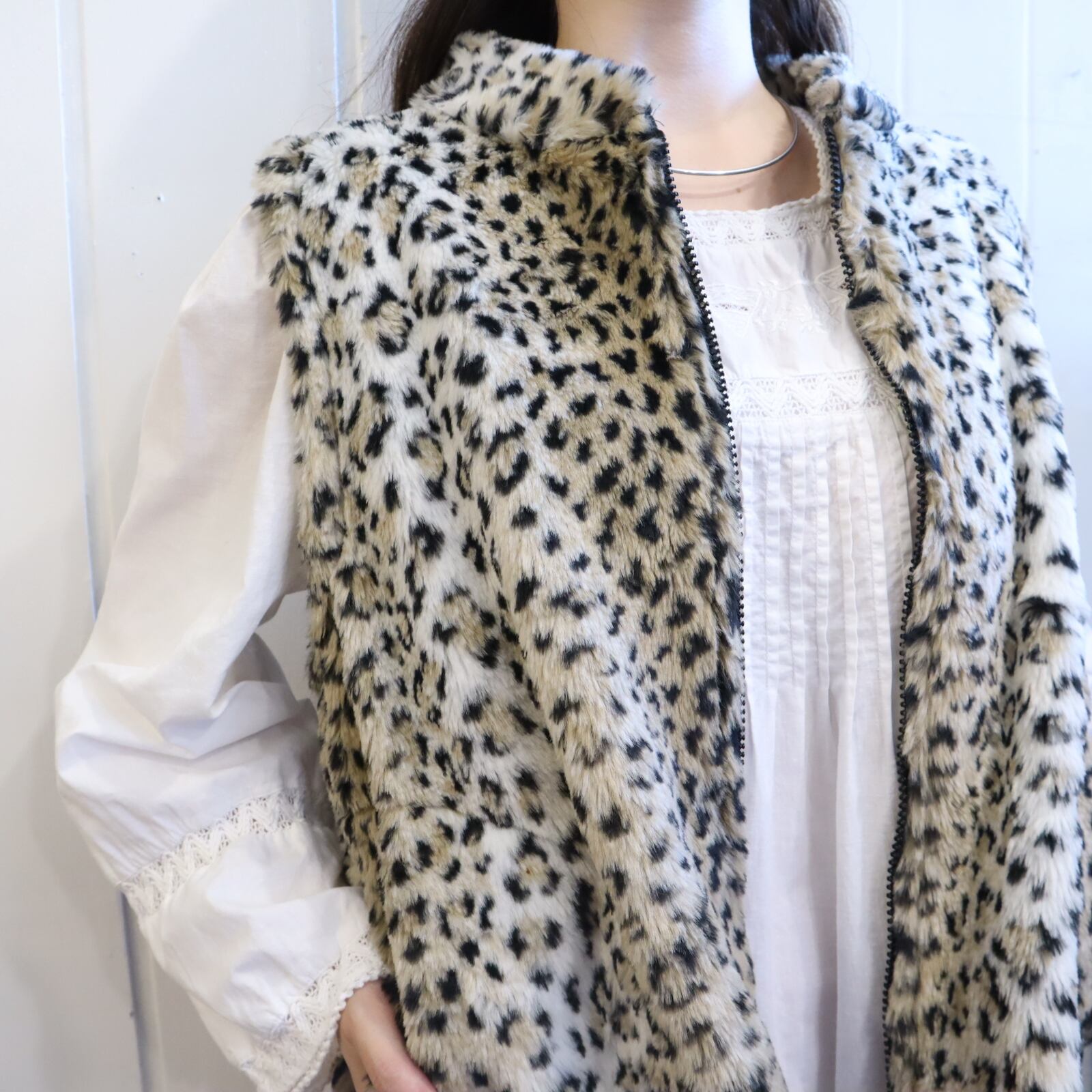 made in USA white×black×beige leopard fake fur vest [l-4021]