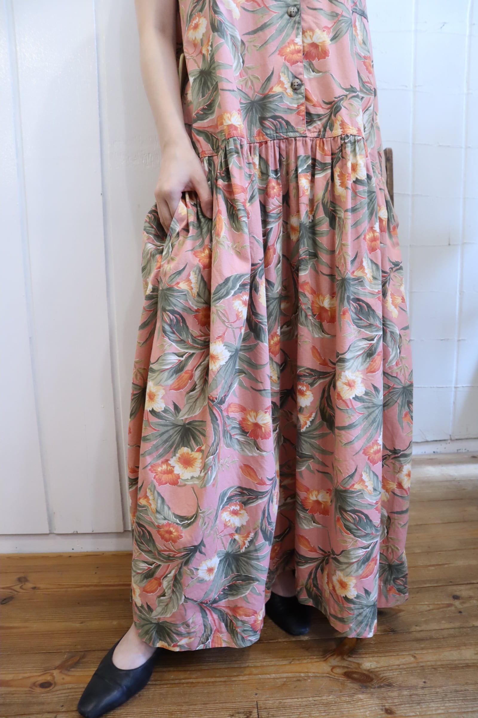 お花柄が素敵なノースリーブドレスです。